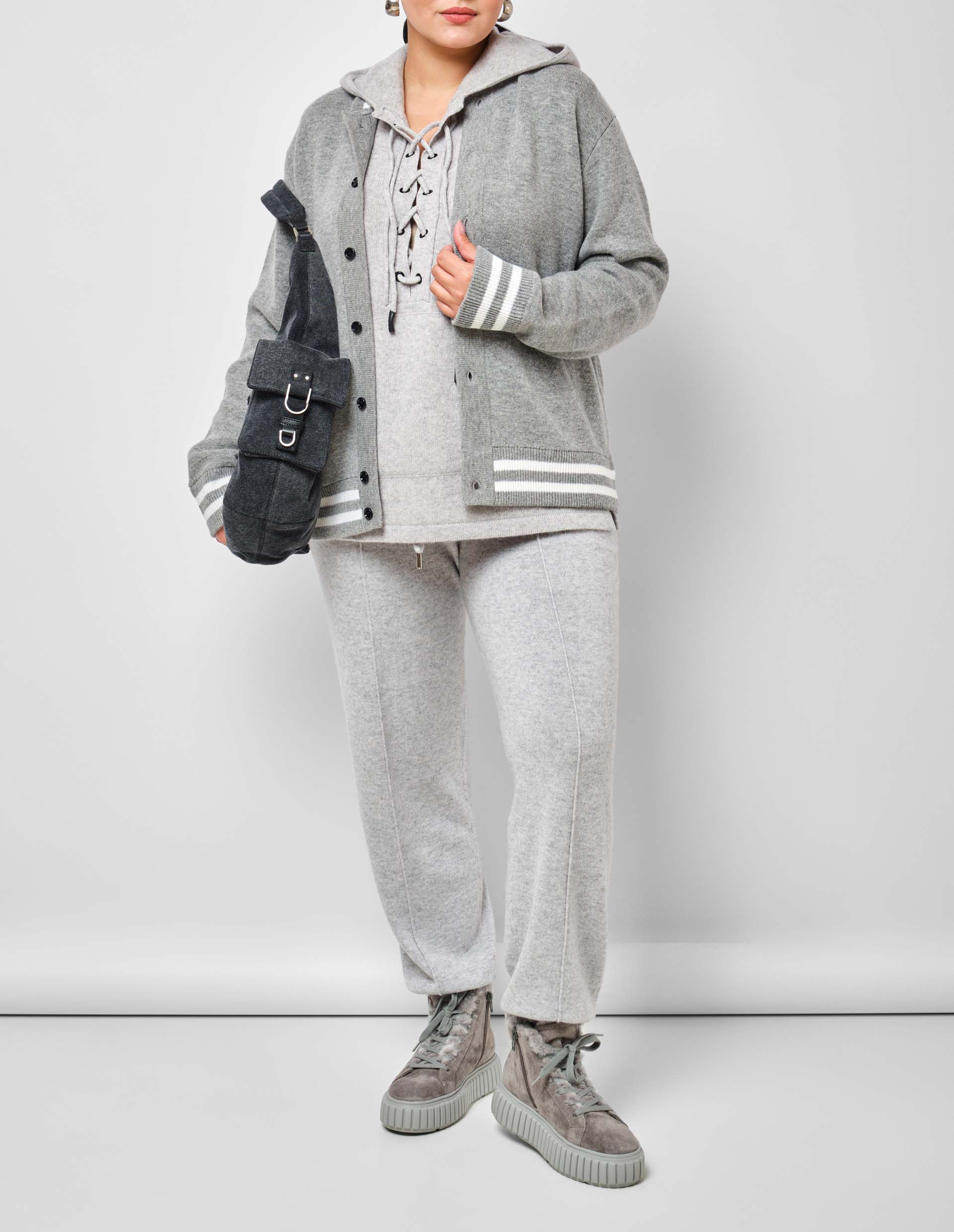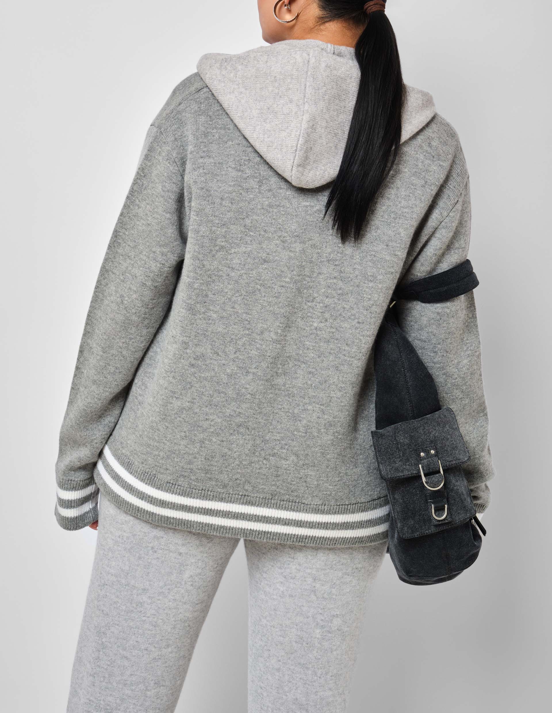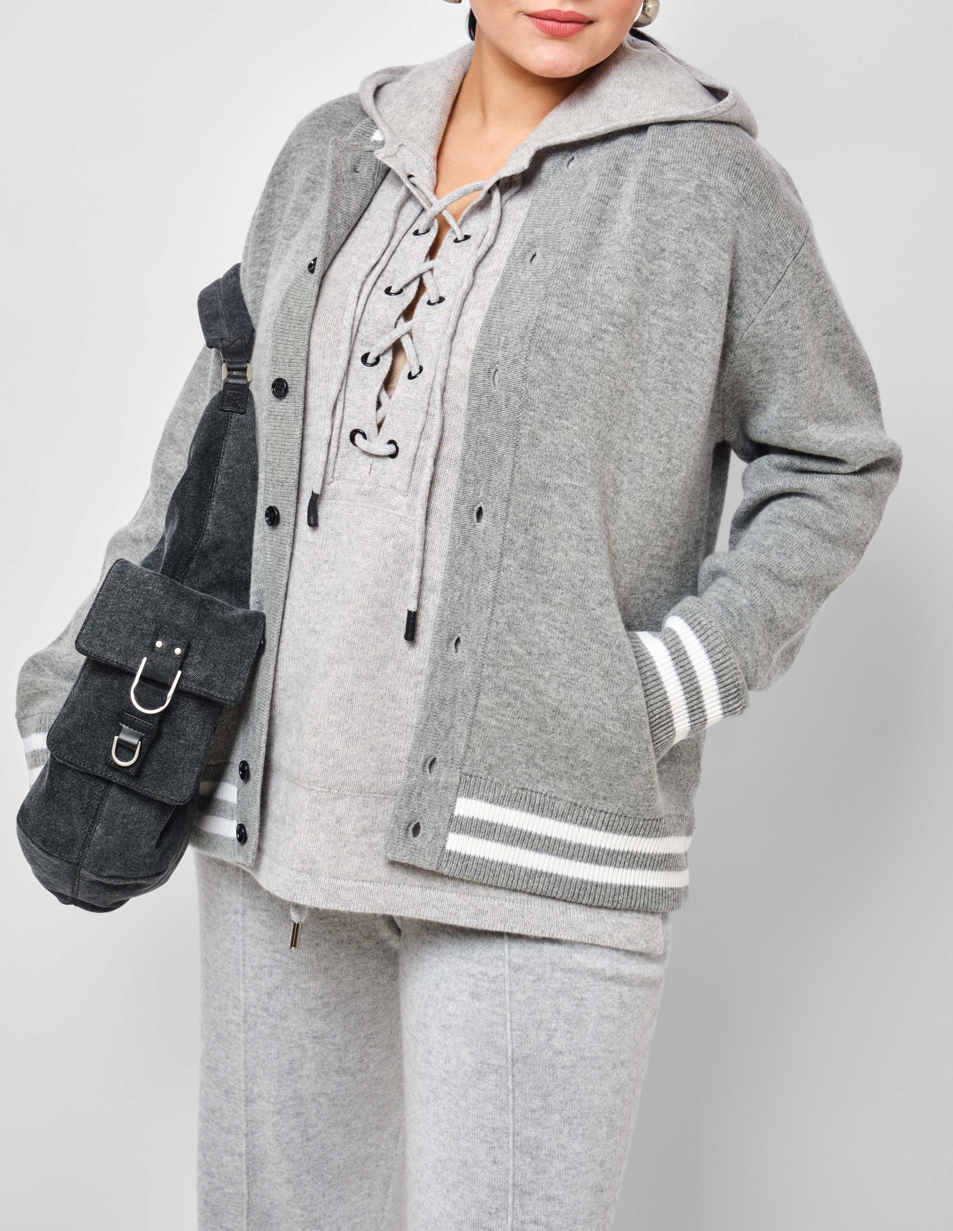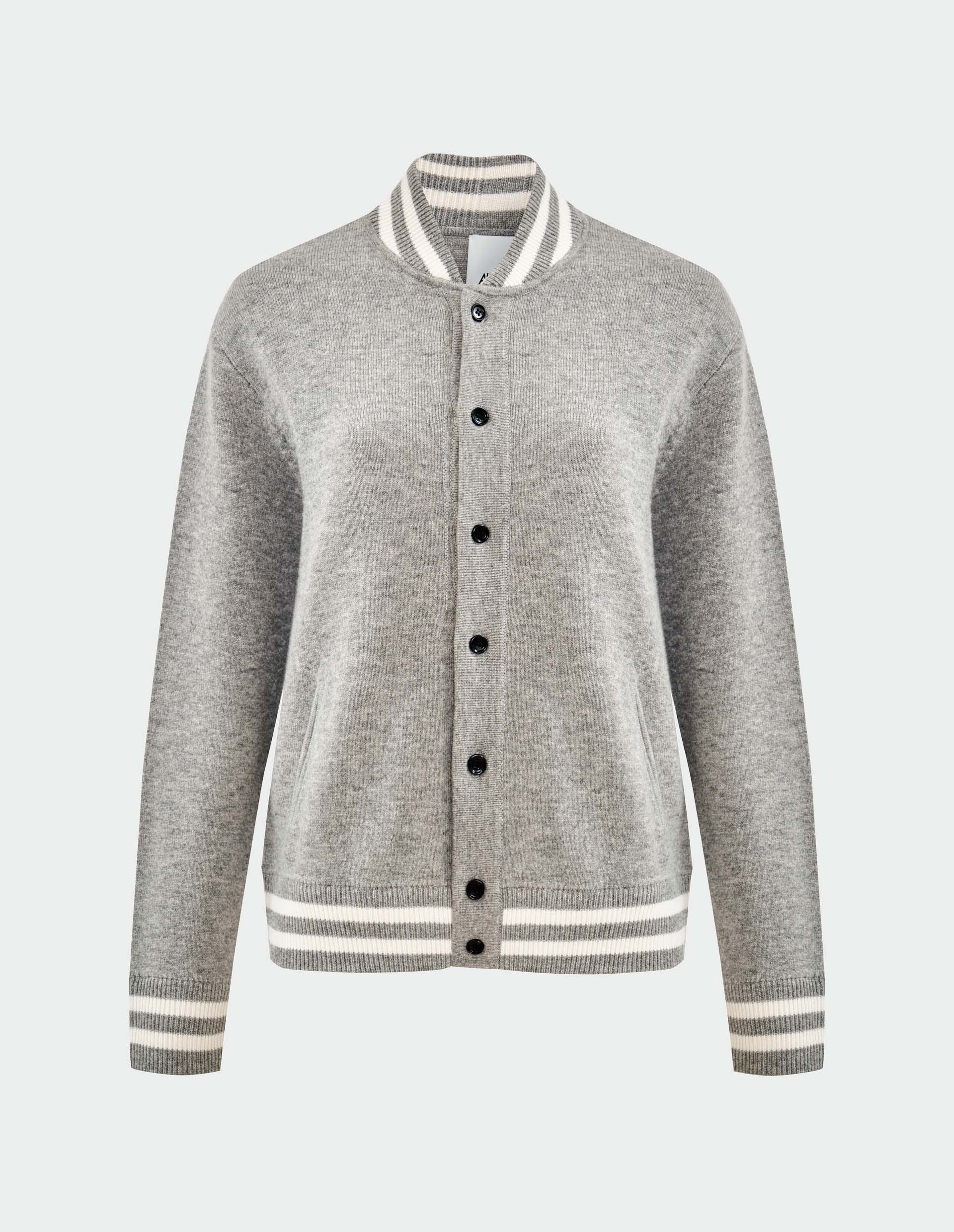 Серый кардиган-бомбер из вирджинской шерсти и кашемира