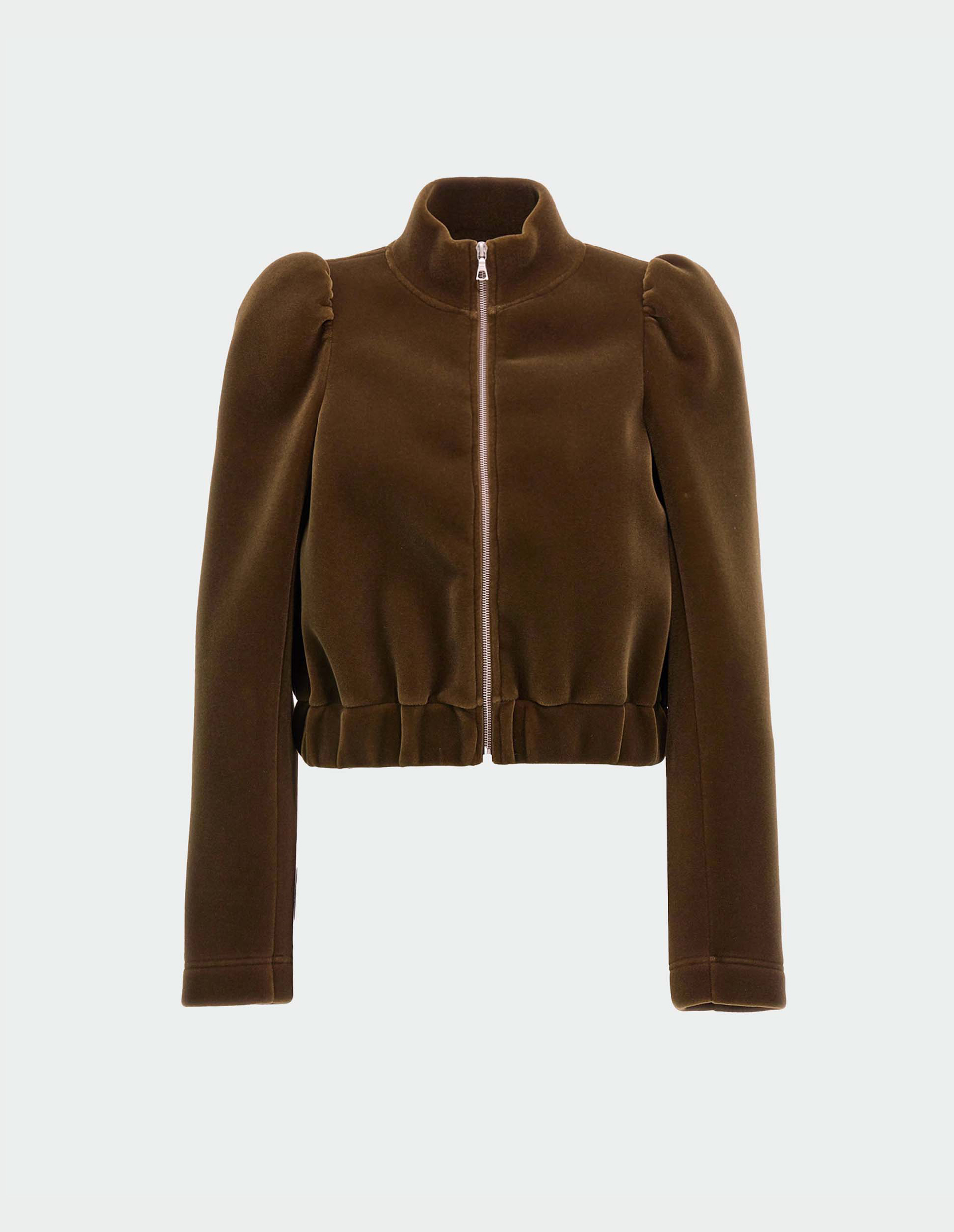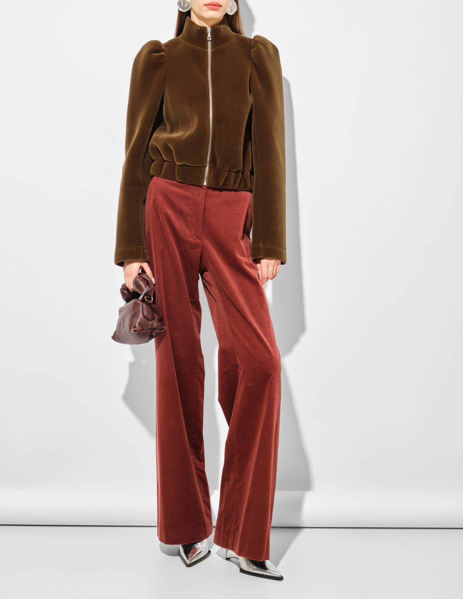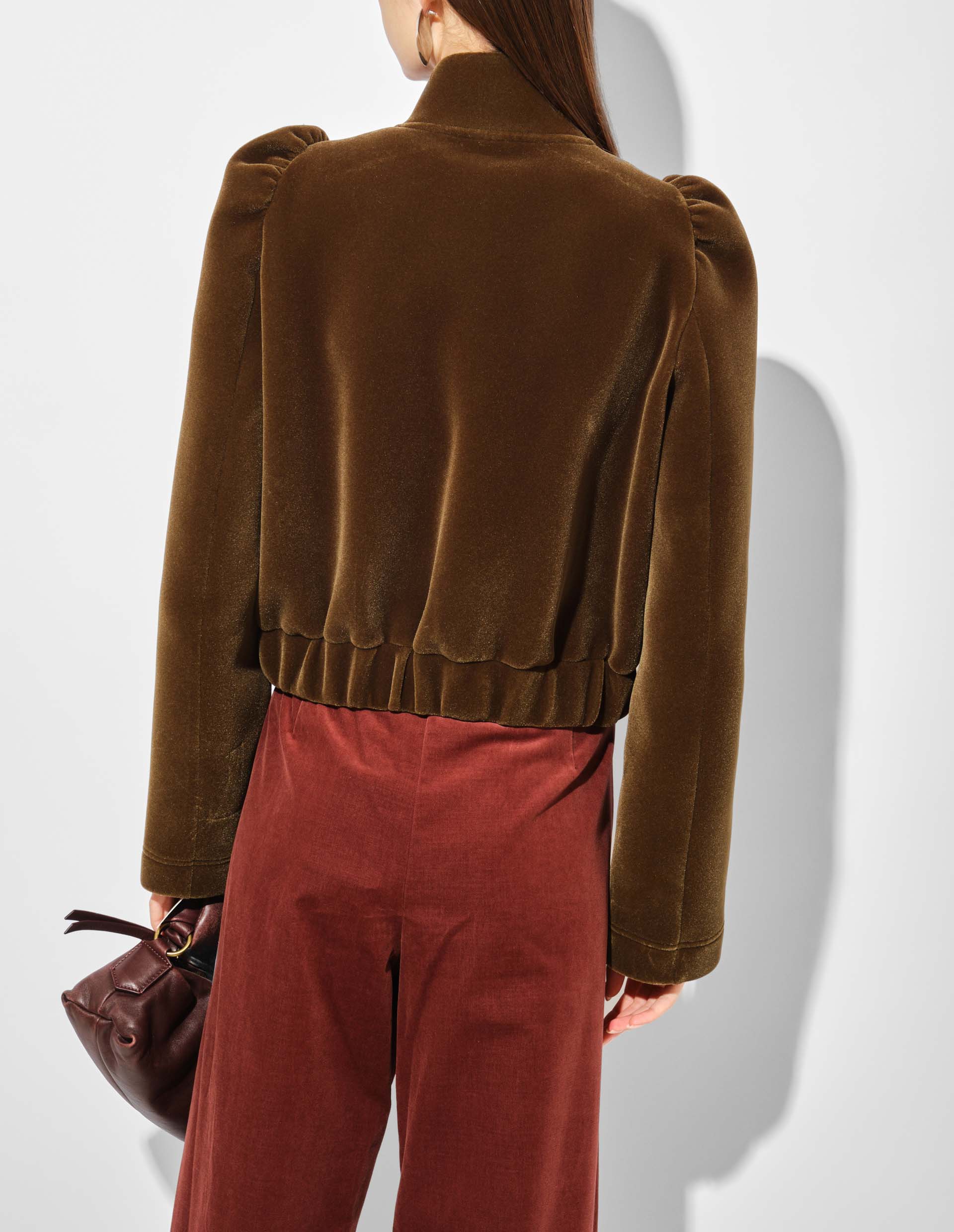 Дрис Ван Нотен с помощью этого роскошного бомбера организовал гармоничный tête-à-tête между утилитарностью и мягкостью. Так, его искусный крой подчеркивает, приподнимает плечи, что вместе с бархатистой тканью сигнализирует о спокойствии и смелости. Она также выражается через цвет: оливковый подружился с пыльно-землистым, уступив место теплому, естественному подтону. Плотный, укороченный силуэт куртки детализирован эластичной линией низа, воротом-стойкой и фронтальной металлизированной молнией.