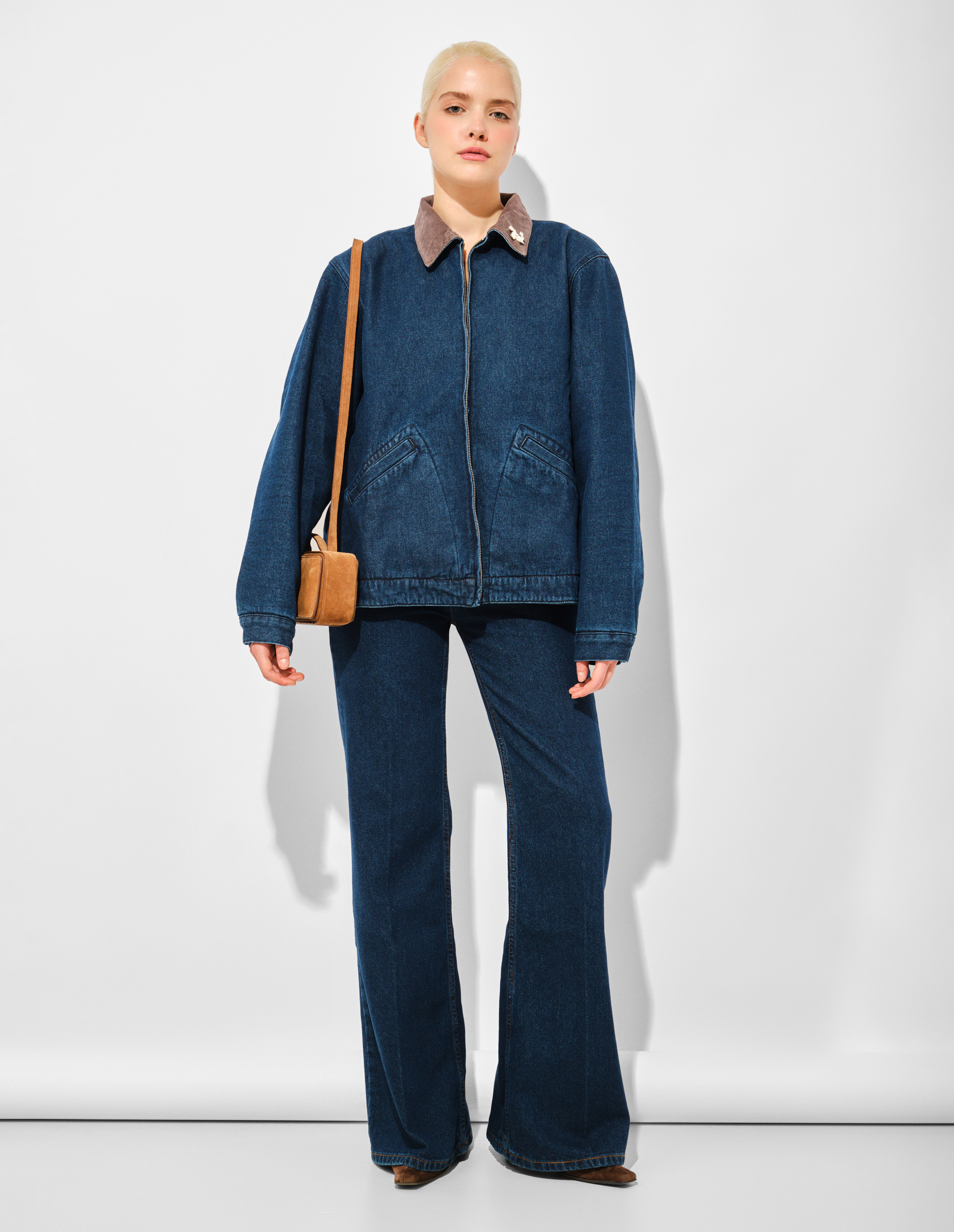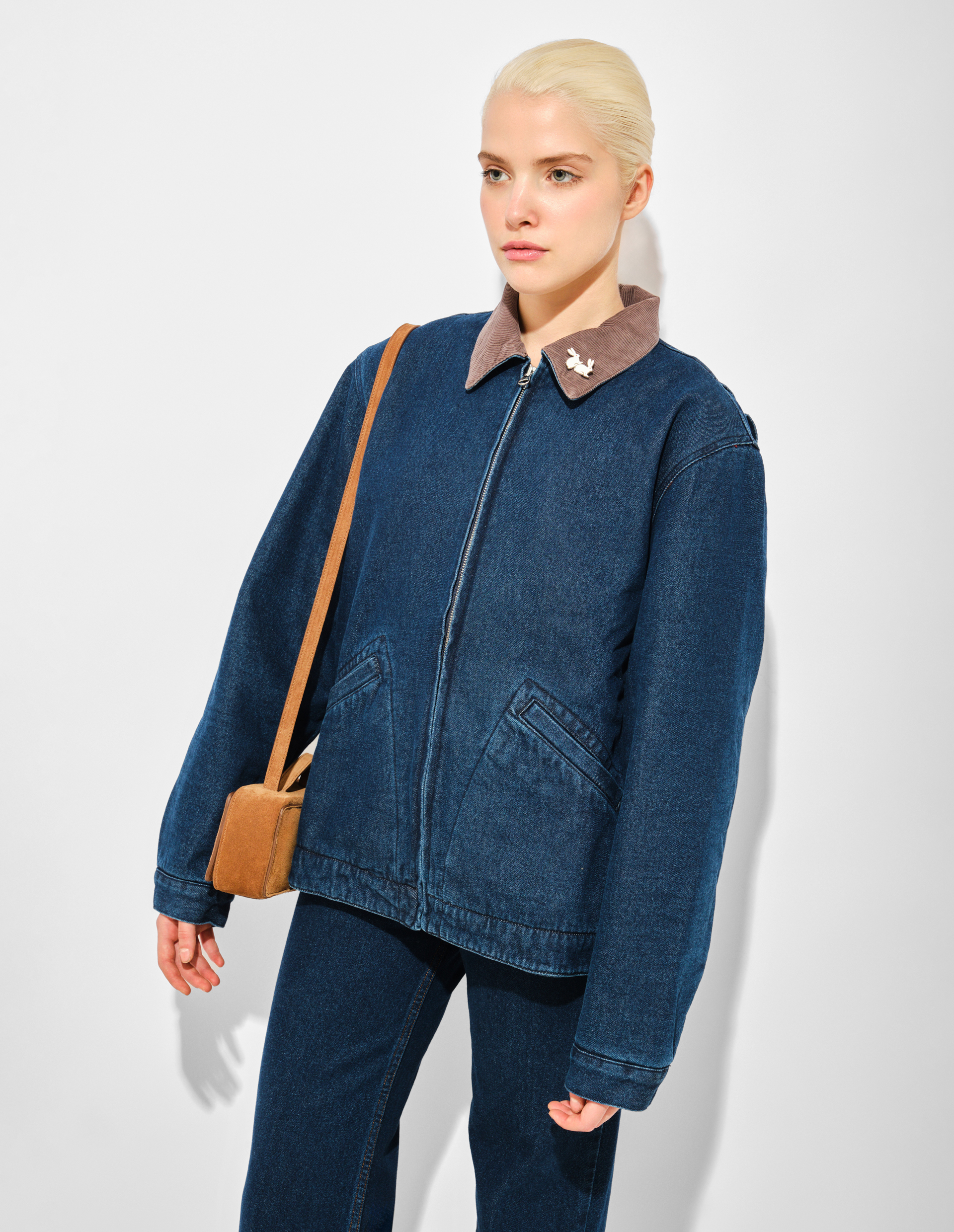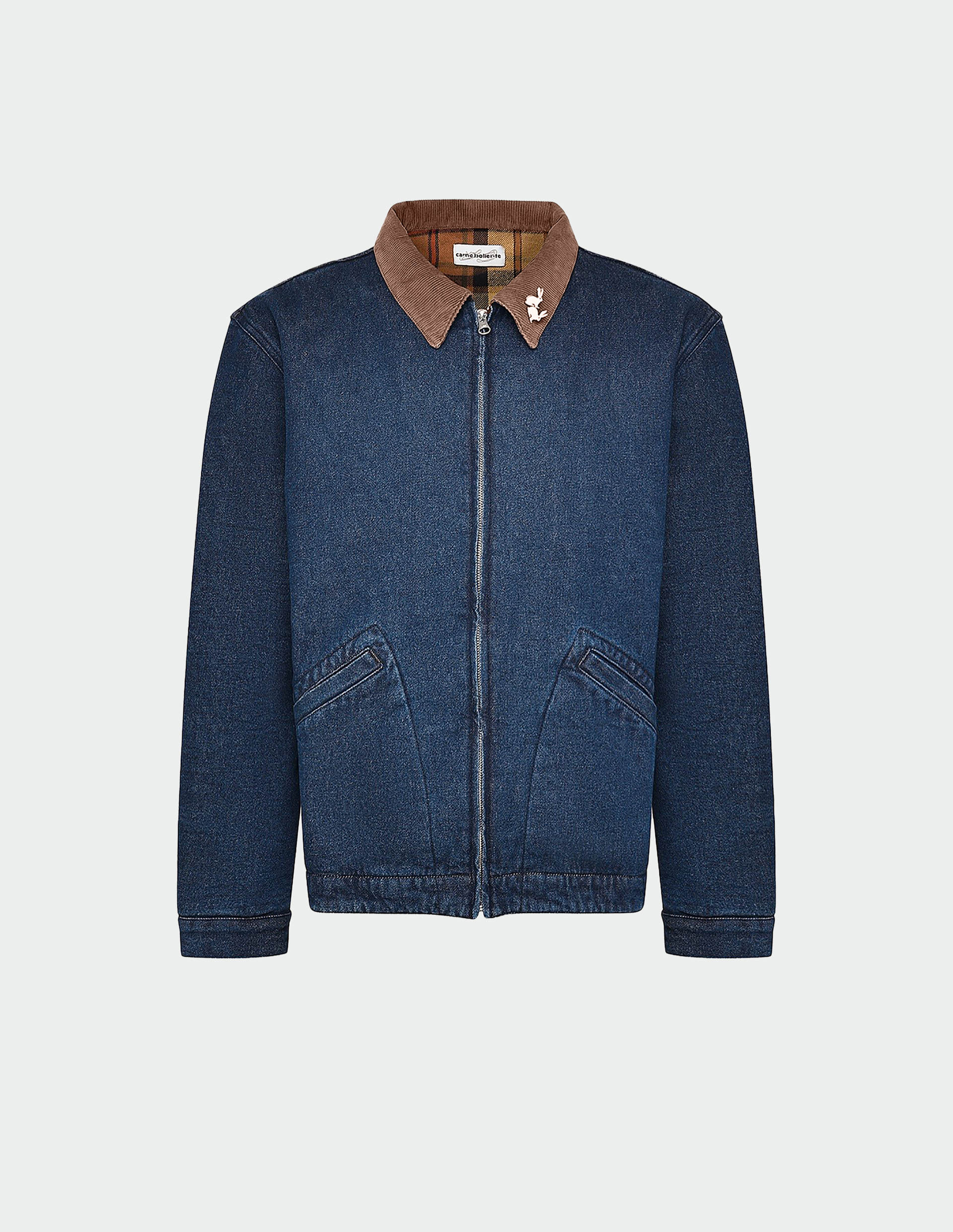 Синяя джинсовая куртка Moto Rabbit (Alt. Stud Bunny) с вельветовым воротом и стразами на спине