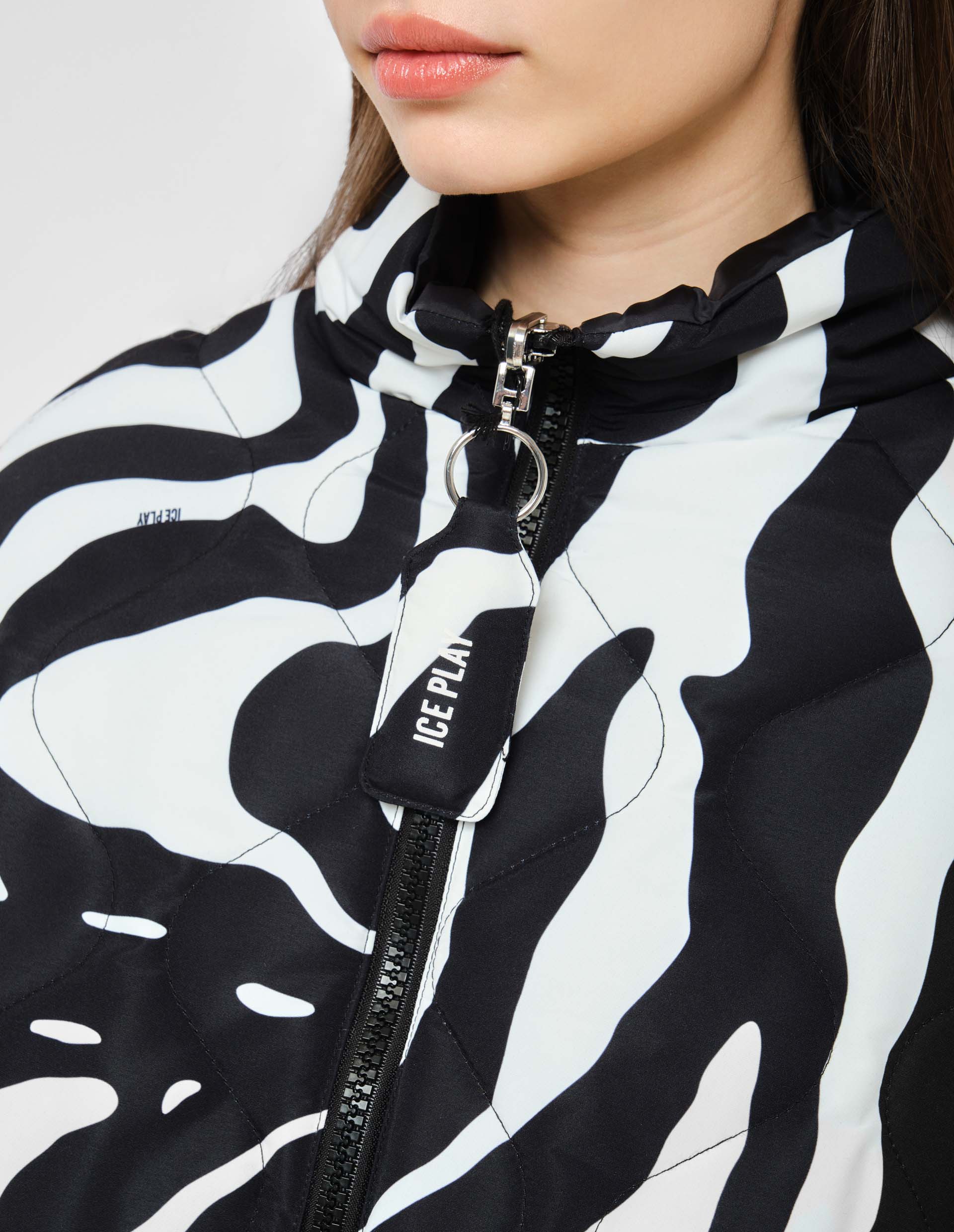 Стильный пуховико беспечит ощущение тепла и комфорта, а так же защит от ветра и осадков с помощью глубокого капюшона. Куртка также поставит вас в центр внимания благодаря яркой расцветке, нанесенной на одну из сторон. Этот захватывающий принт в виде зебры, разработанный ICE PLAY, поможет открыть вам свою внутреннюю дикую сторону, а также посмотреть современным взглядом на наследие ICEBERG (от него зародился Айс Плэй), который одним из первых внедрил оригинальные принты на ткани, открыв новую эру в модной индустрии. С помощью процессов переработки тканей, лежащих в основе пуховика, ICE PLAY привлекает внимание потребителя к экологическим проблемам, призывает человека защищать и сохранять жизнь, быть светом на этой планете.
