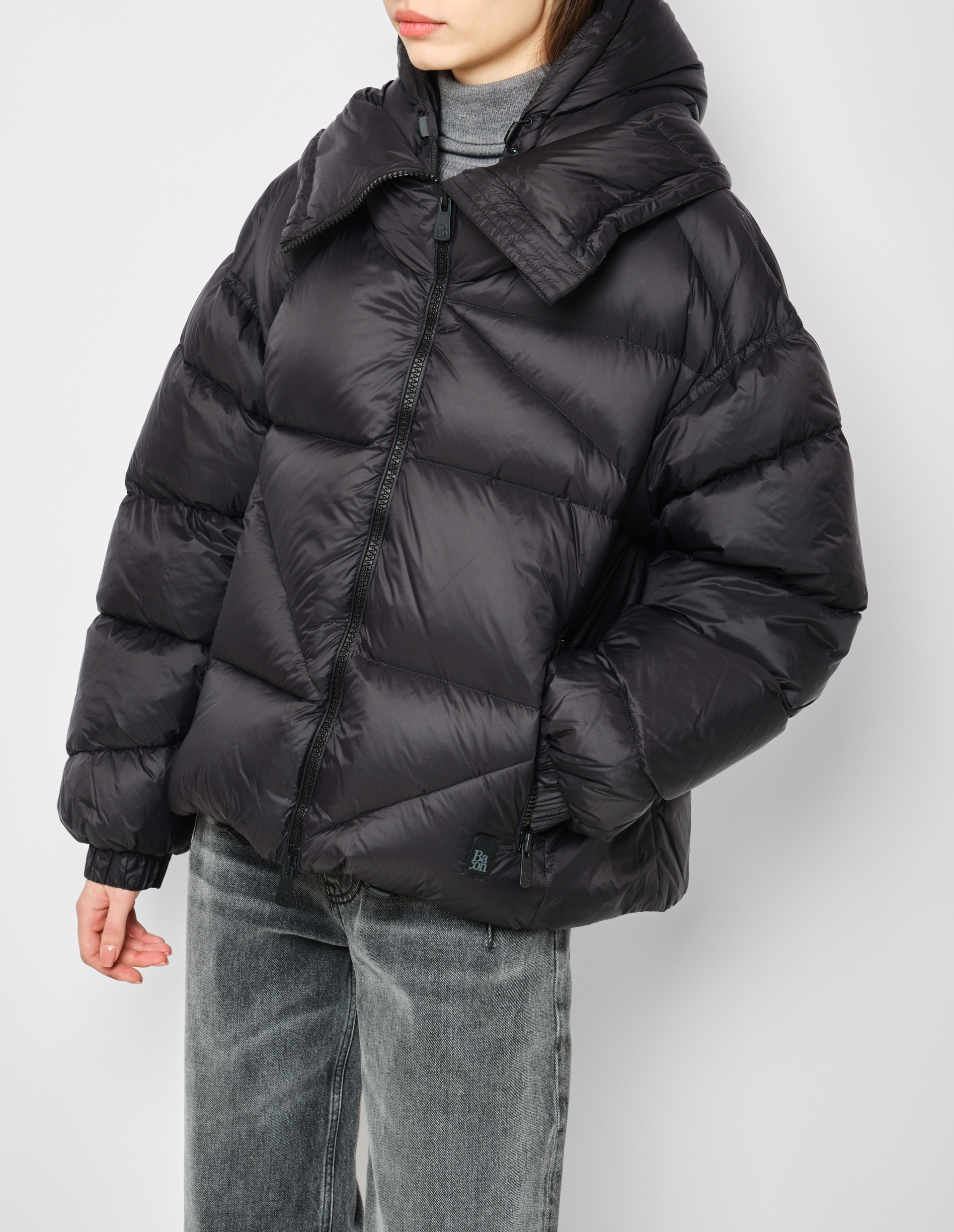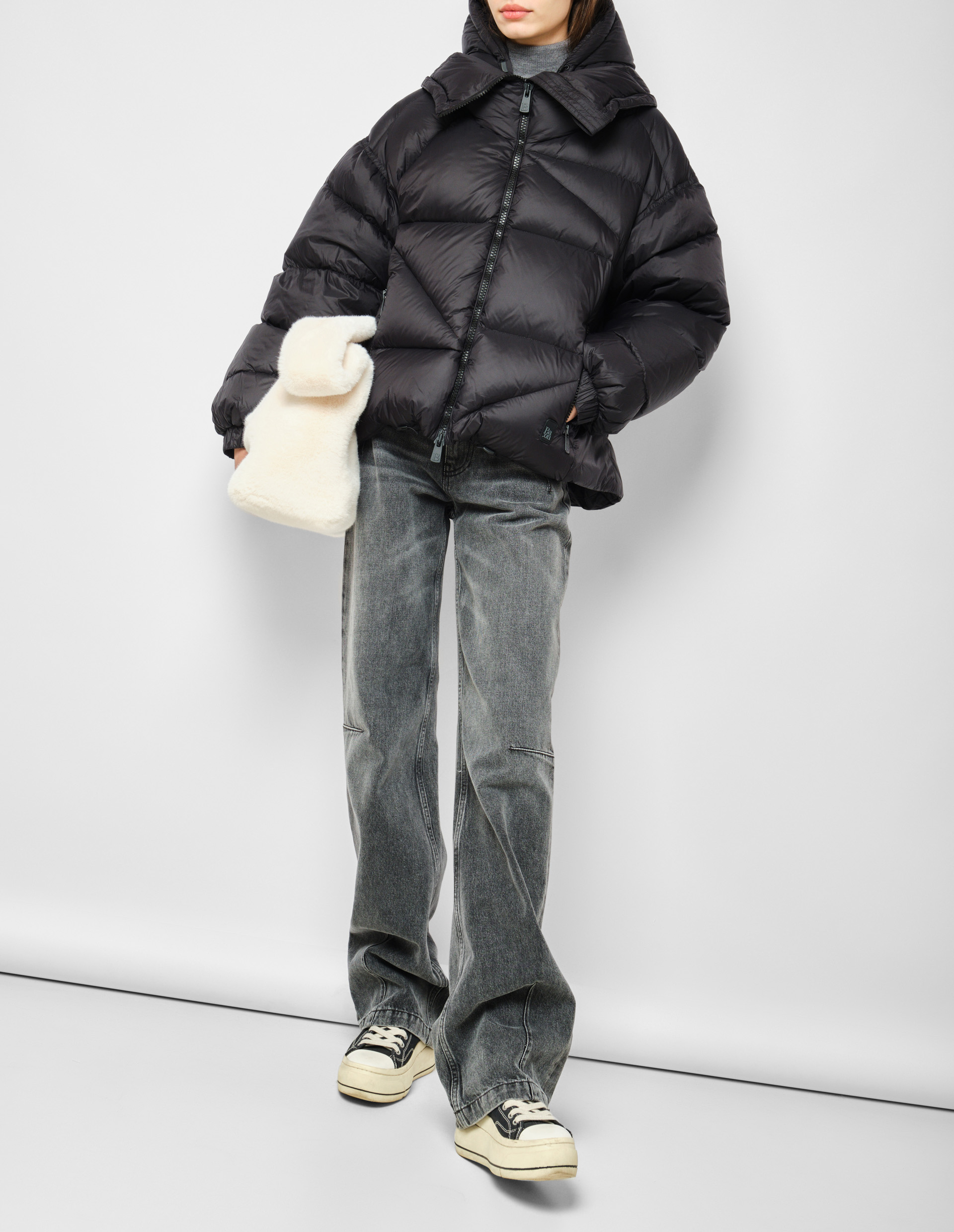 4. Стильный оверсайз-силуэт со слегка асимметричной длиной украшен стеганой буквой B.