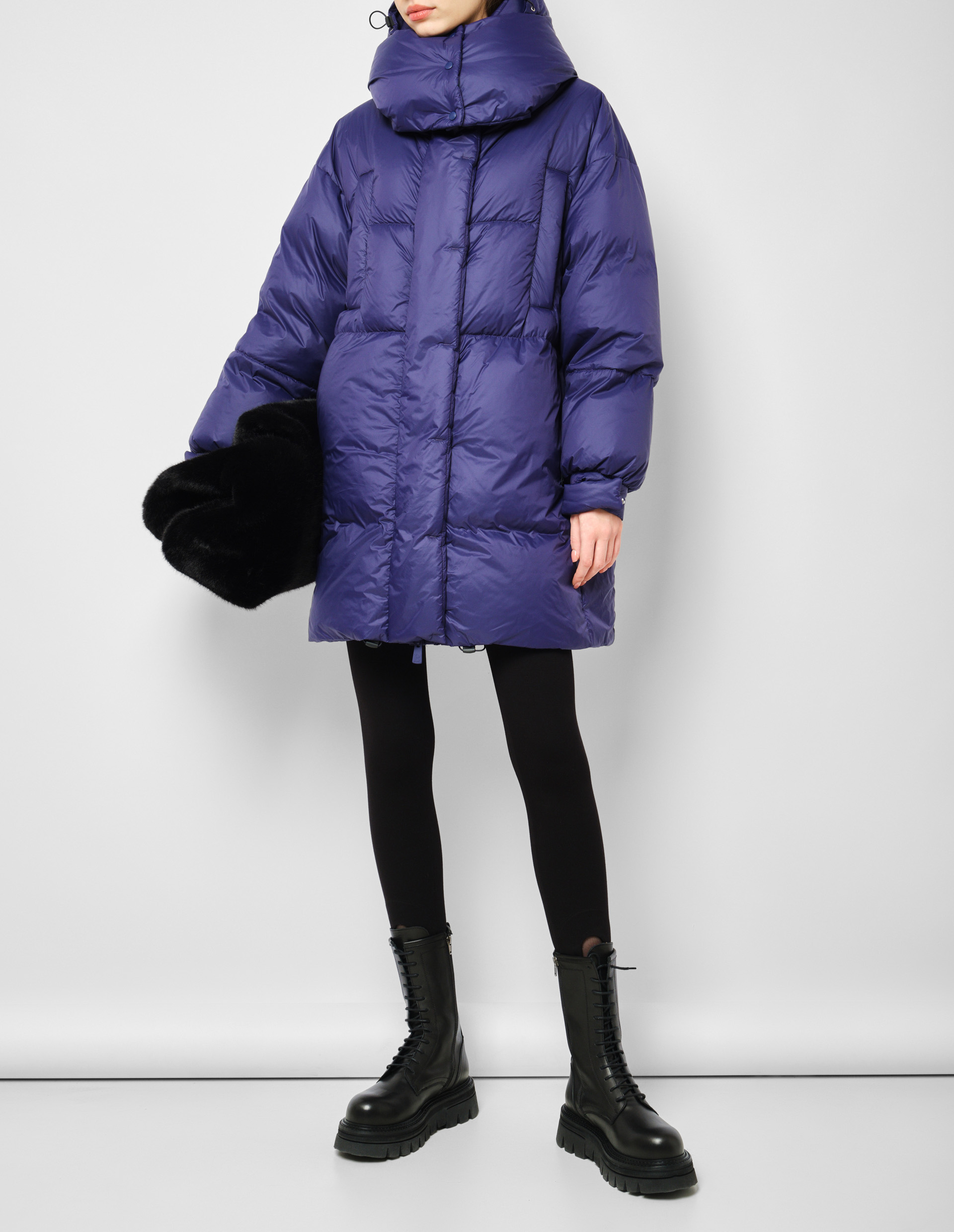 4. Стильный оверсайз-силуэт может быть смоделирован с помощью утяжек, а высокий ворот на кнопках, переходящий в капюшон, является надежным препятствием для пронизывающего ветра.