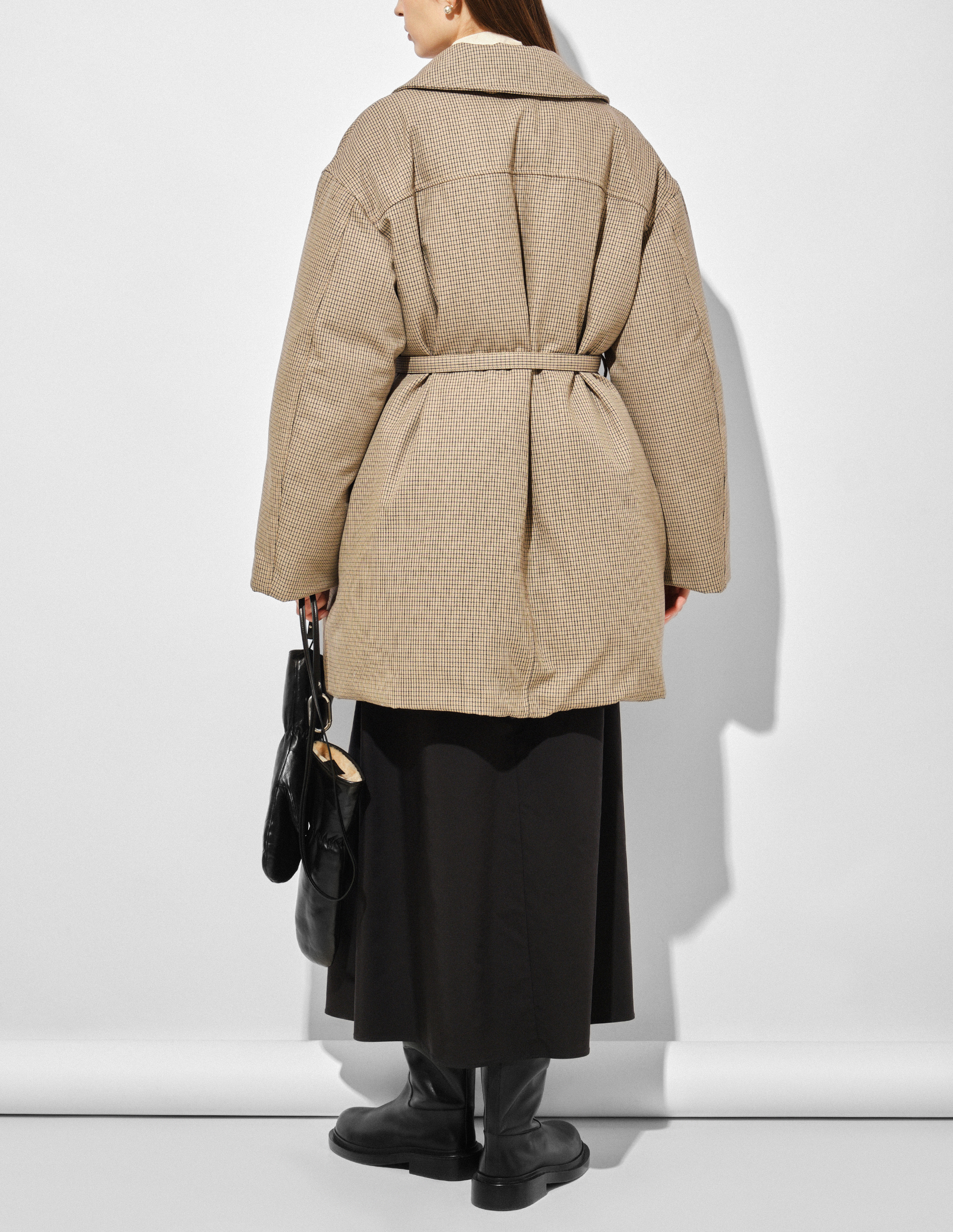 Клетчатое пальто-пуховик из натуральной шерсти