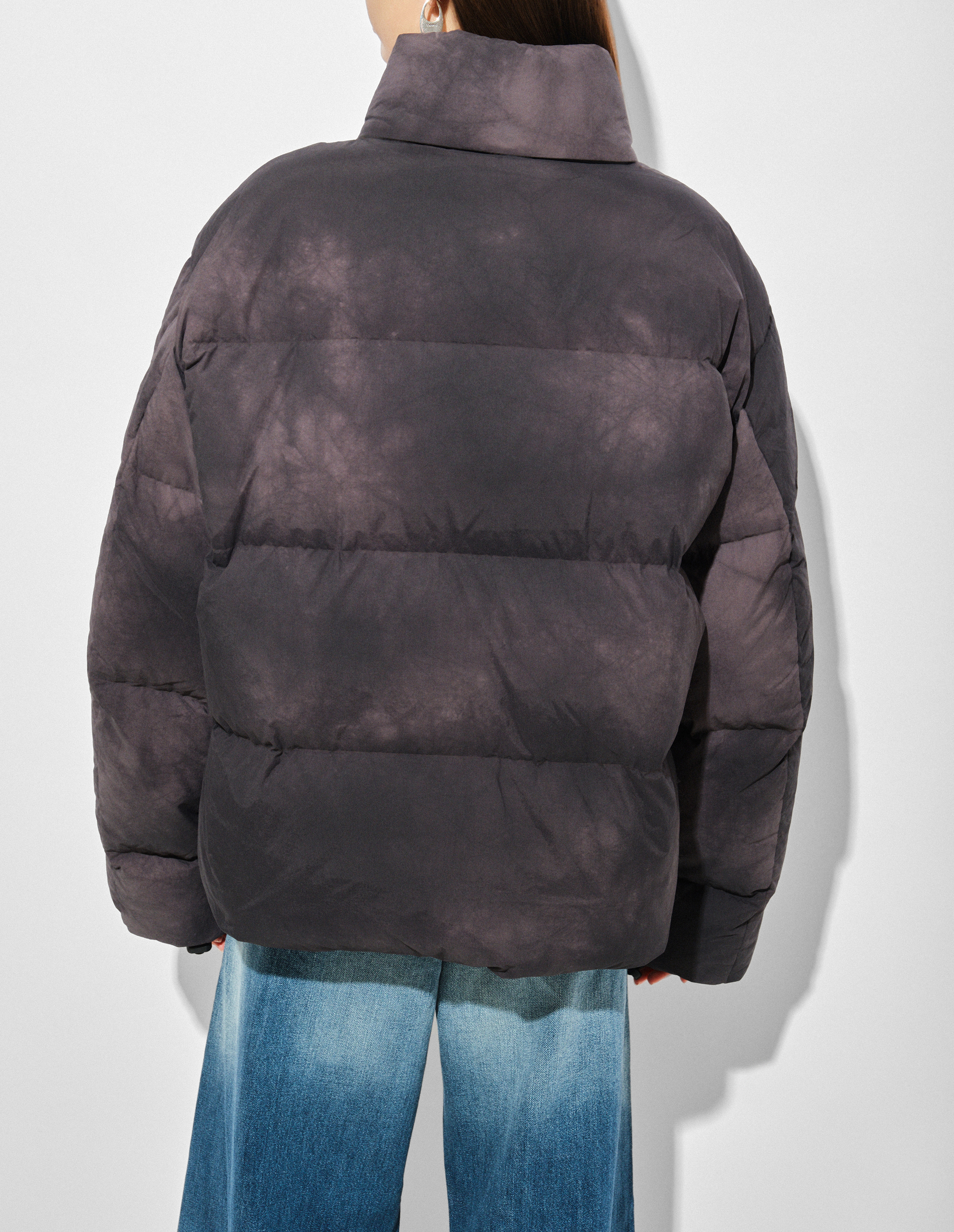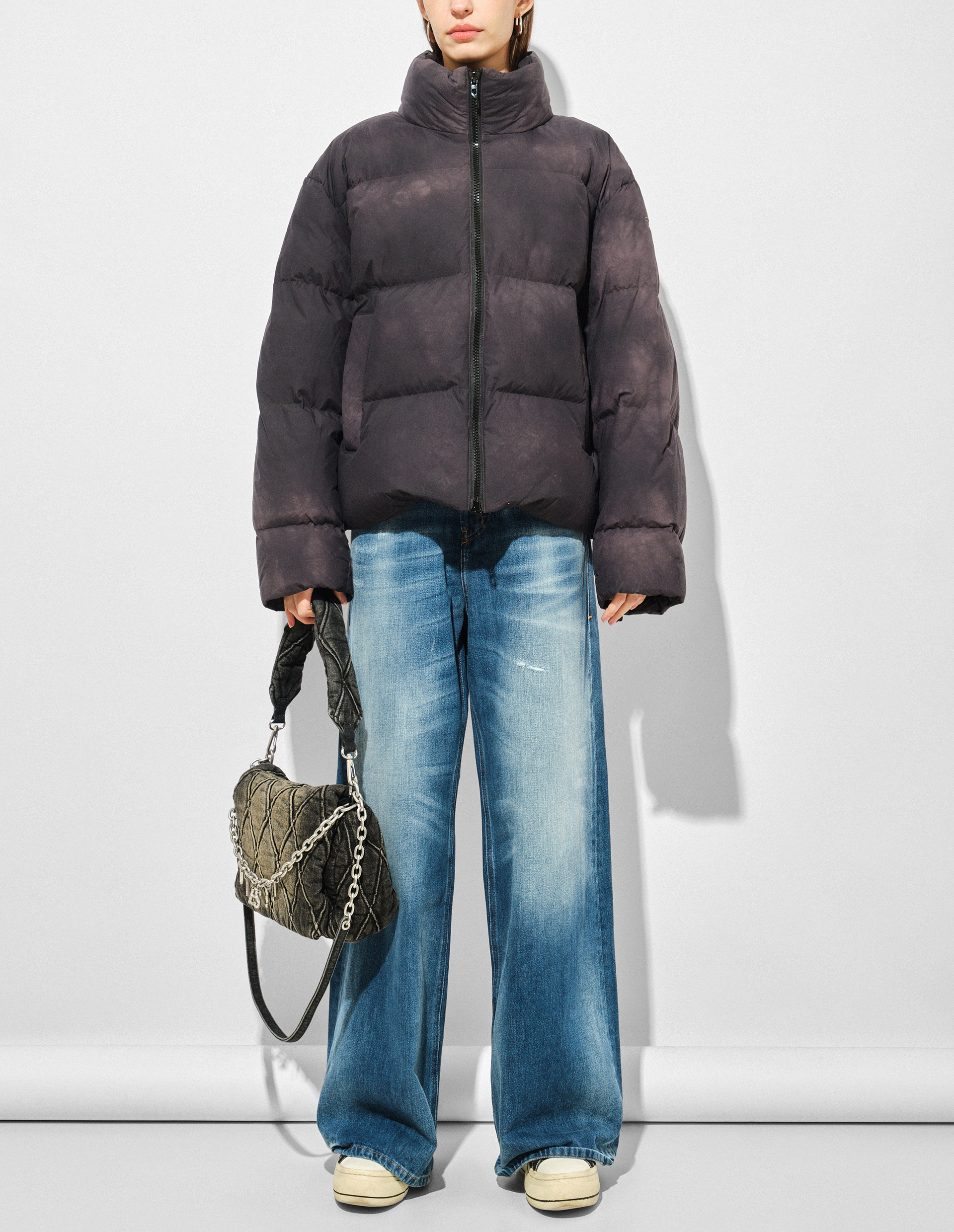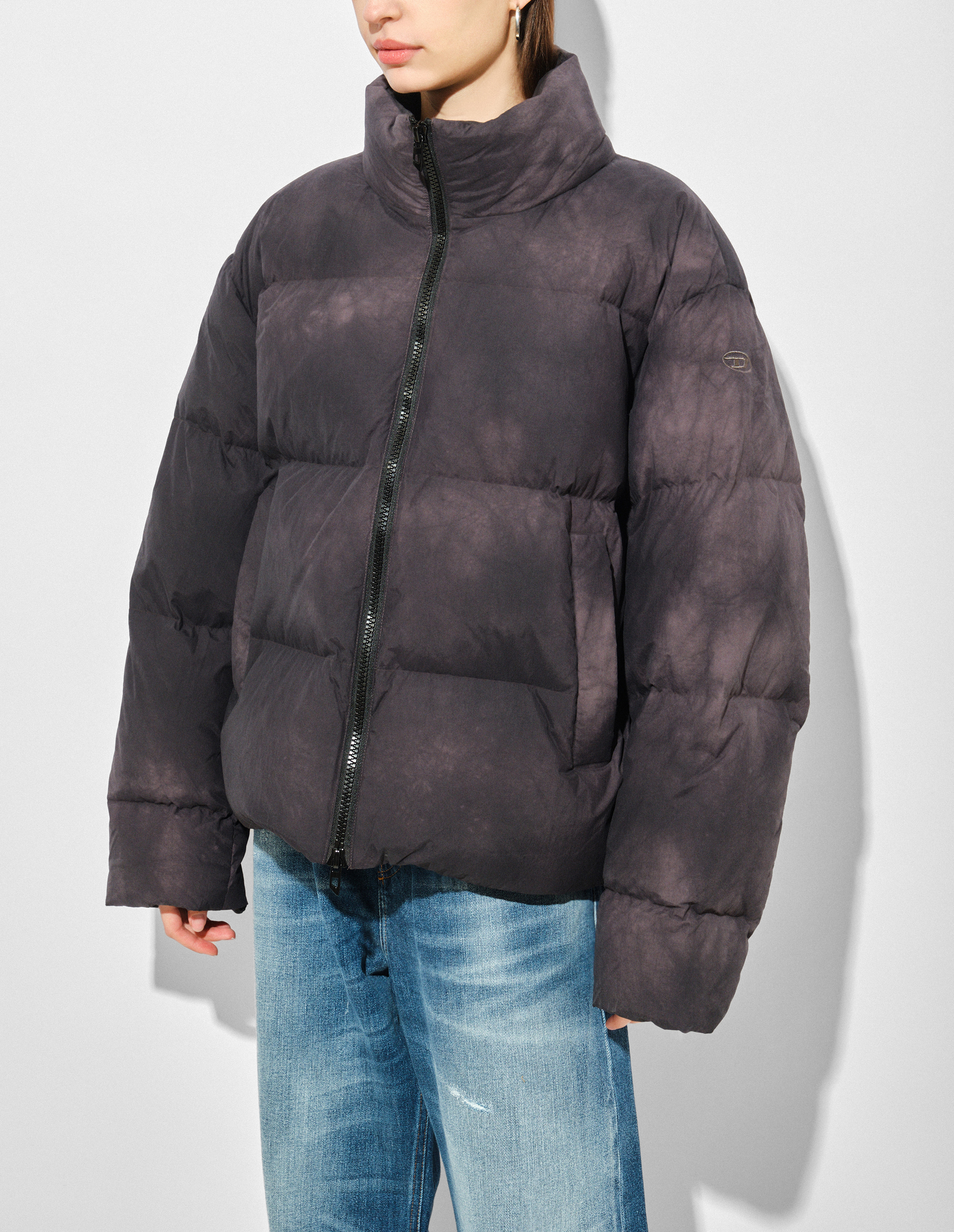 Женский укороченный puffer jacket W-RAVEEL произведен из сертифицированного переработанного нейлона, окрашенного и вручную обработанного для создания частично выцветшего create a patch-эффекта. Куртка щедро наполнена пухом, полученным экологичным способом, оснащена скрытым капюшоном, упакованным внутрь воротника-стойки. Эластичные шнуры на манжетах и подоле регулируют объем, а тональная вышивка в виде логотипа Oval D украшает левый рукав.