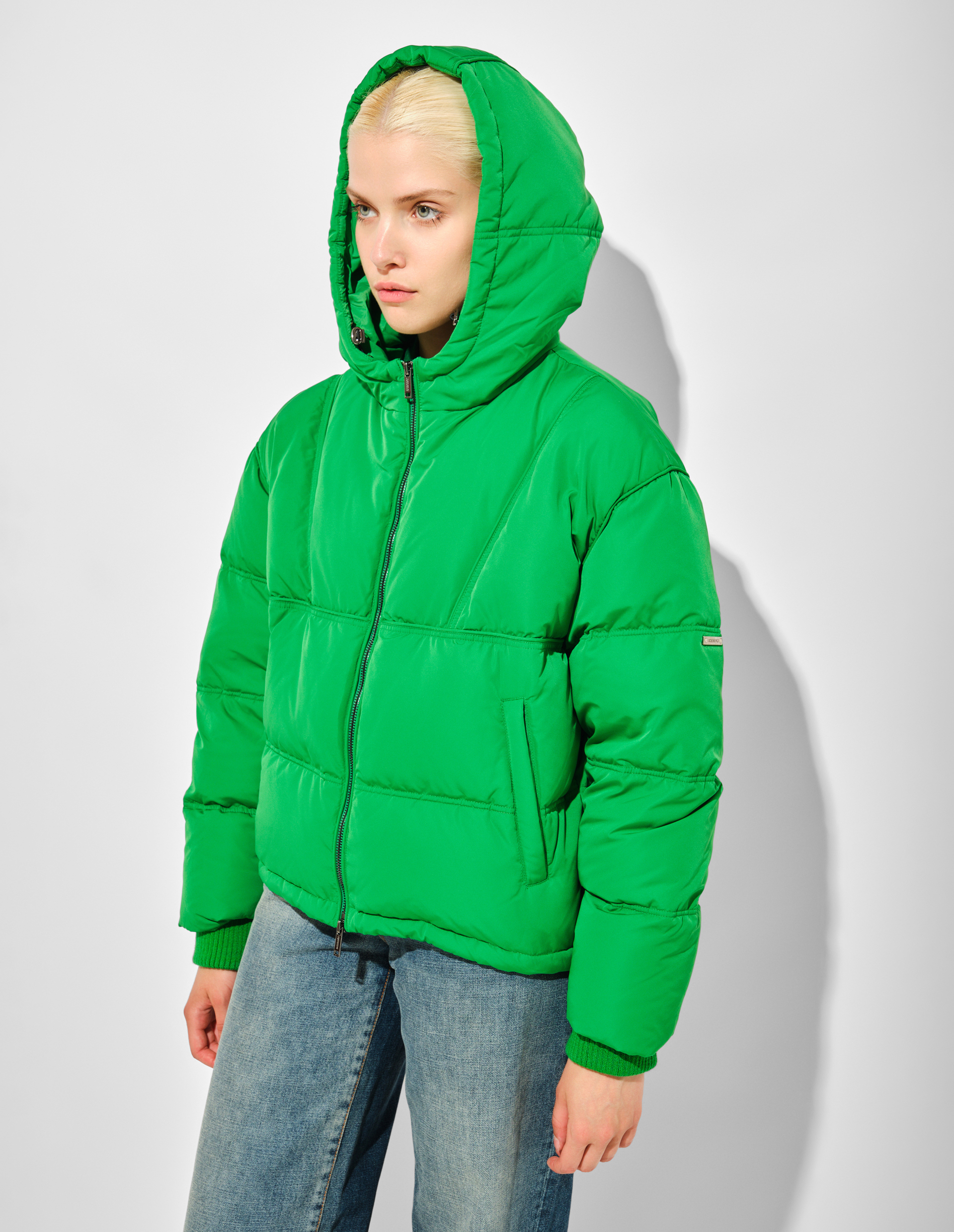 Для тех, кто хочет стильно противостоять холоду, миланский бренд ICEBERG представляет стильный, укороченный пуховик в изумрудно-зеленом оттенке. Он создан на лучшем итальянском производстве благодаря инновационным процессам, сочетающим в себе точность ручной работы и технологии. Его отличные характеристики начинаются с наружного ветро- и влагоустойчивого материала. Внутренний ультралегкий наполнитель помещен в прошитые камеры, что предотвращает комкование и повышает ресурсы по сохранению тепла. Еще одним защитным показателем выступают трикотажные манжеты, несъемный капюшон с регулировкой и встречная молния. На рукаве - изящная брендированная пластина, подтверждающая фирменную идентичность изделия.