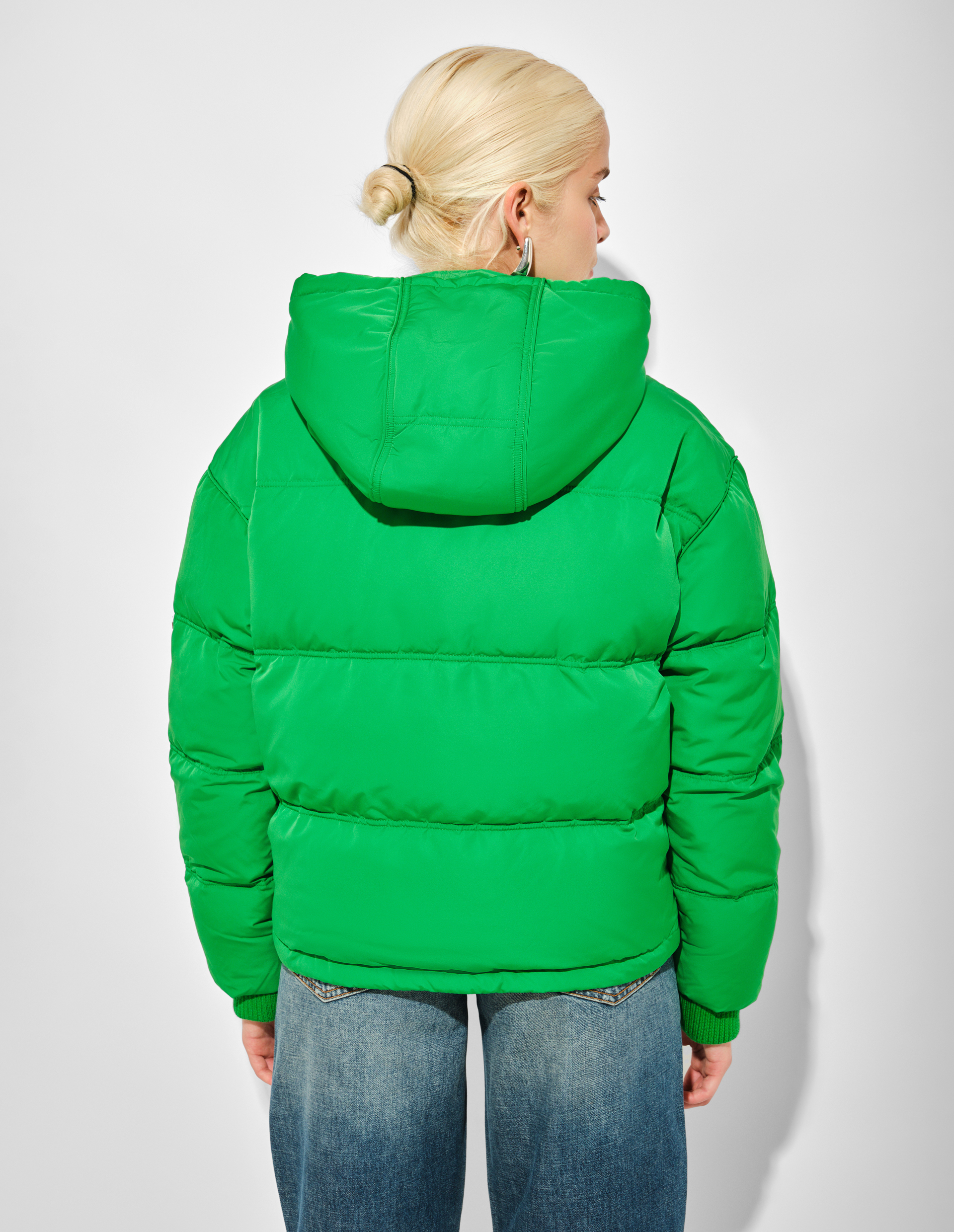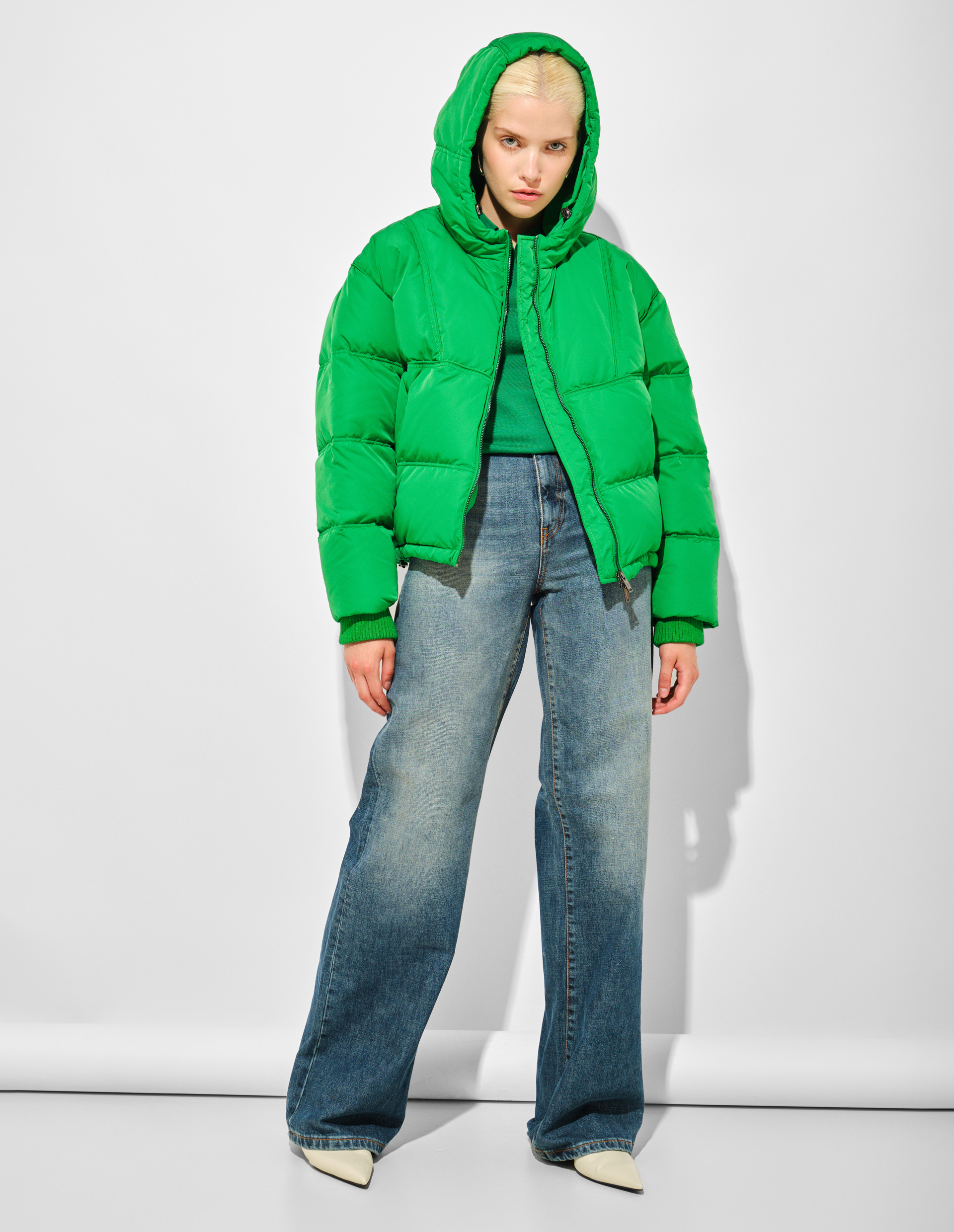 Укороченный изумрудно-зеленый пуховик