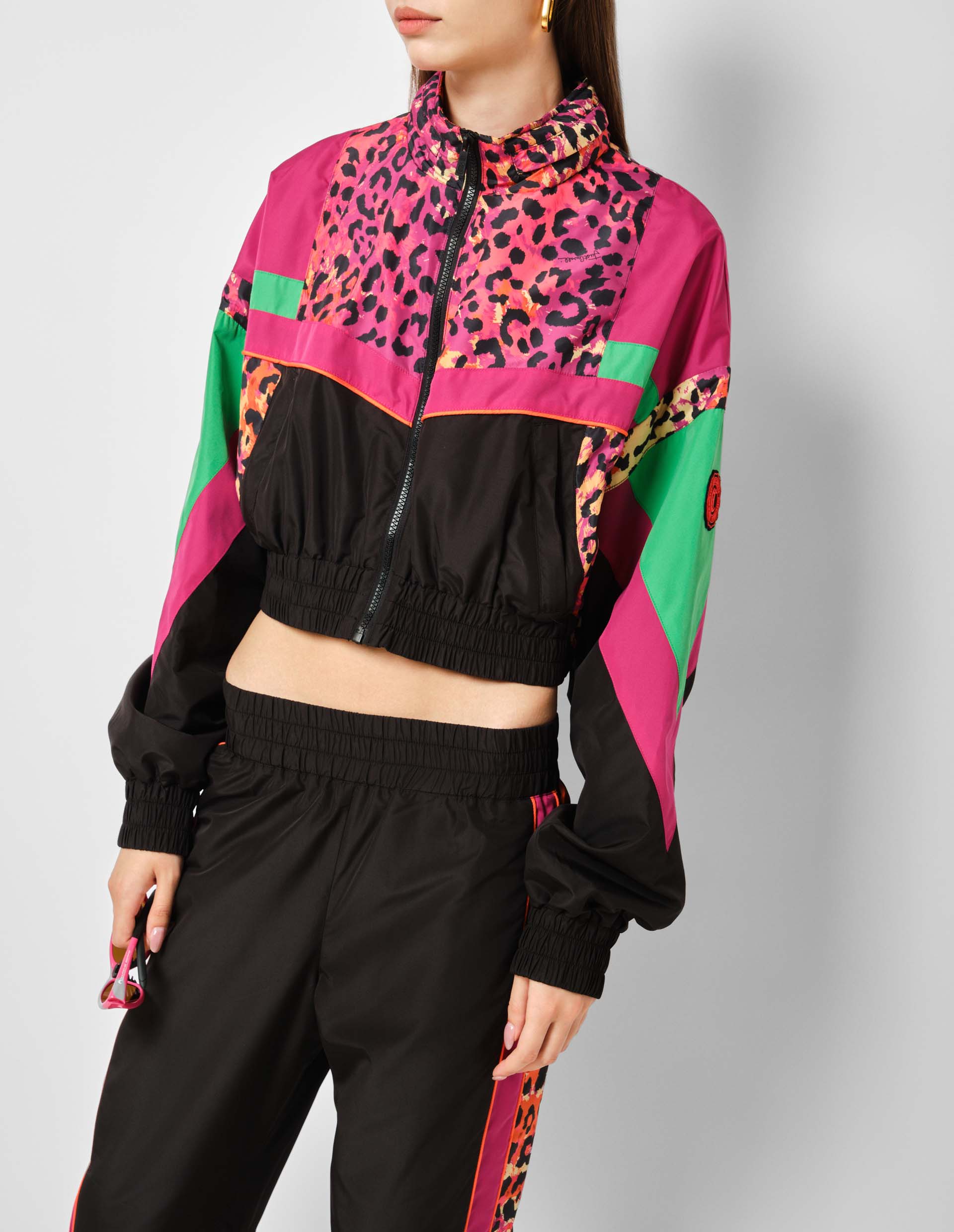 Черная укороченная ветровка с цветными вставками от Just Cavalli — это свидетельство, как одному бренду под силу обуздать дикий анималистичный принт, колоритность ярких цветов и воспроизвести это в смелом и самобытным изделии, которое призвано максимально чувственно подчеркнуть индивидуальность и чувство стиля своей обладательницы. Укороченная крой добавляет образу игривости и непринужденности, а гармоничное сочетание цветовых элементом и животного рисунка отмечают мастерство, свойственное культовому модному дому Roberto Cavalli. Продуманным и функциональным является и материал изделия из высокопрочного нейлона, который отличается тонкостью, но при этом отлично защищает от влаги и ветра. Создайте полный образ вместе с черными джоггерами с цветными лампасами и молниями от бренда Just Cavalli.