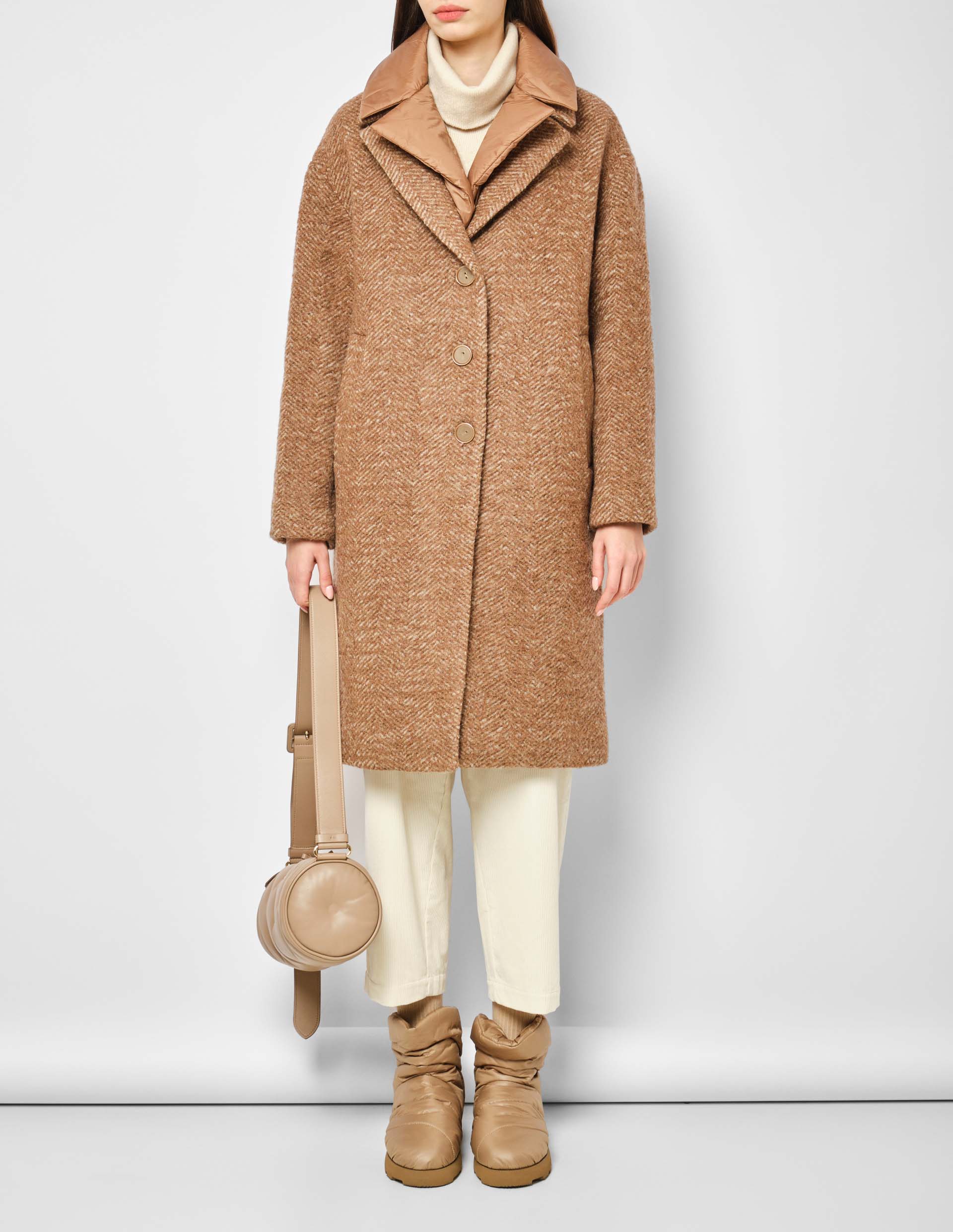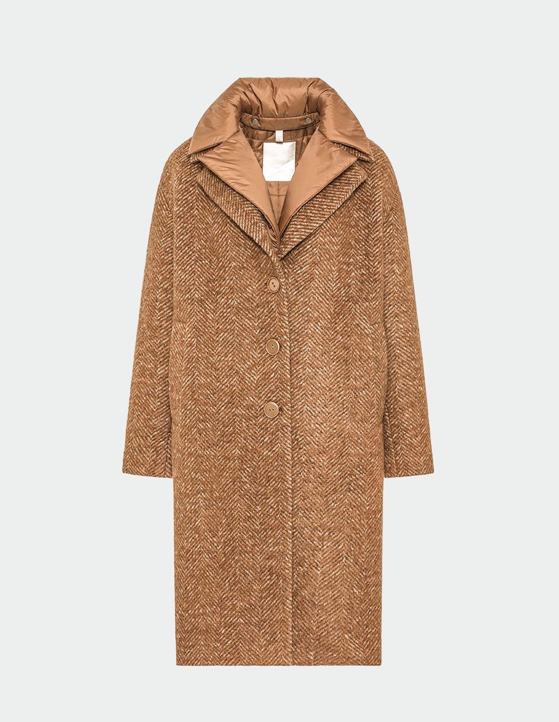 FABEL VARNA — это трендовое пальто из мягкой шерсти, волокна которой прошли двухэтапное контрастное окрашивание, получив вневременной узор "елочка" и сохранив глубину цвета. Модель застегивается на пуговицы, отмечена отложным воротом с лацканами и прорезными боковыми карманами. Для повышения функциональности изделие дополнено съемной панелью из сверхлегкой технической ткани, которая дублирует силуэт и оттенок пальто, создавая эффект многослойности.