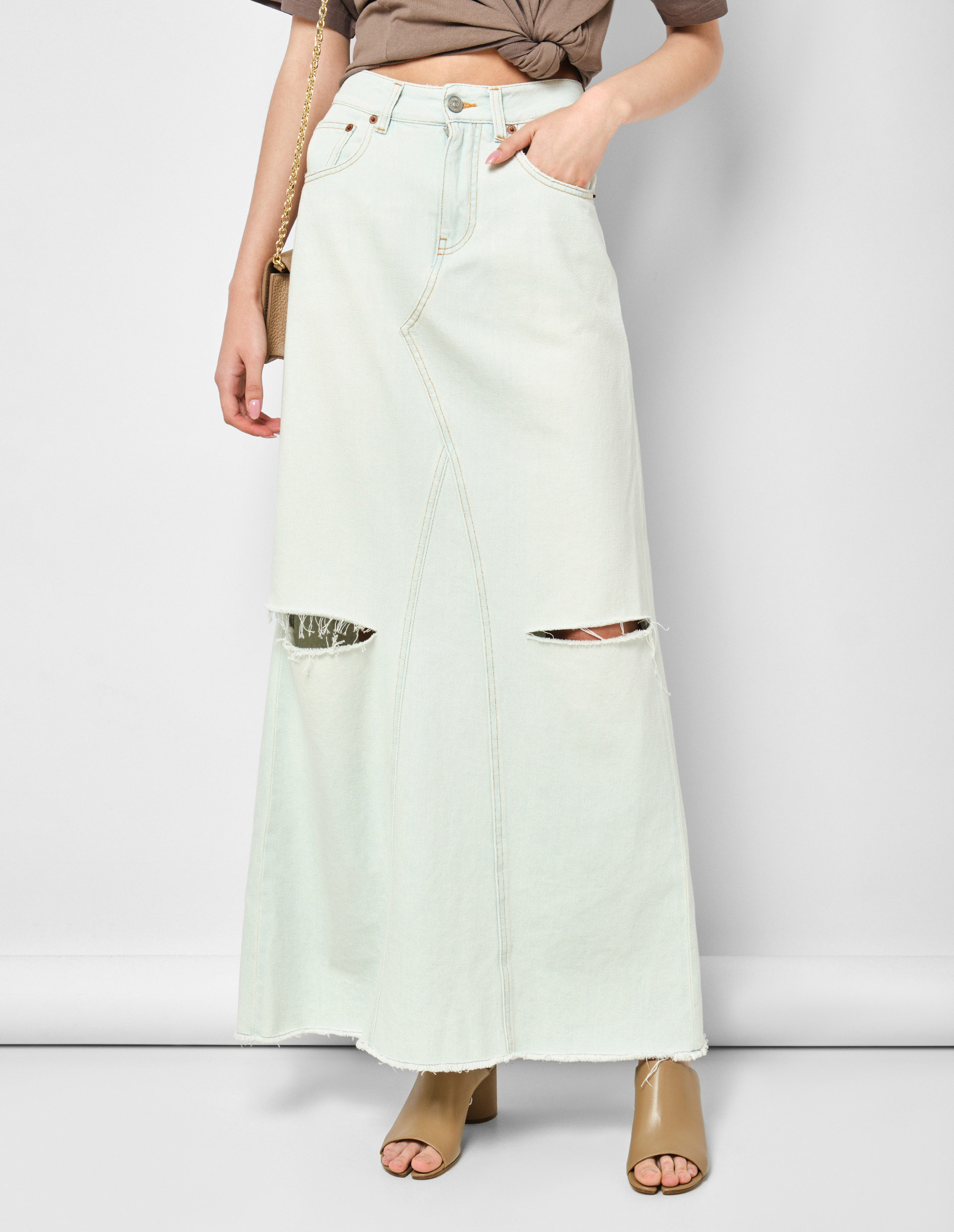 Светло-голубая джинсовая юбка-макси с разрезами