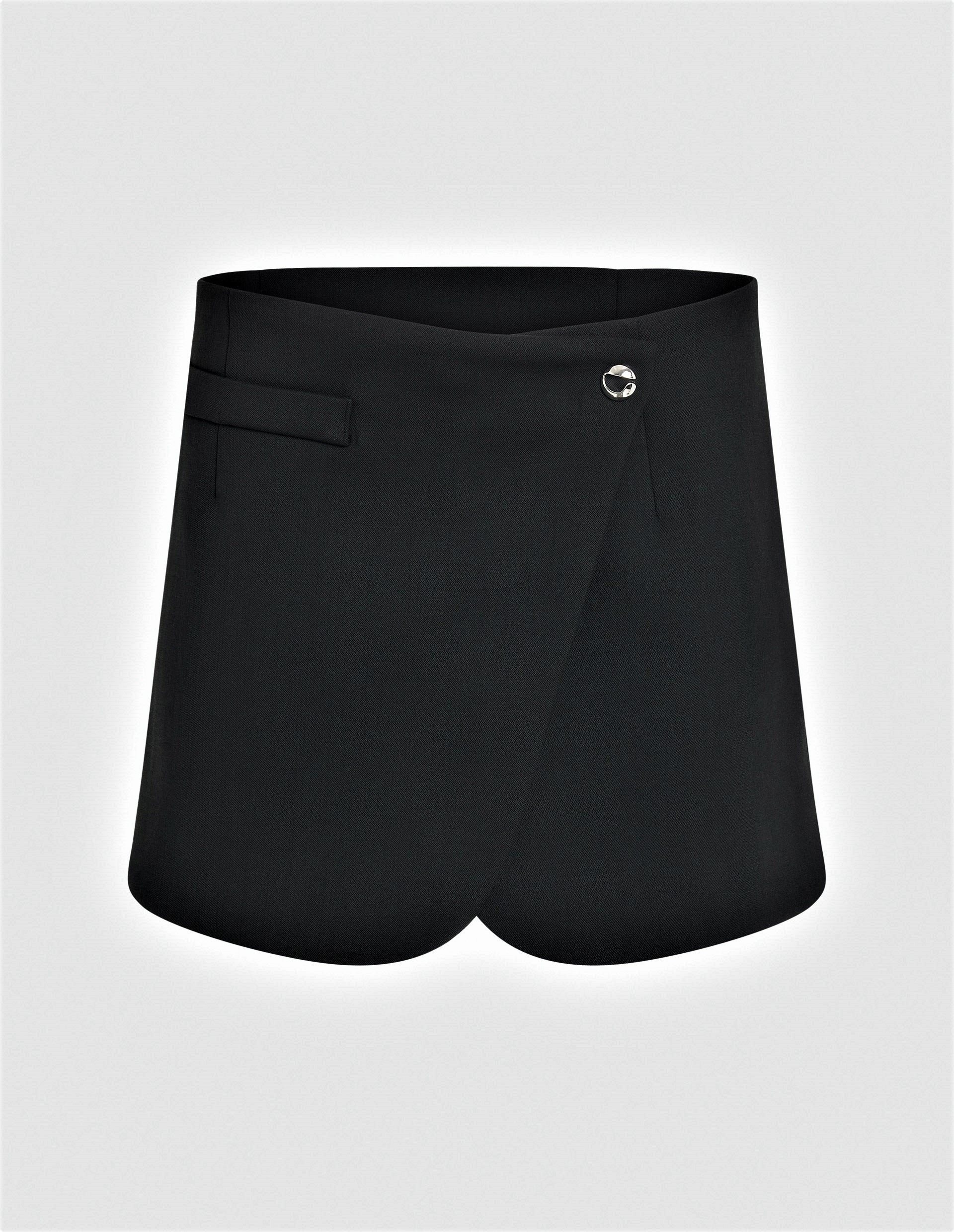 Черная мини-юбка от аутентичного бренда COPERNI станет универсальным айтемом в гардеробе: отлично подойдет для нарядного вечернего образа, летних прогулок на каждый день или добавить акцентной строгости и пикантности повседневному аутфиту. Завышенная талия визуально удлиняет силуэт и нивелирует кокетливую длину мини, призванная продемонстрировать красоту стройных ног. Продуманный дизайн на запах с накладным боковым карманом вносит нотки делового тона, который подчеркивается лаконичным декором в виде серебряного логотипа бренда.