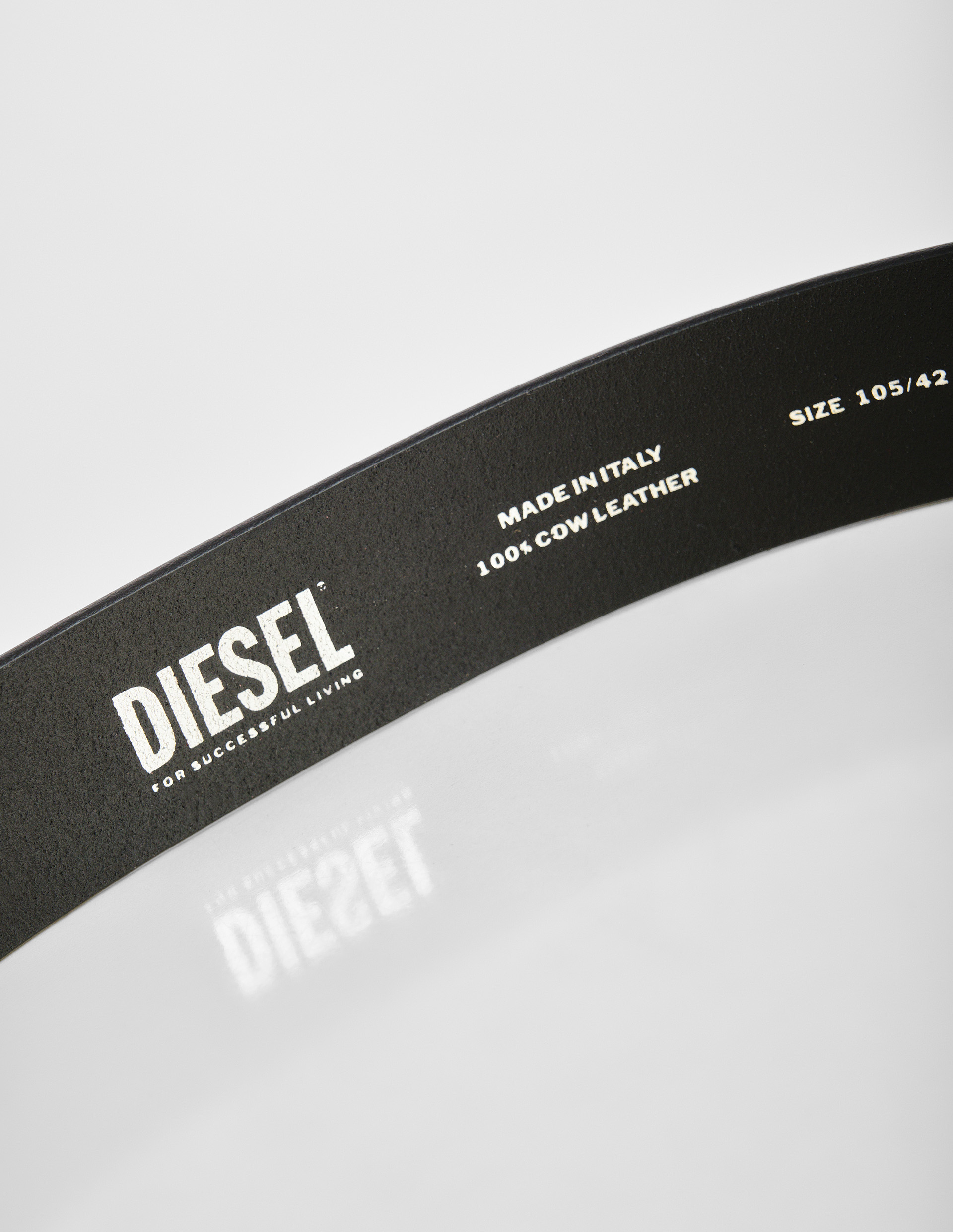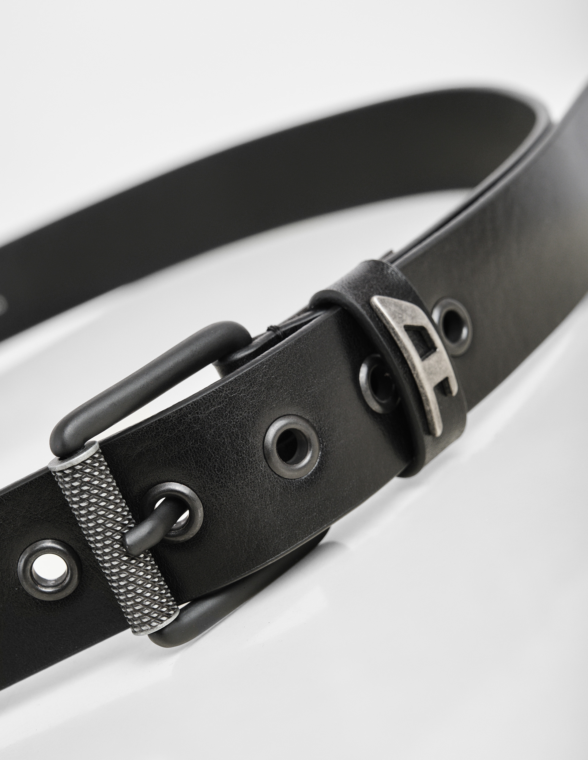 Смелый аксессуар, объединяющий эстетику брутального стиля и экологичное производство — это черный ремень B-DAVE II от DIESEL. Изделие выполнено из мягкой телячьей кожи, дубленной с использованием щадящих растительных технологий, что снижает воздействие на окружающую среду. Глянцевая пряжка дополнена фактурным роликом, а перфорация с массивными люверсами придает модели характерный урбанистический шарм. Деталь в виде металлической пластины с логотипом «D» на шлевке завершает лаконичный, но выразительный дизайн. Универсальный ремень легко интегрируется в разные образы – от повседневных до строгих комплектов, подчеркивая приверженность владельца стилю и осознанному потреблению.