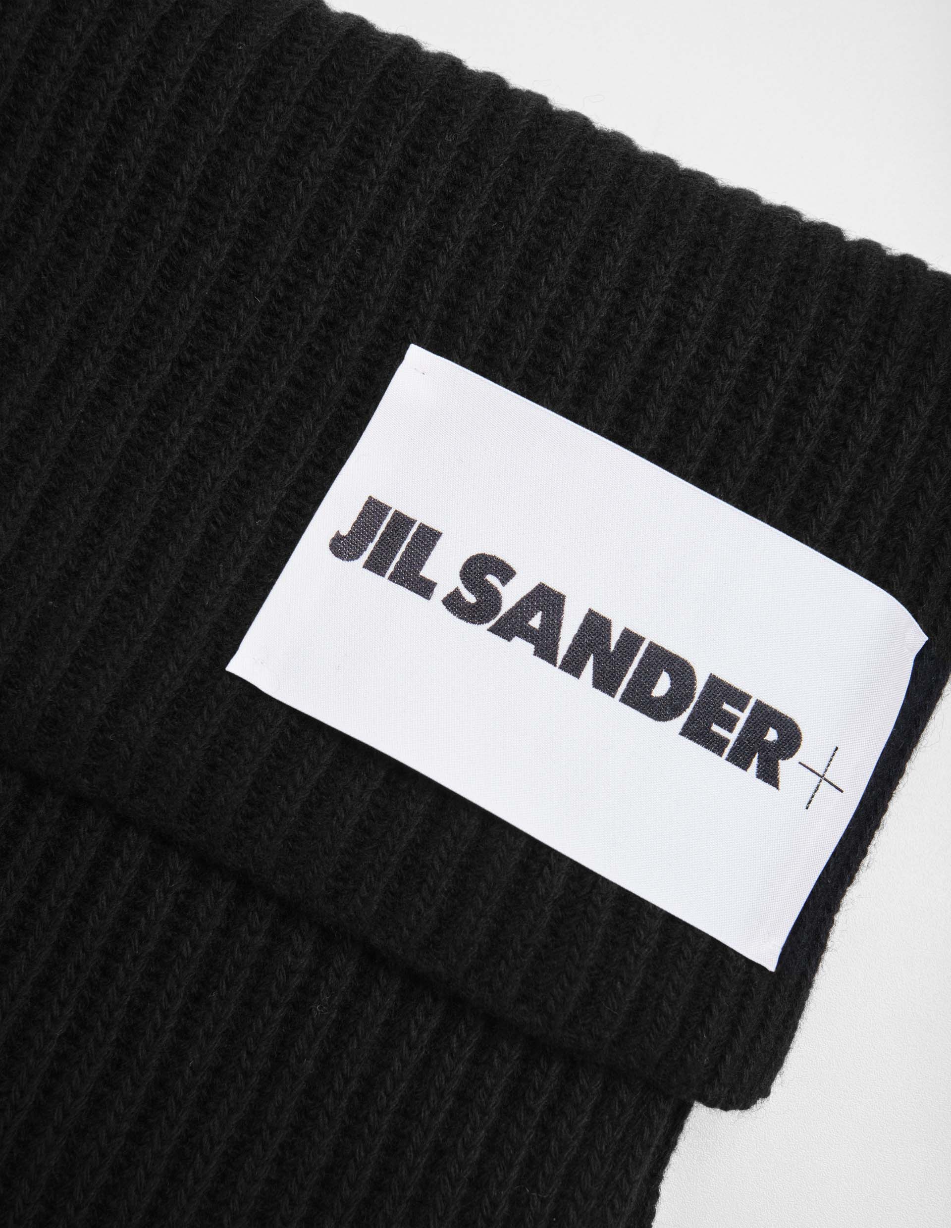 Определенная угловатость заложена в осеннюю коллекцию бренда Jil Sander, чтобы добавить повседневным образам характерности и пикантности острых форм, которые читаются в черном лаконичном шафре с фирменным брендированным патчем Jil Sander+. Угольно-черный оттенок будто создан с урбанистическим налетом и наиболее четко подчеркивает графично ровные края изделия. Чтобы выделить фактуру и придать объемности, шарф был выполнен из ребристого трикотажа, в основу которого были взяты прочные и мягкие нити натурально шерсти, поддерживающие оптимальную температуру тела.