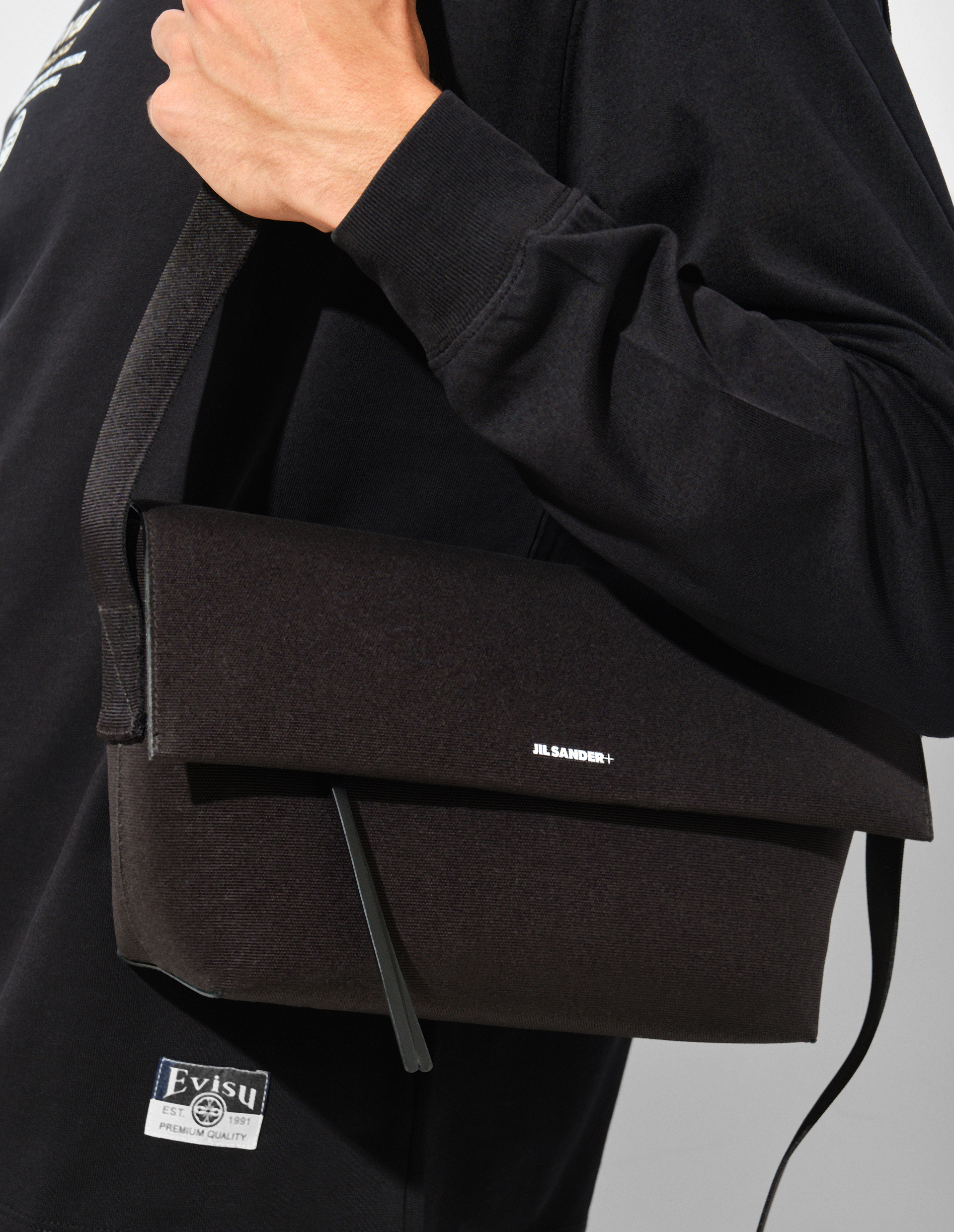 Создание этой сумки началось с поиска вневременного дизайна, выполненного с исключительным мастерством и использованием инновационных материалов. В результате появился изысканный аксессуар, словно новое, современное искусство. Он выполнен из плотной, фактурной парусины на базе премиального хлопка, что делает поверхность устойчивой к повреждениям, но сохраняет компромисс с минималистичным настроением и роскошным видом. Сохраняя мастерство под маркой Made in Italy, уделено внимание каждой детали: яркой подкладке внутреннего отделения со слотом для карт, карману на молнии, качественной фурнитуре. Широкий ремень cross body изготовлен из прочного грогрена и имеет возможность индивидуальной регулировки. Лаконичная нашивка с лого Jil Sander+ означает расширение мира JS, расслабленность и уют, характерный продукции для повседневной жизни, ощущение роскоши и комфорта.