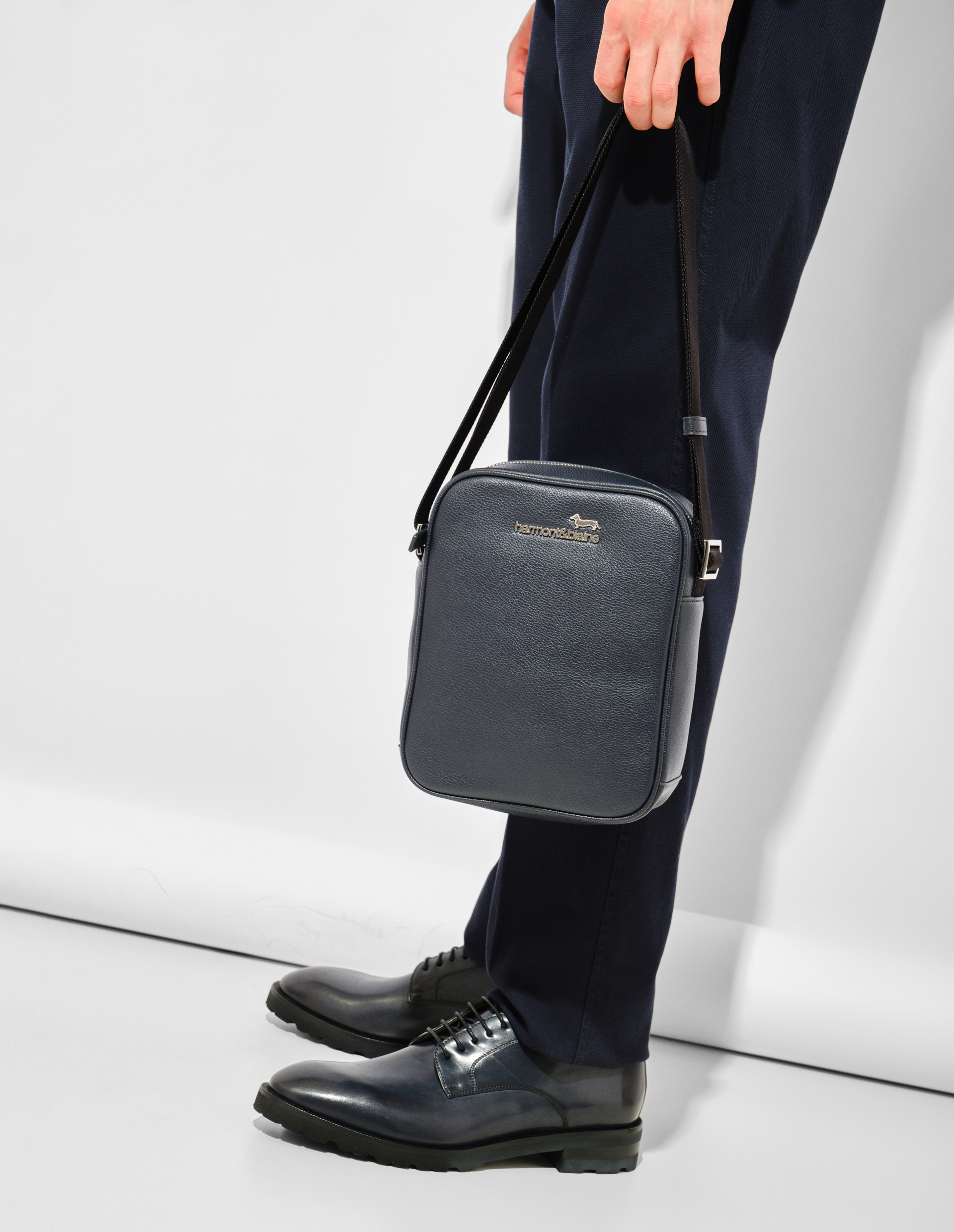 Идеальный спутник для повседневной жизни, эта мужская сумка через плечо от Harmont & Blaine сочетает лаконичный дизайн с продуманной функциональностью. Модель с закругленными контурами выполнена из шагреневой экокожи, отличающейся долговечностью и тактильной привлекательностью. Вместительное основное отделение с надежной застежкой-молнией обеспечивает удобство хранения личных вещей. Фирменный акцент — серебристая пластина с логотипом и изображением культовой таксы Блейн, подчеркивающая наследие бренда. Регулируемый ремень из прочного грогрена позволяет адаптировать длину.