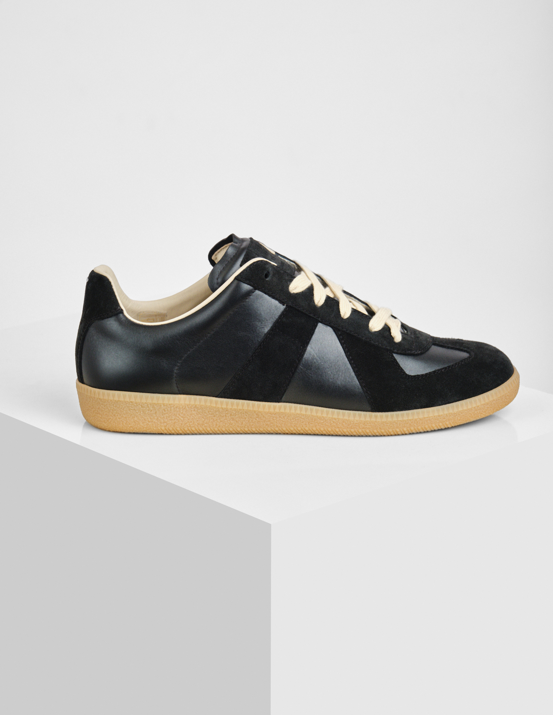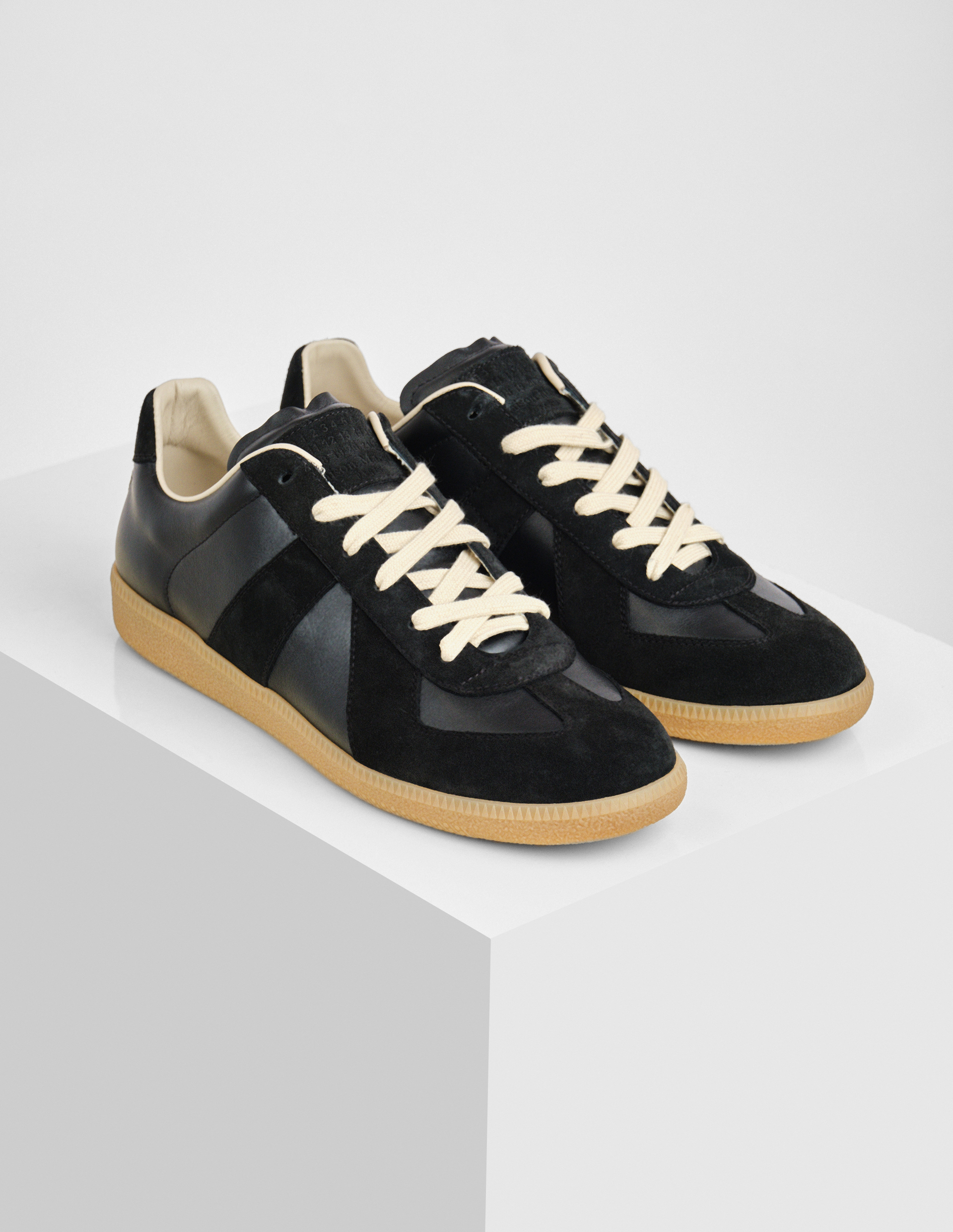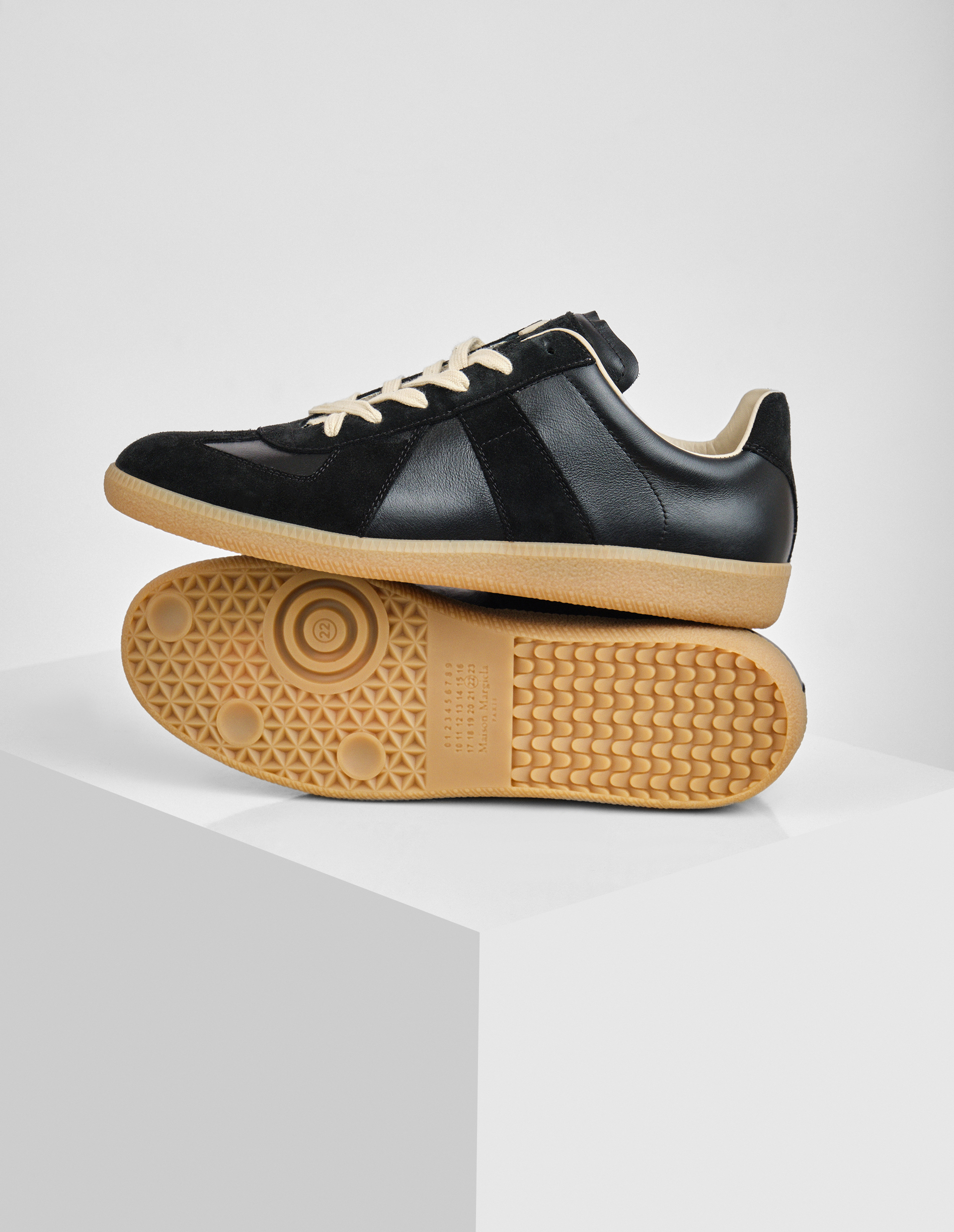Replica — культовые кеды, возникшие как репродукция обуви семидесятых годов, популярной в Австрии, транслирующие уравновешенную эстетику историзма. Они изготовлены из гибридных материалов, помещенных на резиновую подошву медового цвета. Одним из составляющих компонентов является натуральная замша, а другим — крастовая кожа, подвергшаяся минимальной обработке для сохранения естественного рисунка и придания ей особой изысканности. В кедах Реплика ваш шаг будет динамичным и сбалансированным, а служба пары долгой благодаря высококачественным материалам и дизайну, который постоянно перерабатываются в соответствии с сезонными тенденциями. Наклейка с логотипом Maison Margiela на ярлычке и иконическая белая строчка сзади являются фирменной подписью модного Дома.