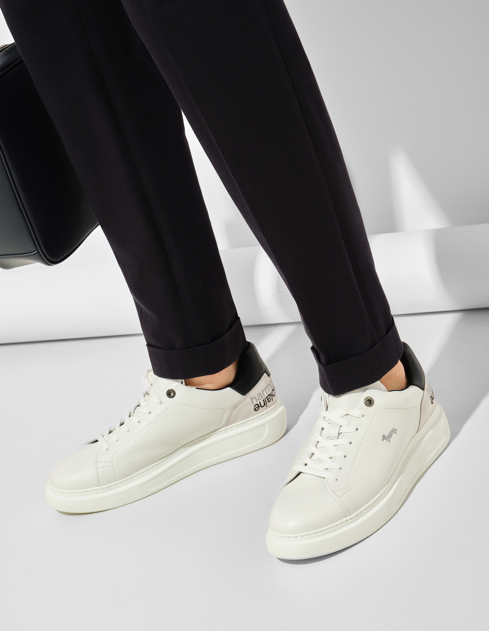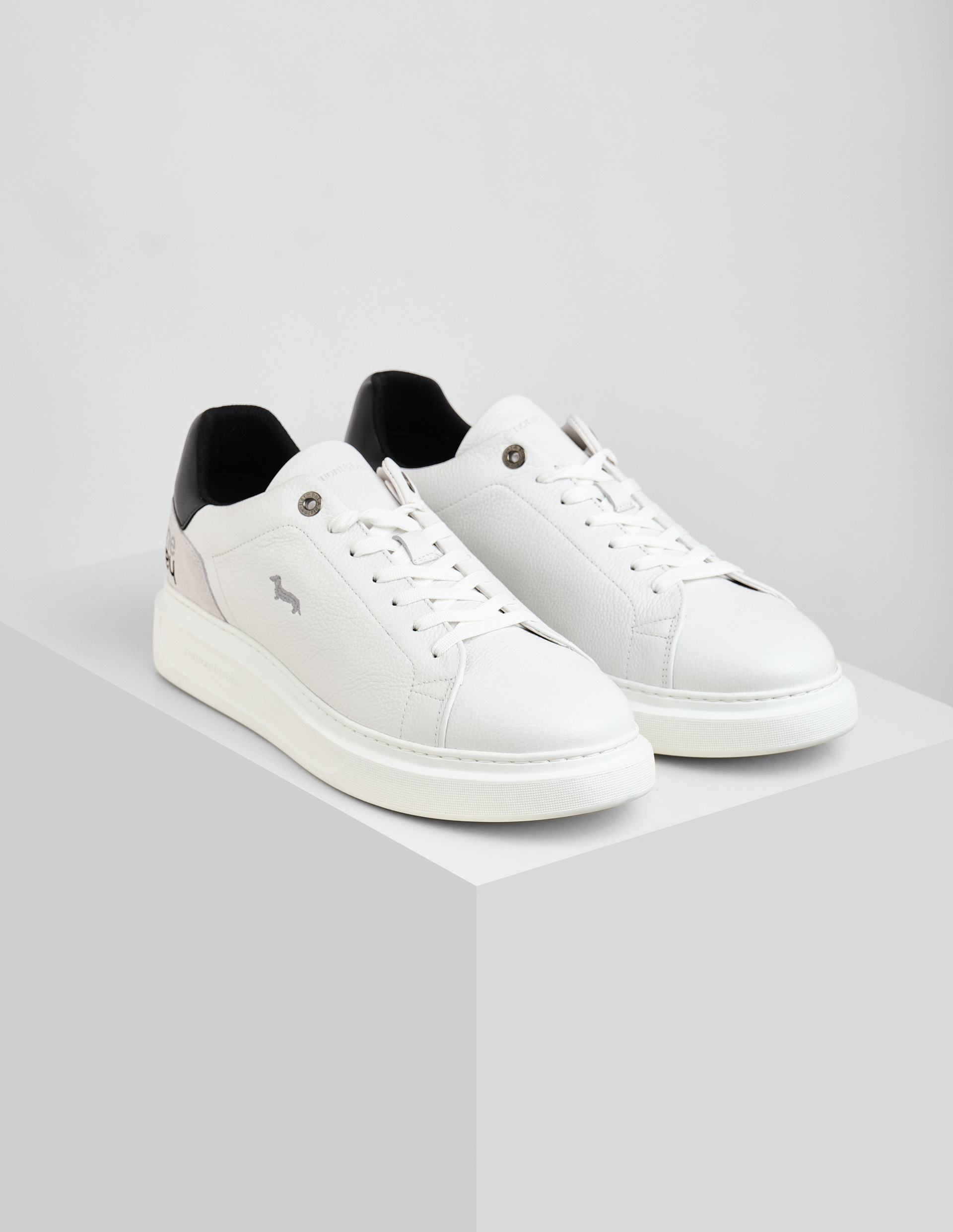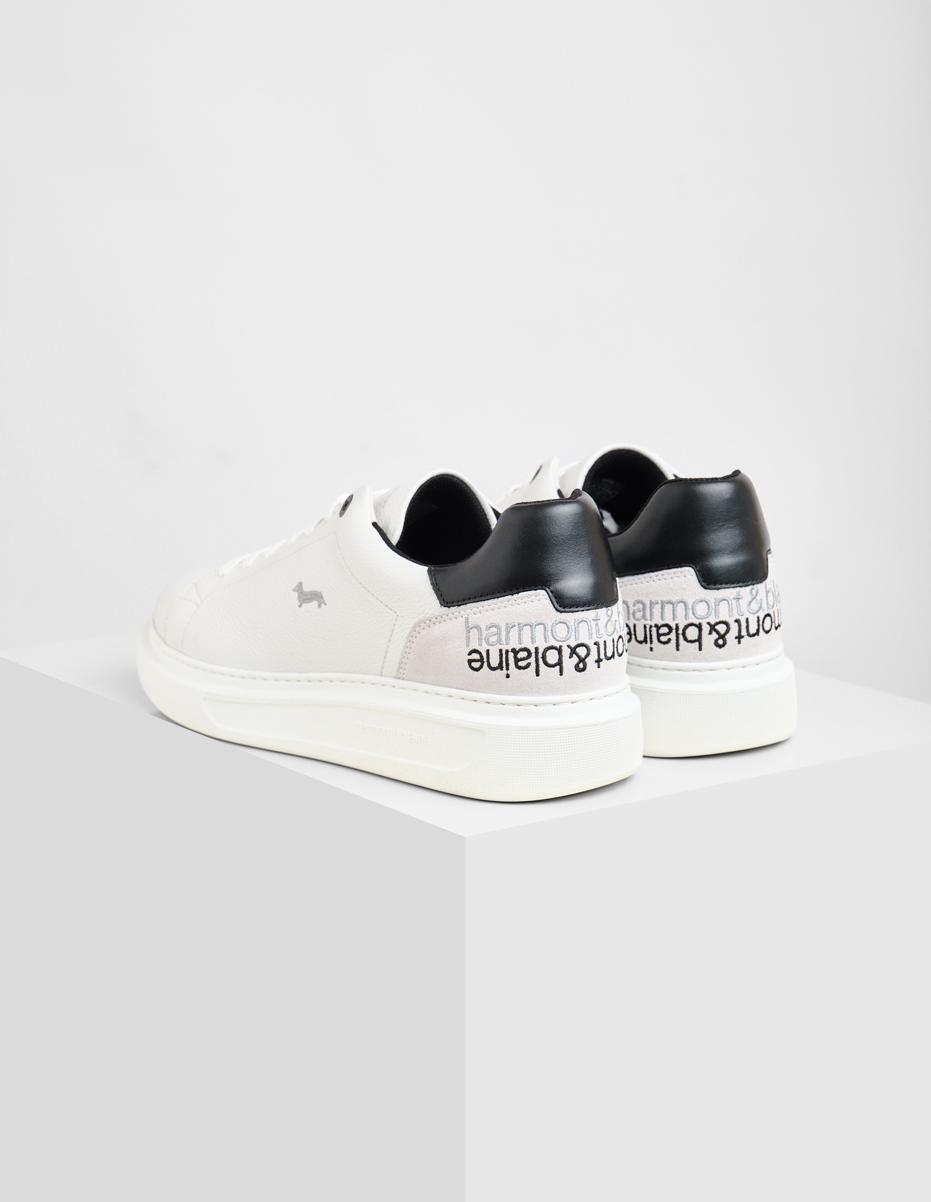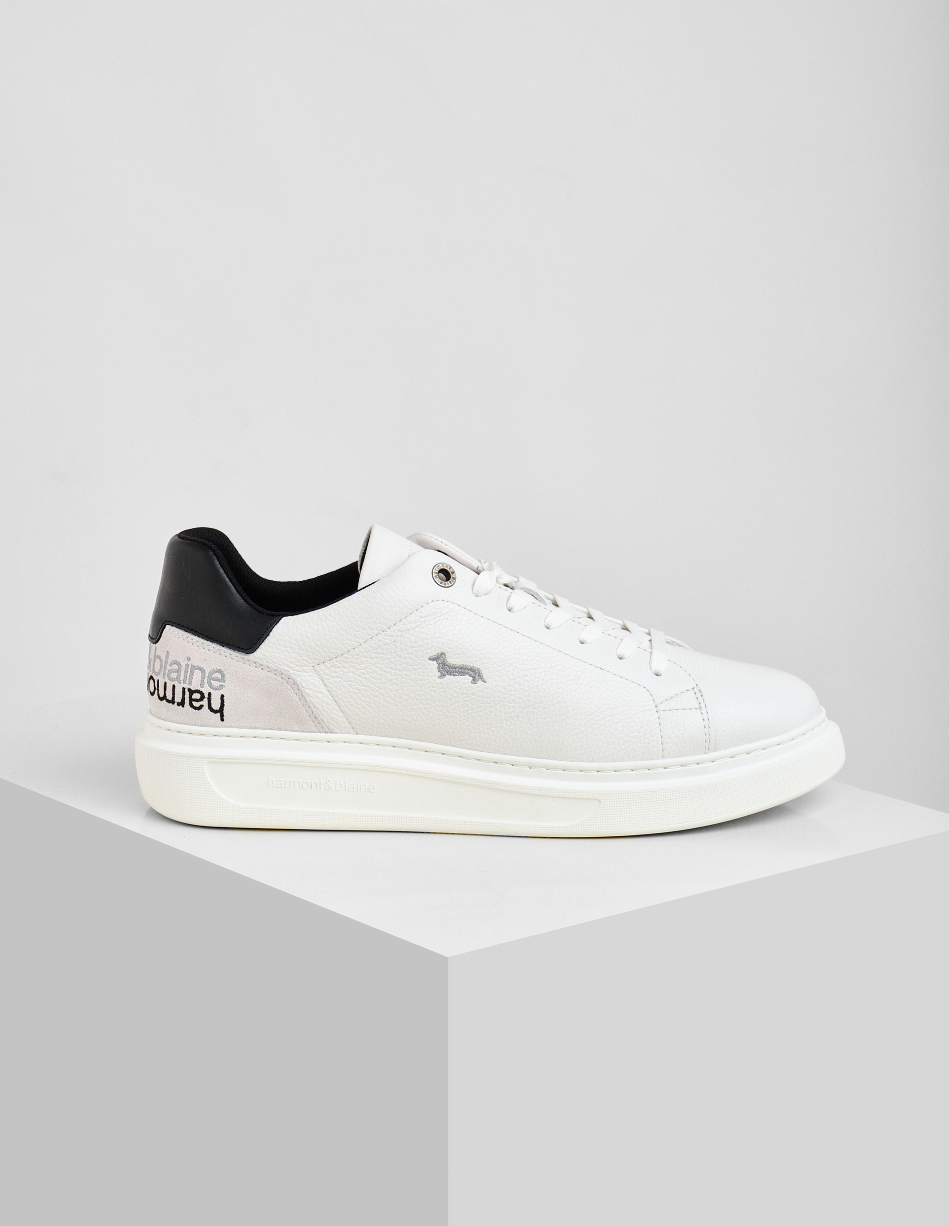 Кеды Harmont&Blaine сочетают в себе элегантность и современный дизайн. Модель из мягкой телячьей кожи дополнена контрастной деталью на заднике и зеркальной вышивкой. Сбоку расположен логотип в виде культовой таксы, который добавляет сдержанный штрих в духе бренда. Сверхлёгкая подошва из EVA с фирменным протектором гарантирует удобство при движении и завершает современный образ.