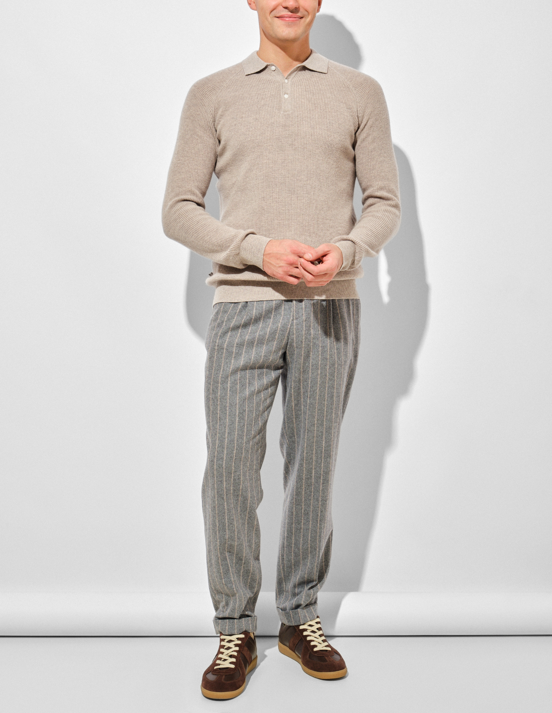 Брюки из смесовой шерсти в полоску