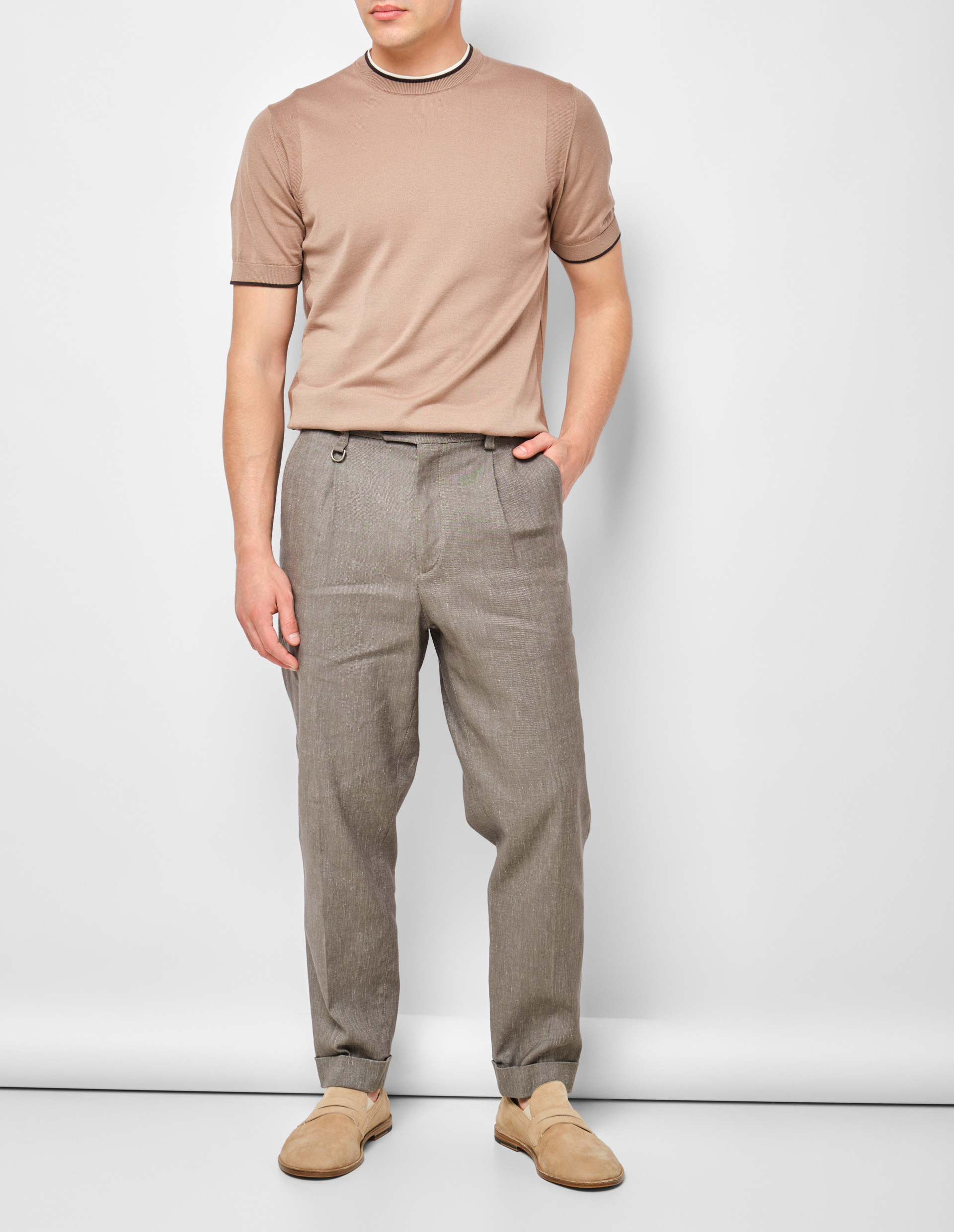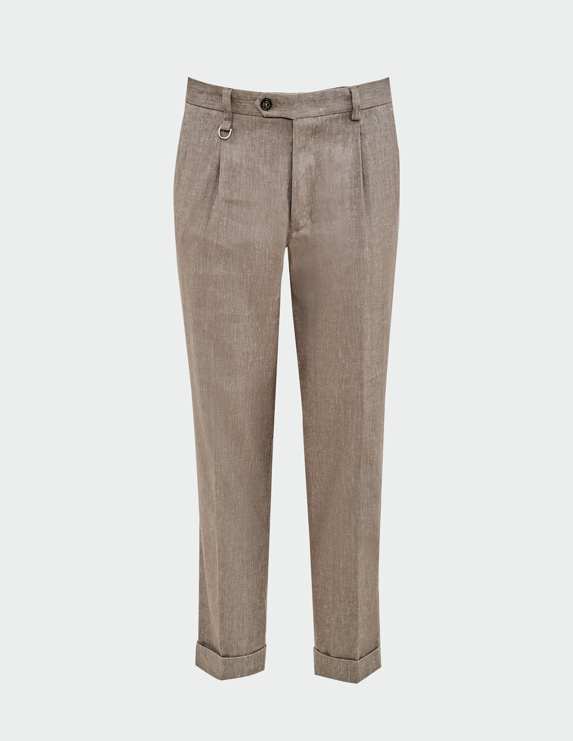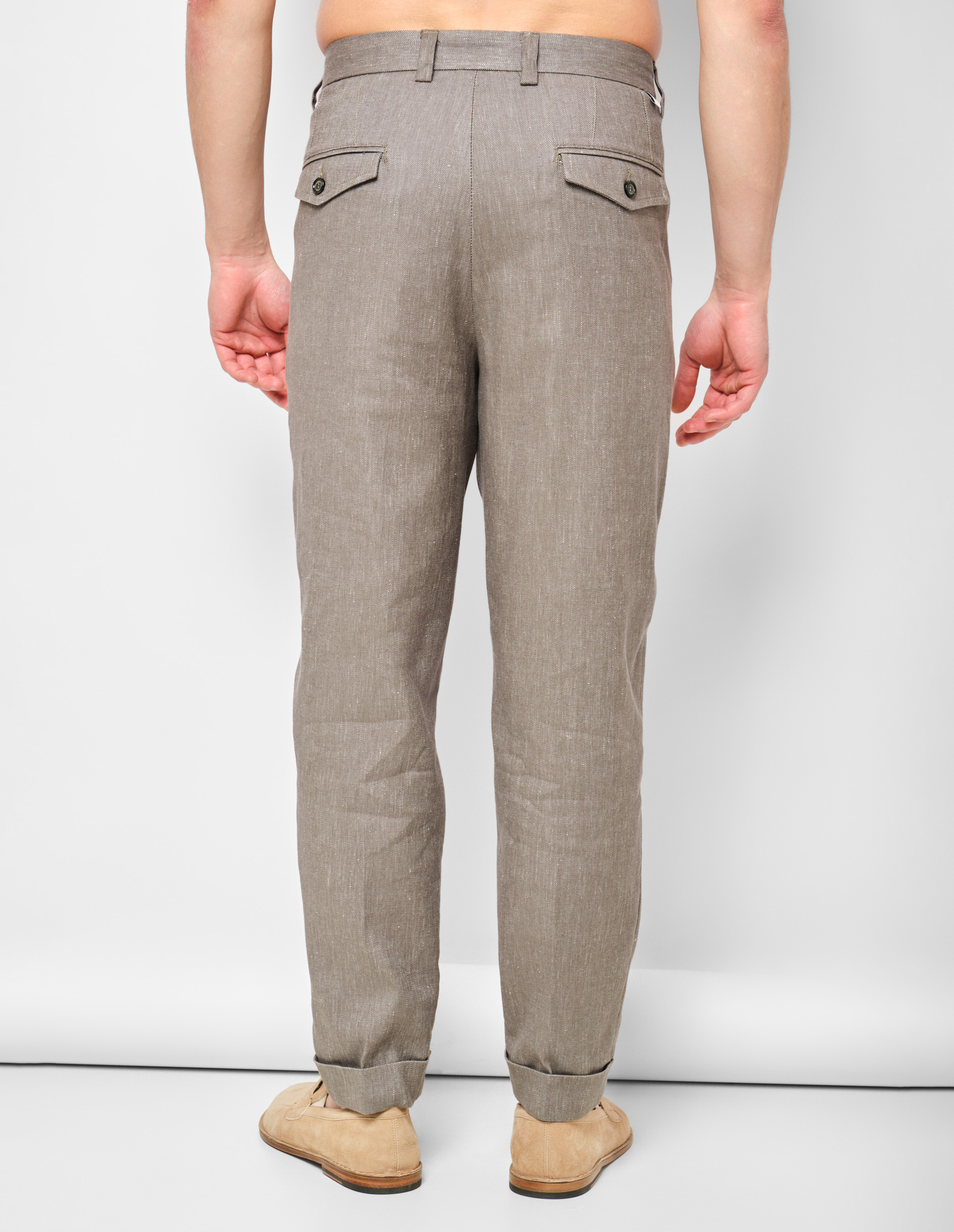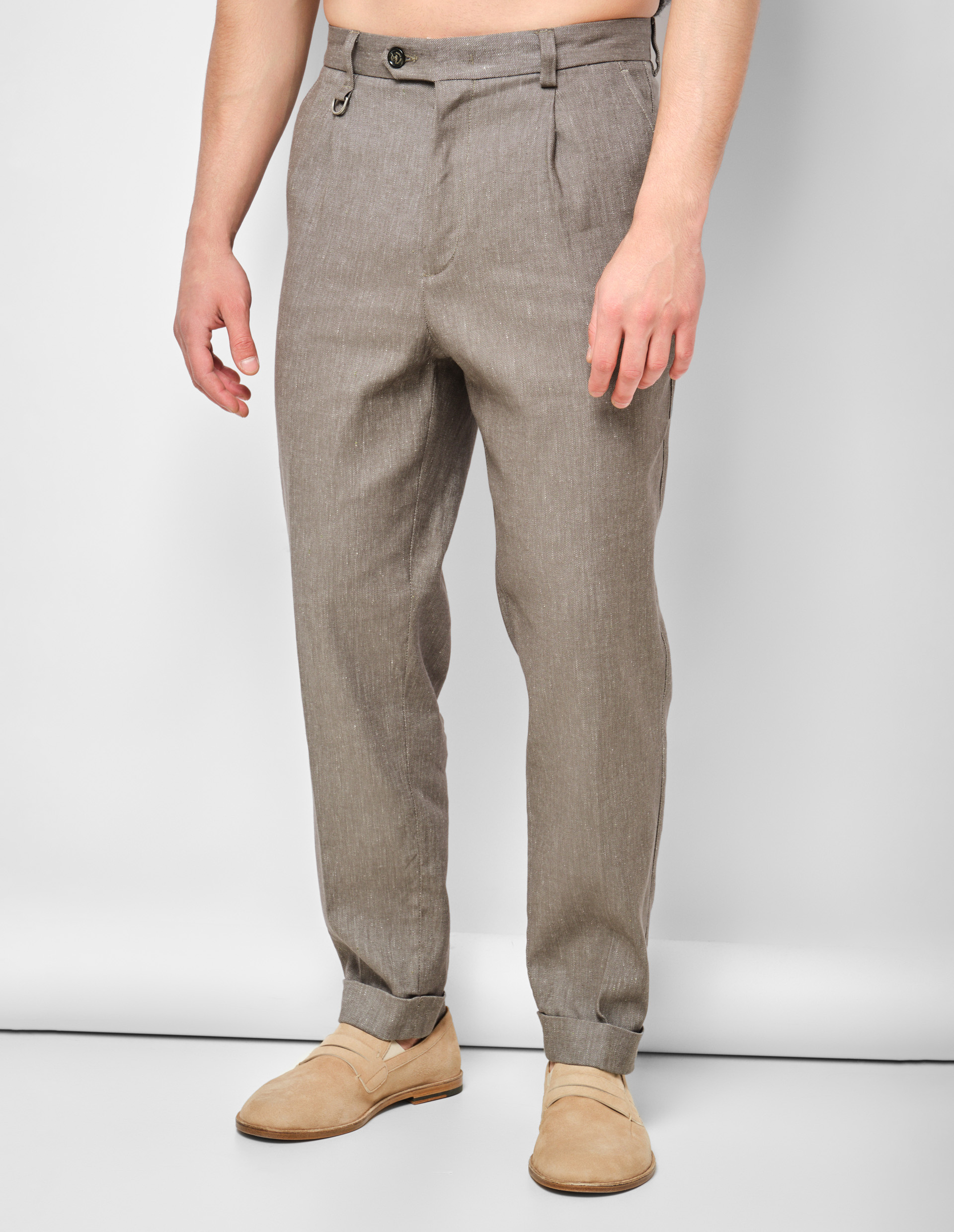 Базовая модель для комфортного лета в деловом стиле. Комбинация льна и хлопка сохраняет ощущение легкости на протяжении дня. Спокойный цвет серо-коричневой гаммы совместим с любыми расцветками и силуэтами. Оригинальный декор из манжет, складок и стрелок создает баланс, в котором каждый элемент имеет значение. Контрастные пуговицы как акцентная деталь. Ткань «меланж» добавляет нотку неформальности. Безупречные классические брюки для тех, кто ценит непринужденную роскошь.
