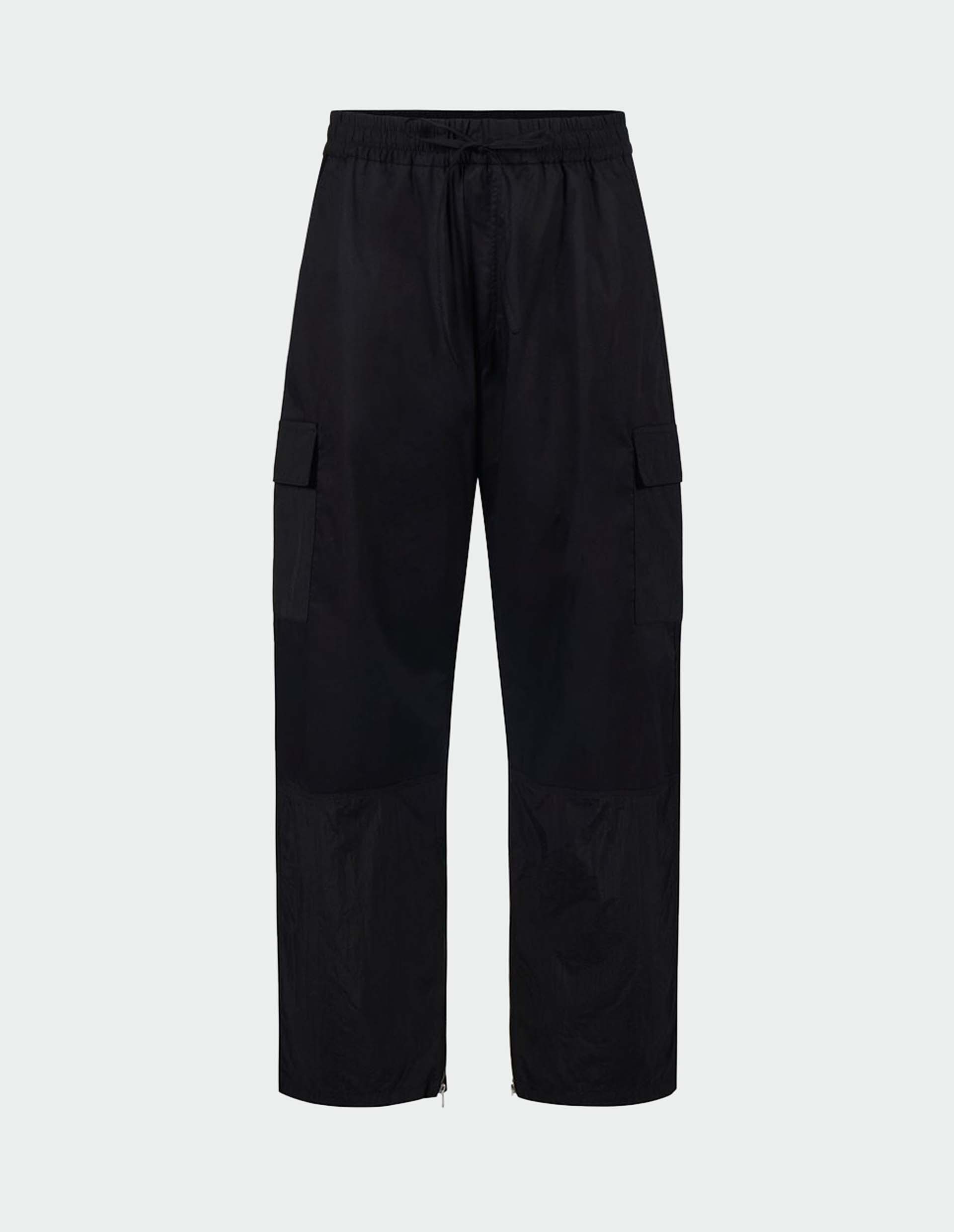Черные брюки-карго с эластичным поясом и молниями снизу