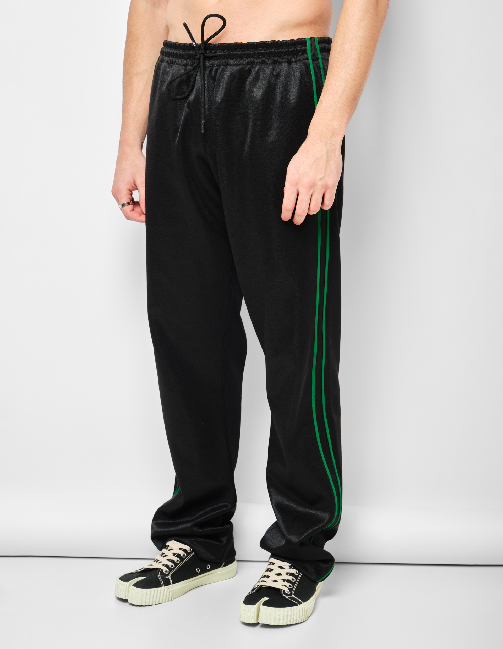 Черные спортивные брюки с зелеными лампасами