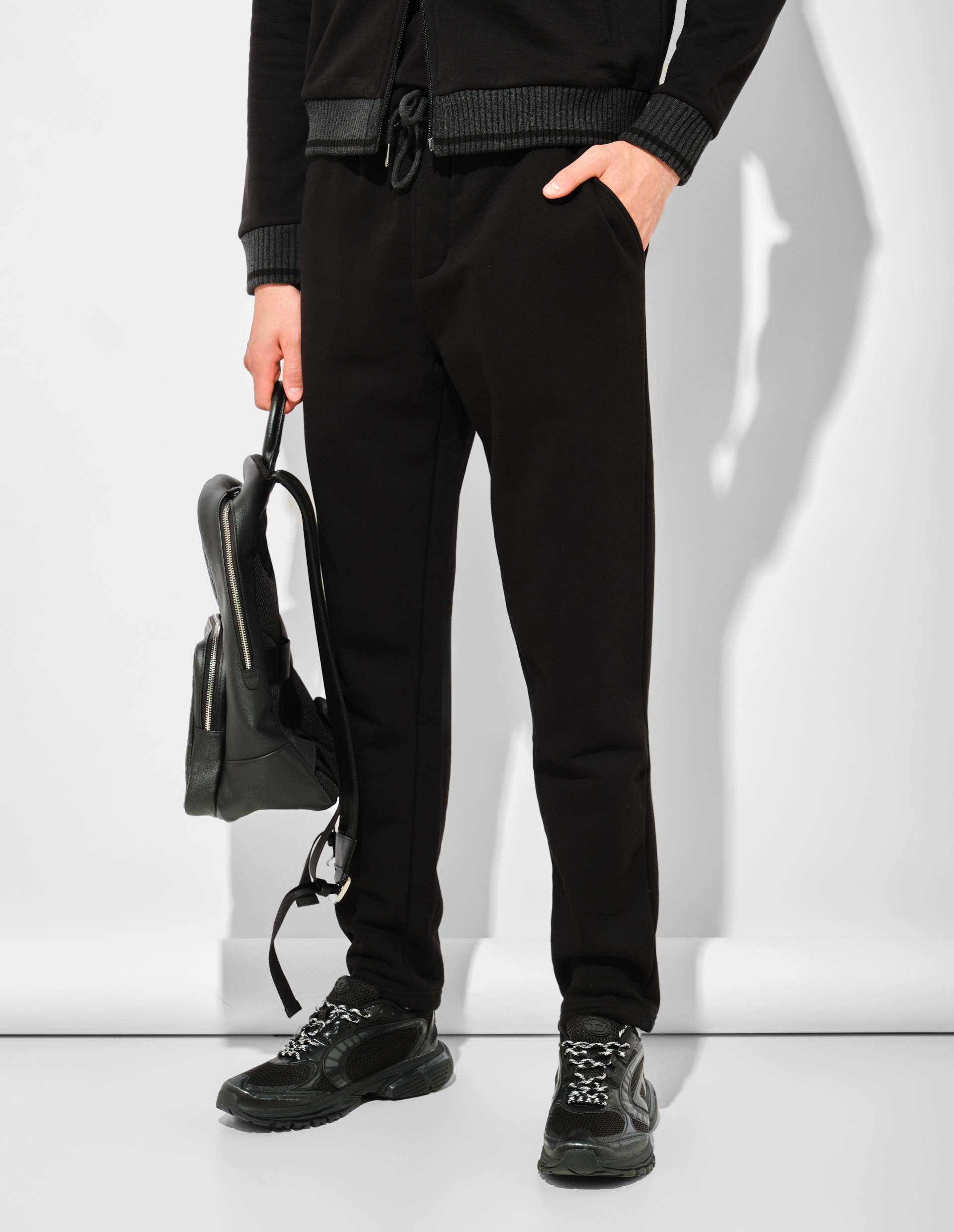 Черные брюки с серым эластичным поясом