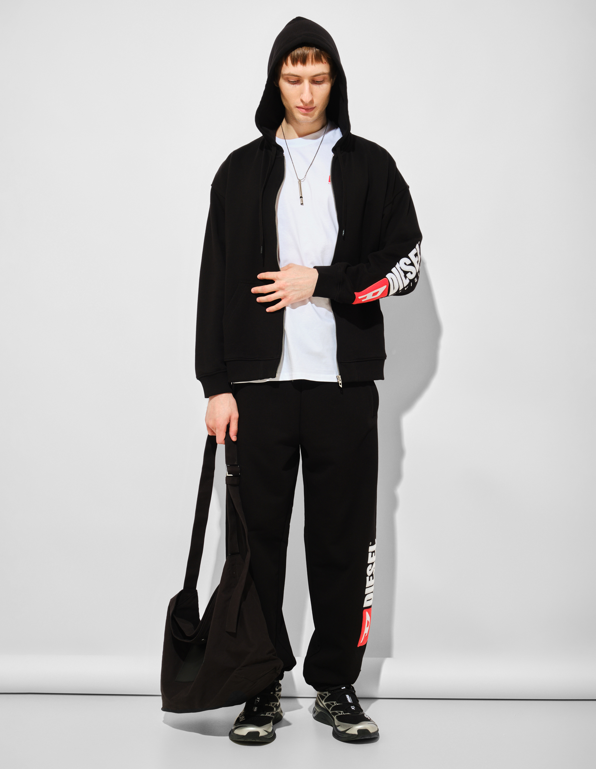 В эру Гленна Мартенса Diesel переосмысливает даже самые простые формы, добавляя им архивированной глубины и современного звучания. Эти брюсы — пример того, как спортвир становится языком улиц, не теряя при этом люксовой составляющей. Носите их с худи и массивными кроссовками для создания тотального спортивного образа или с кожаной курткой и грубыми ботинками для контраста фактур. Благодаря универсальному черному цвету, они легко комбинируются с любой верхней одеждой и обувью.