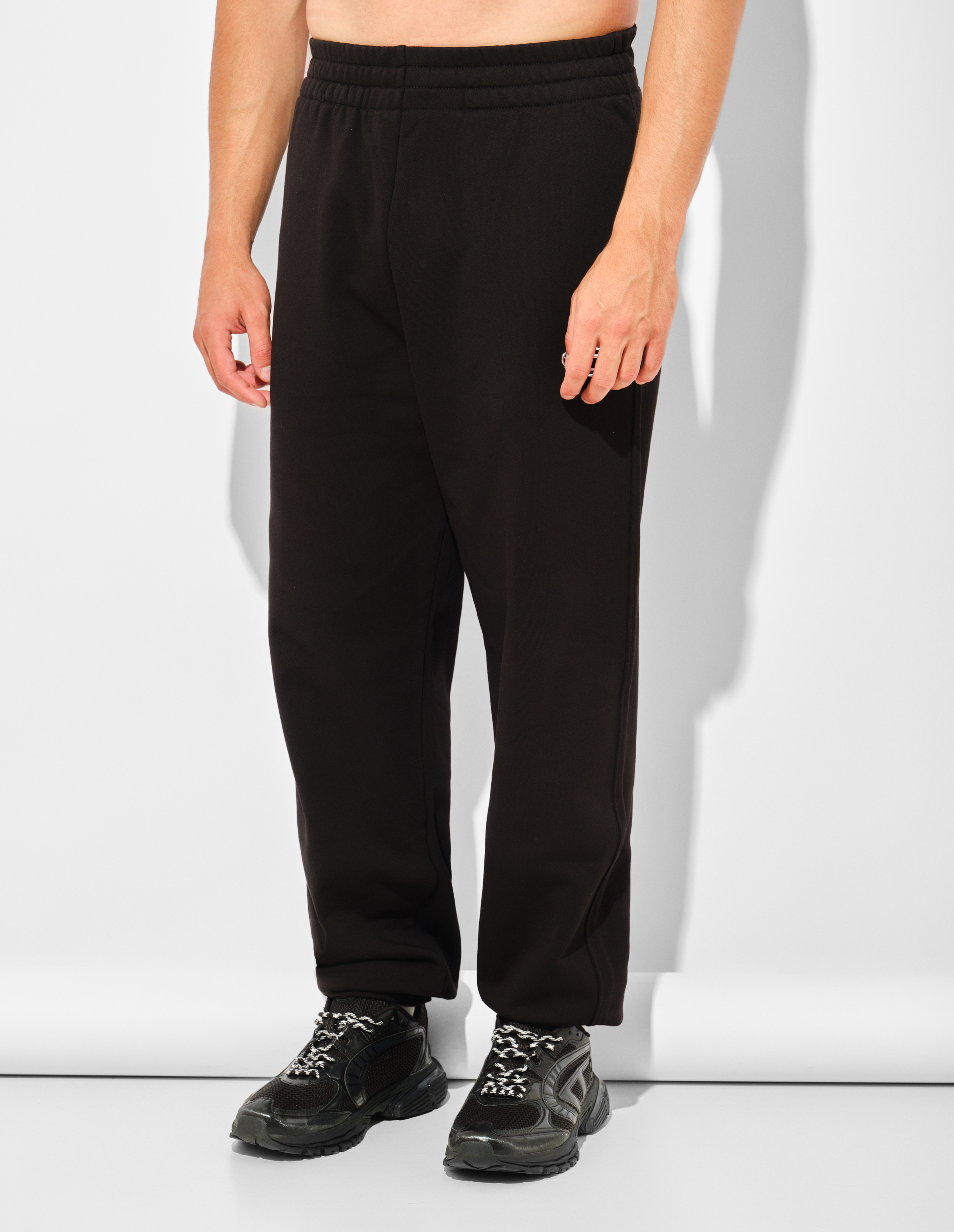 Спортивный шик с металлическим акцентом. Эти брюки-джоггеры от Diesel представляют собой идеальный баланс между уличным комфортом и фирменной бунтарской эстетикой бренда. Глубокий черный цвет выступает безупречной базой, позволяя главному акценту — маленькой серебристой нашивке с логотипом Diesel на левой брючине — говорить самому за себя. Металлический блеск нашивки контрастирует с матовой мягкостью трикотажа, добавляя индустриального шика и современной графичности. Модель выполнена из мягкого, но износостойкого хлопкового трикотажа высшего качества, который дарит ощущение комфорта с первой секунды и сохраняет форму даже после множества стирок. Эластичный пояс и резинки снизу обеспечивают идеальную посадку и создают тот самый актуальный силуэт джоггеров, который сегодня выбирают главные фэшн-инфлюенсеры. Один задний карман добавляет функциональности, не нарушая чистоты линий. В эру Гленна Мартенса Diesel переосмысливает даже самые простые формы, добавляя им архивированной глубины и современного звучания. Эти брюки — пример того, как спортвир становится языком улиц, не теряя при этом люксовой составляющей. Носите их с худи и массивными кроссовками для создания тотального спортивного образа или с футболкой оверсайз и грубыми ботинками для контраста фактур. Благодаря универсальному черному цвету, они легко комбинируются с любой верхней одеждой и обувью.