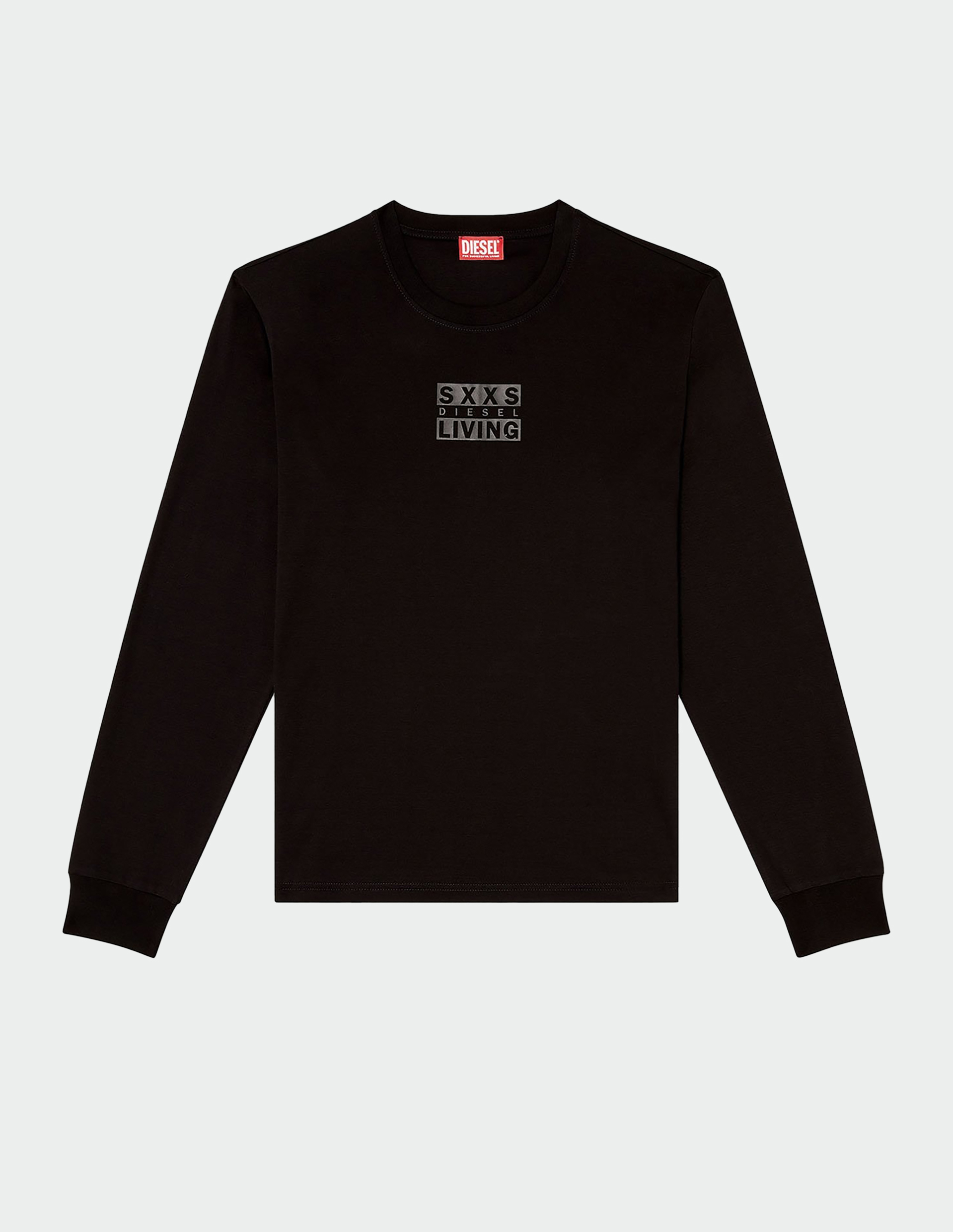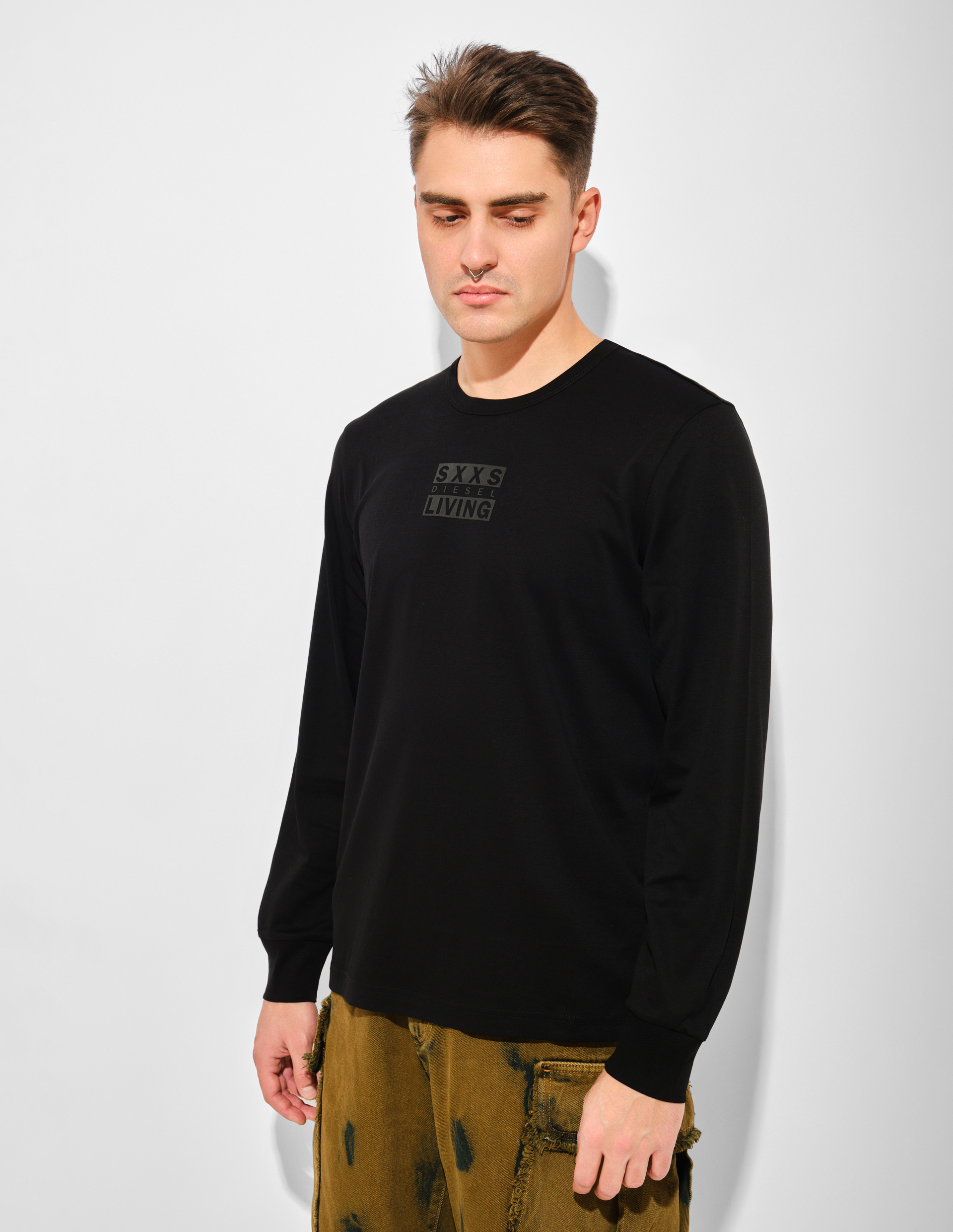 Черный свитшот из плотного хлопка заявляет о новом коде идентичности. Надпись SXXS Diesel Livning на груди бросает вызов лингвистическим нормам — намеренная опечатка в духе бренда, где несовершенство становится формой протеста против шаблонного мышления. Материал из стопроцентного хлопка и минималистичный круглый вырез создают чистый холст для провокации. Носите его с рваными джинсами или кожаными брюками — это не просто одежда, а манифест для тех, кто создает правила заново.