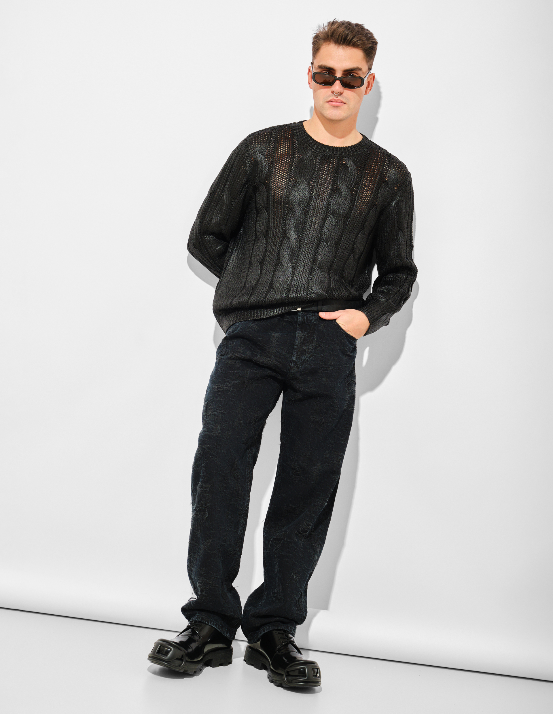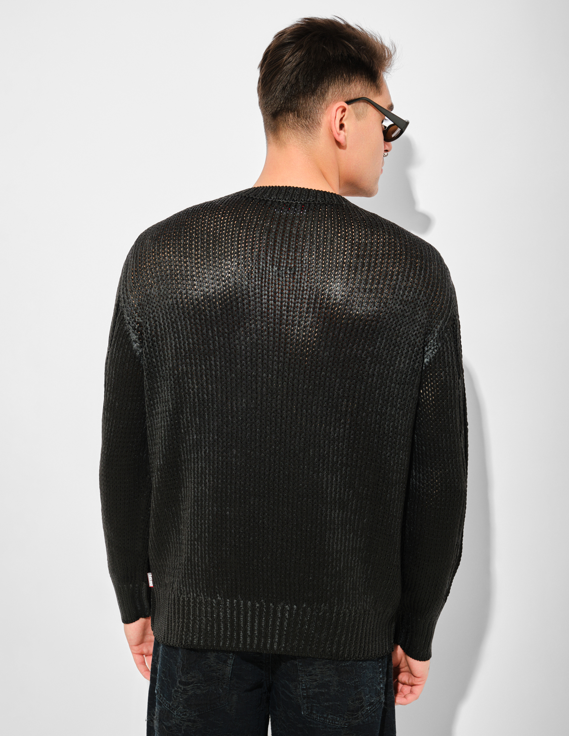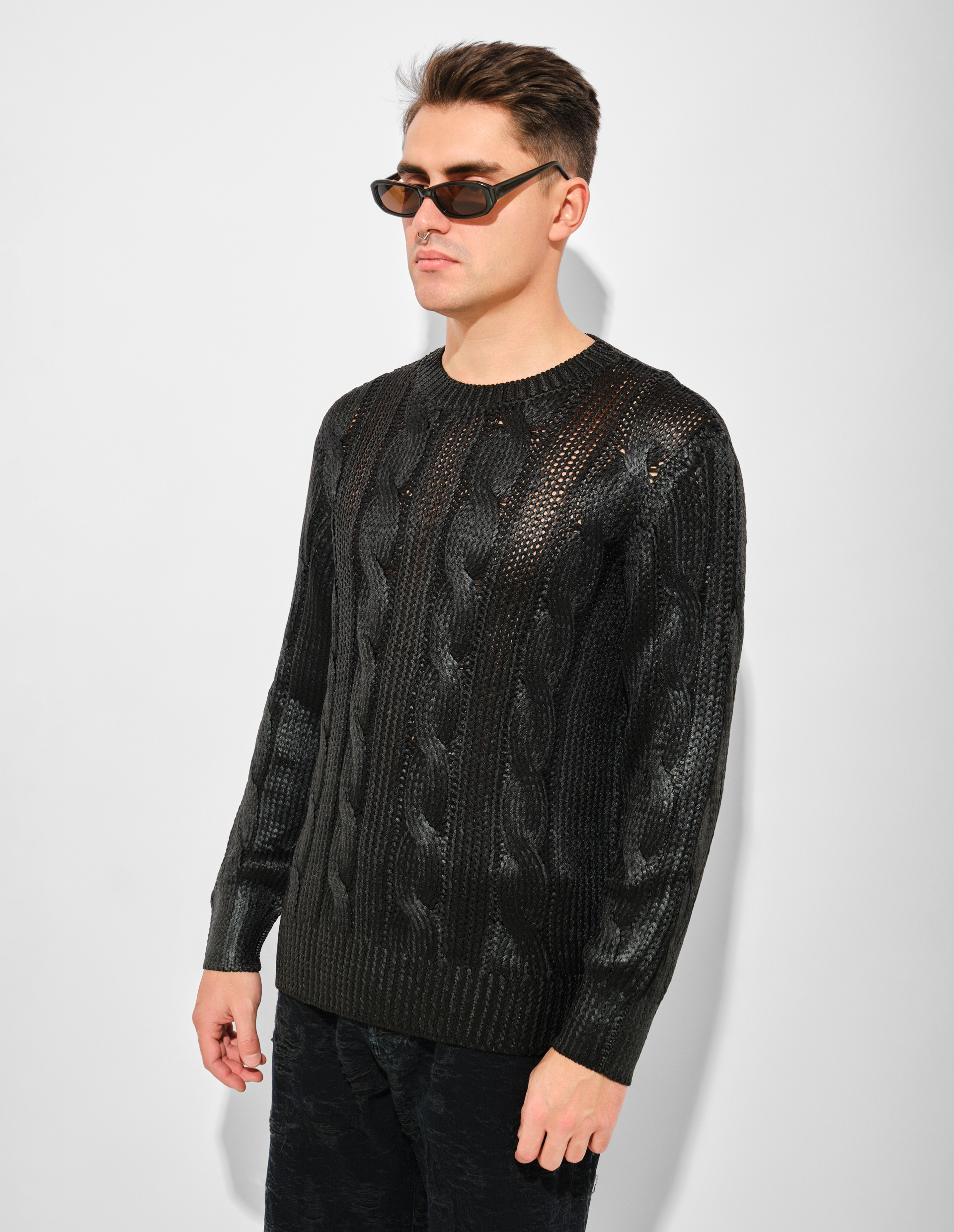 Элегантный свитер от Diesel, переосмысливающий классику, сочетает традиции и инновации. Рельефные косы на полотне и рукавах, обработанные термопрессованием, приобретают неожиданный глянцевый блеск, создавая контраст между наследием и современными технологиями. Материал с содержанием 66% переработанного полиэстера демонстрирует ответственный подход к производству, сокращая использование первичных ресурсов. Модель отражает философию бренда, где уважение к истории не мешает смелым экспериментам, а экологичность становится неотъемлемой частью стиля.