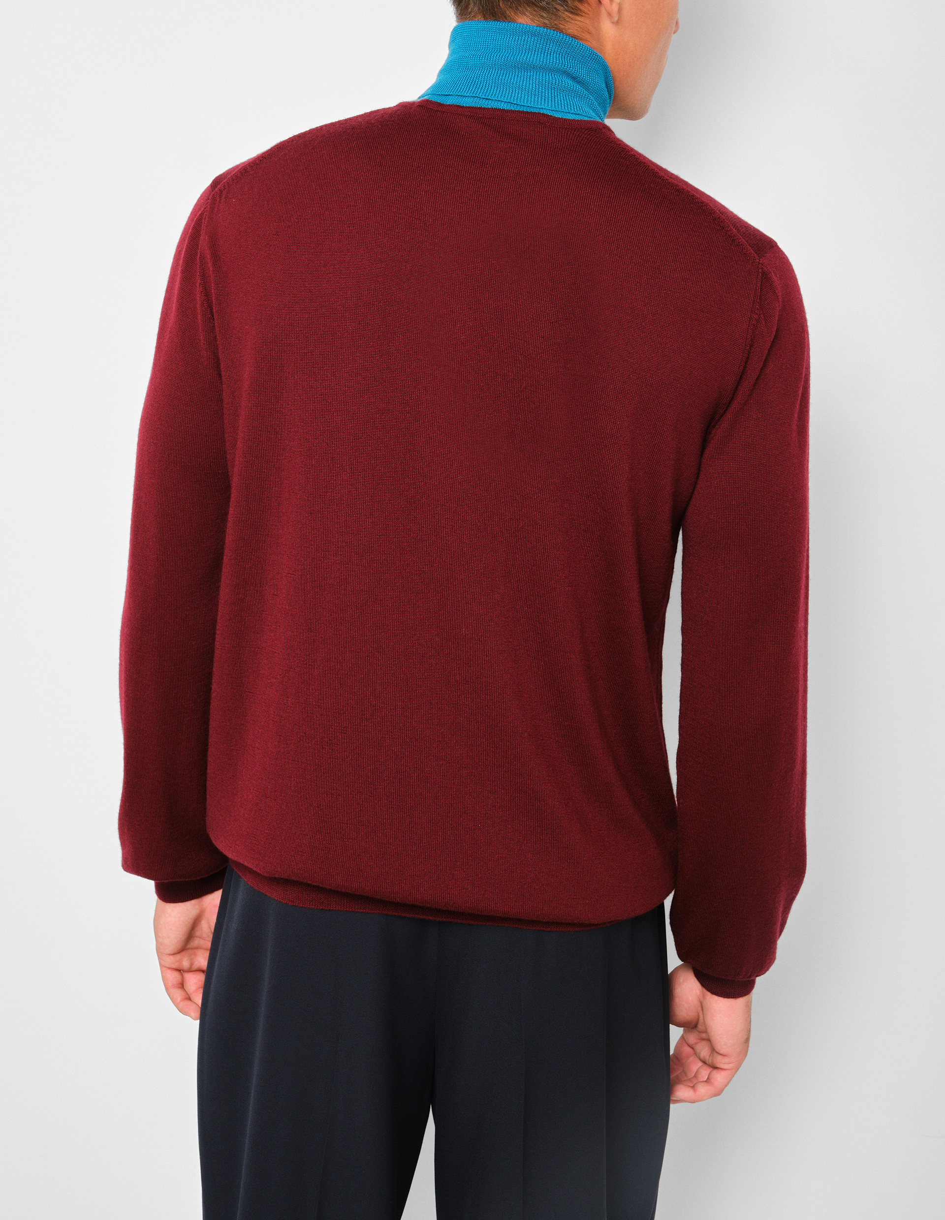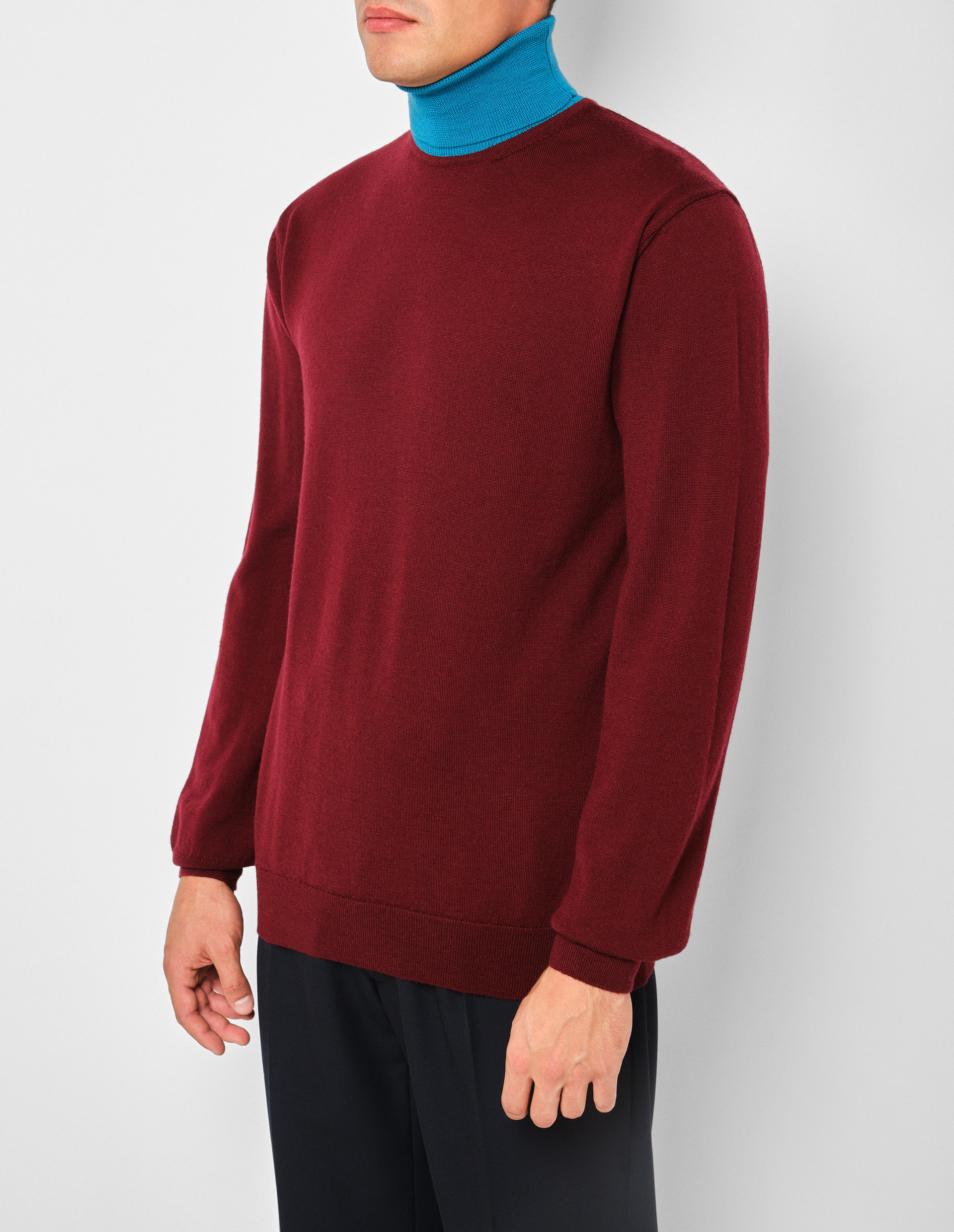 Коричневый джемпер из 100% шерсти с высоким голубым воротом