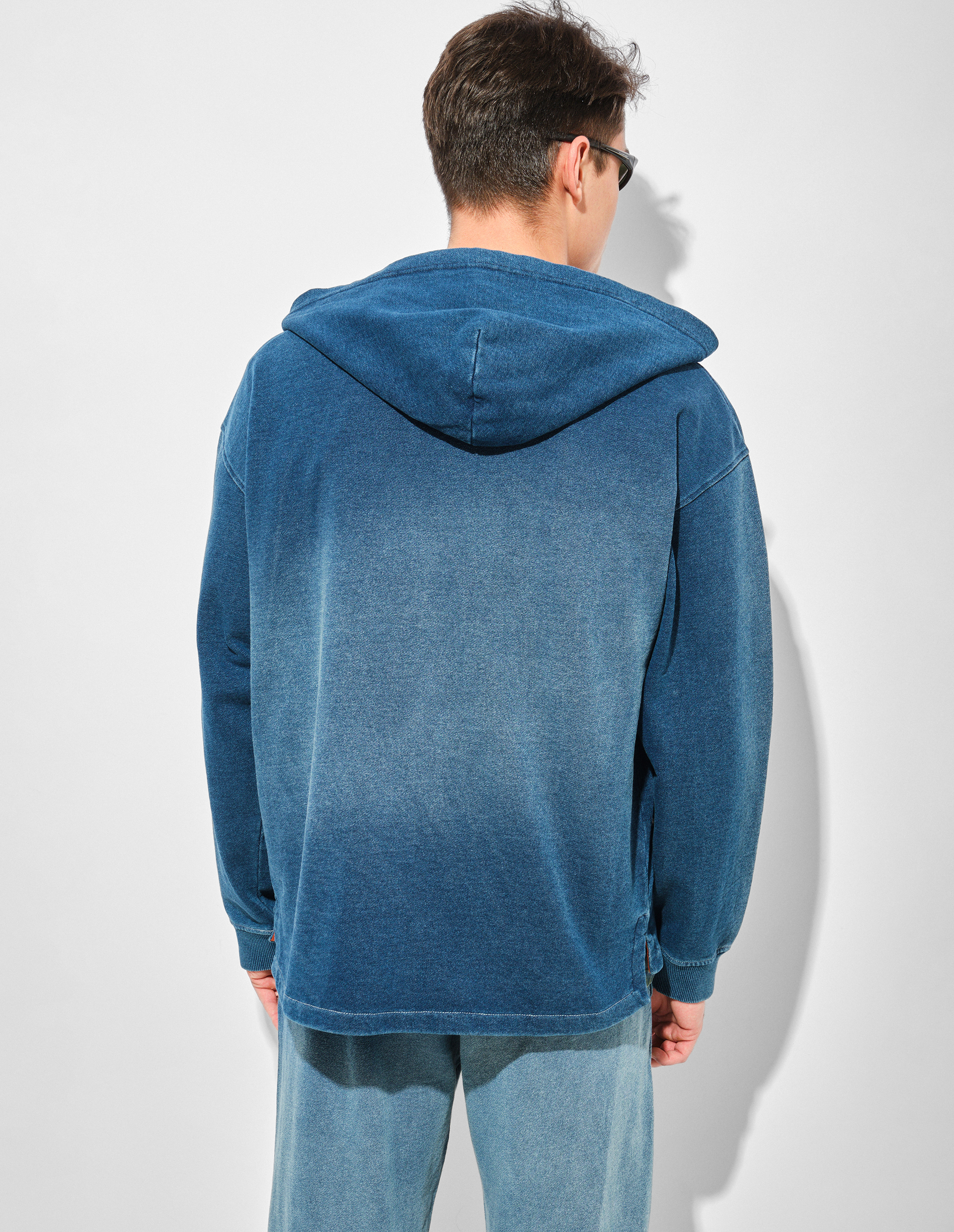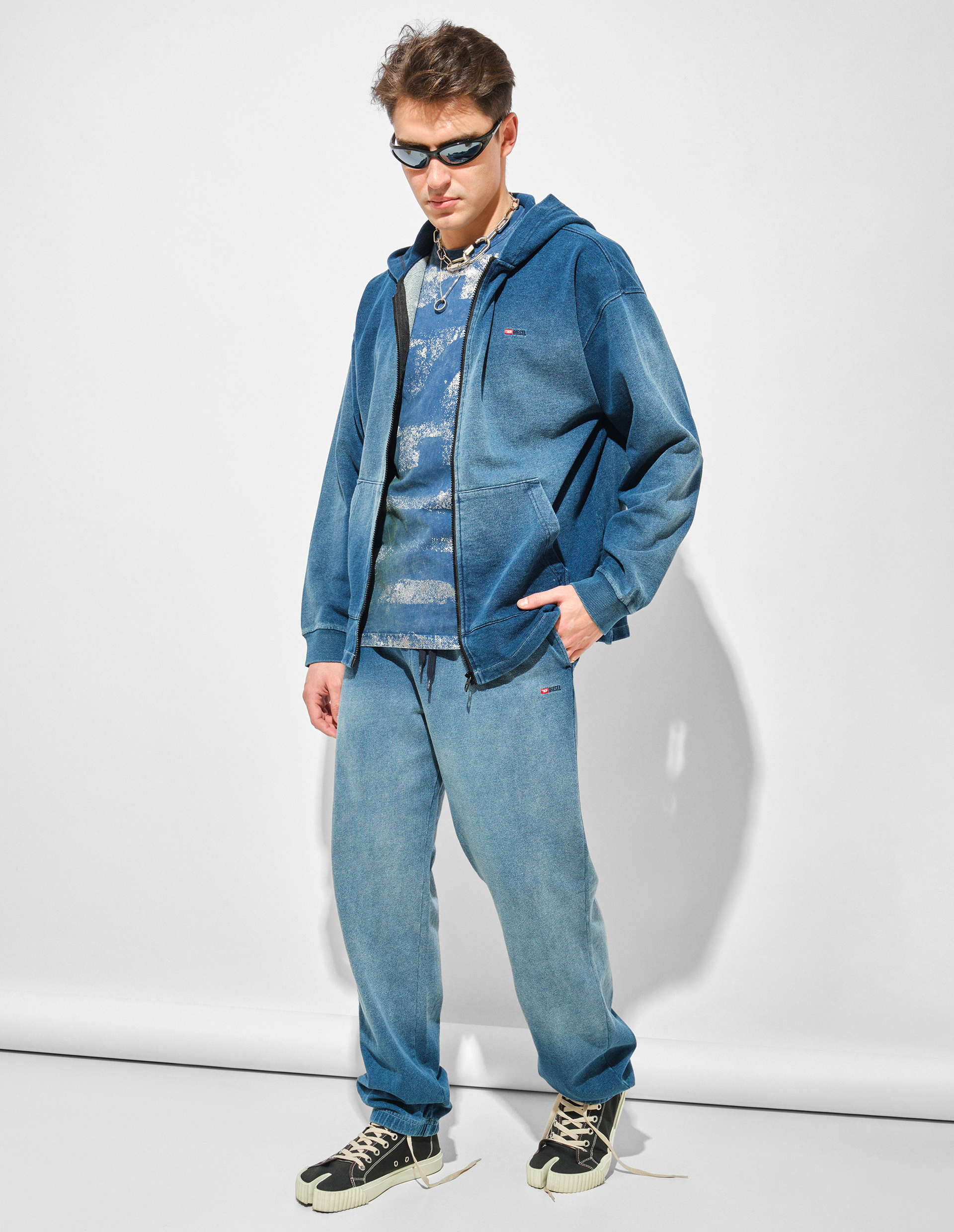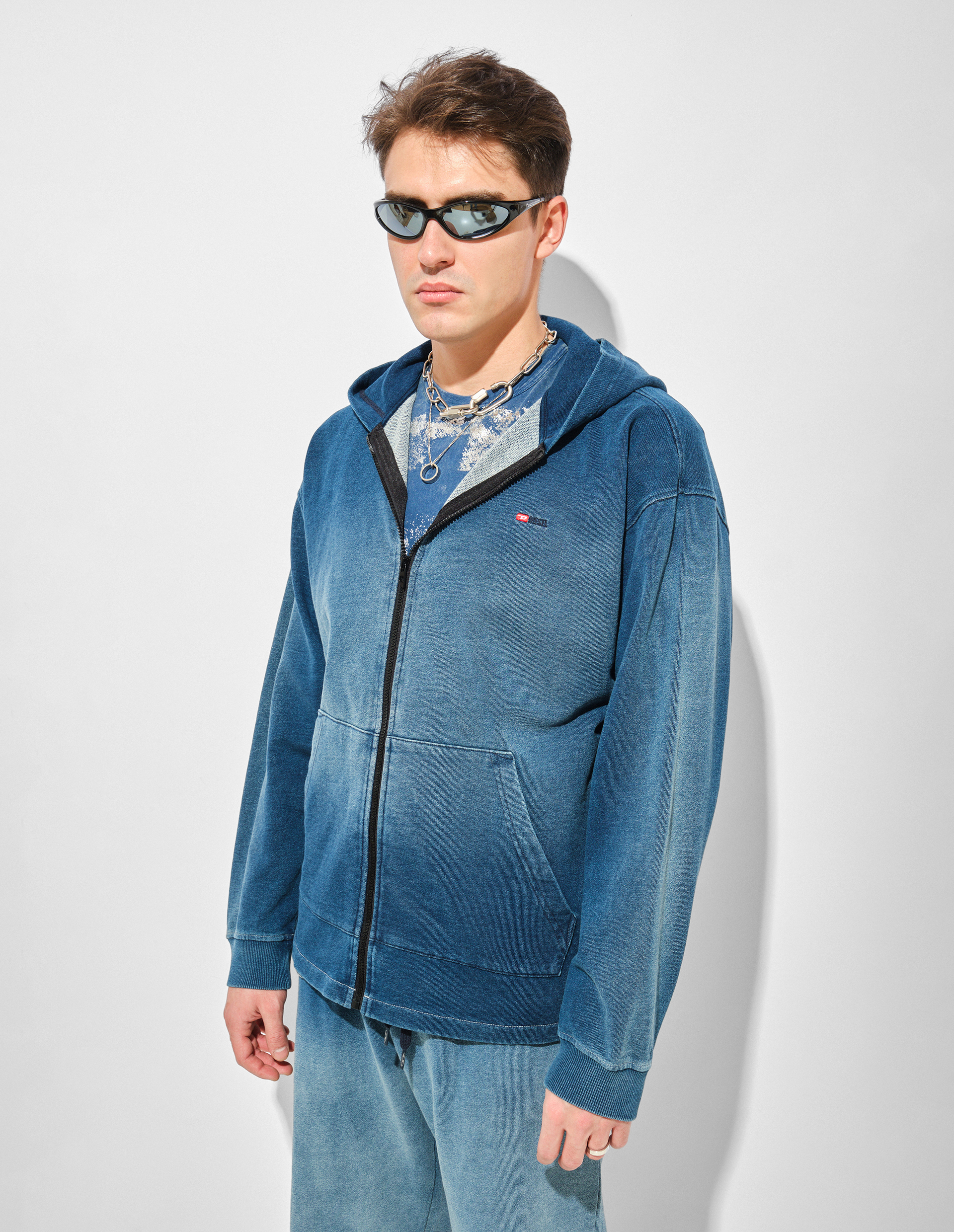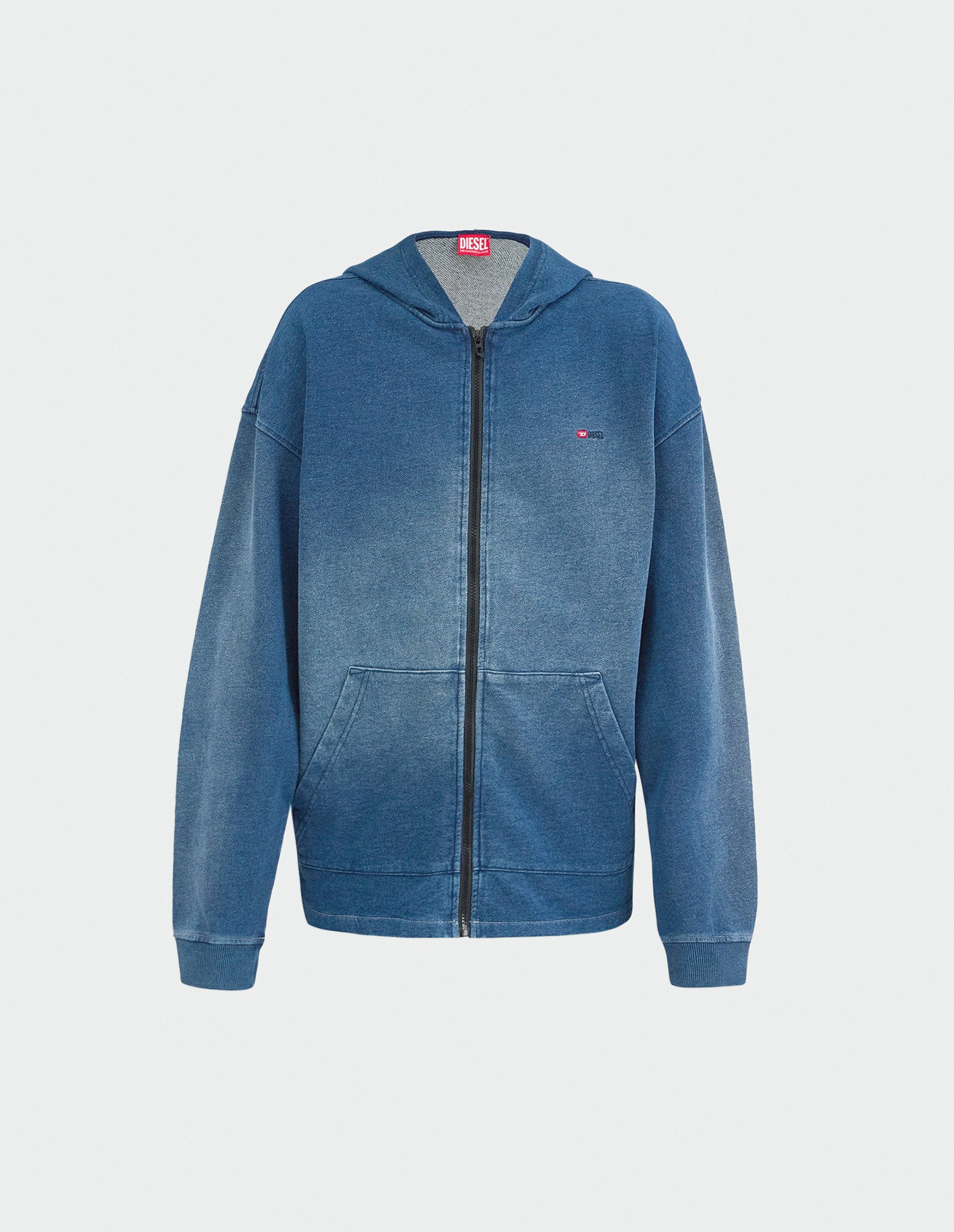 Худи S-BLAXT подтверждает решительность Diesel в нанесении принтов и градиентов: ткань имеет потертый вид, напоминающий выстиранный деним. Небольшой вышитый логотип украшает переднюю часть, дополненную центральной молнией и карманом-кенгуру. Толстовка изготовлена из хлопкового трикотажа терри высочайшего качества, сочетающего в себе экологичность, этичный подход бренда к производству и потреблению сырья. Этот футер также характеризуется износостойкостью, высокой пористостью и, как следствие, прекрасным воздухообменом и гигроскопичностью.