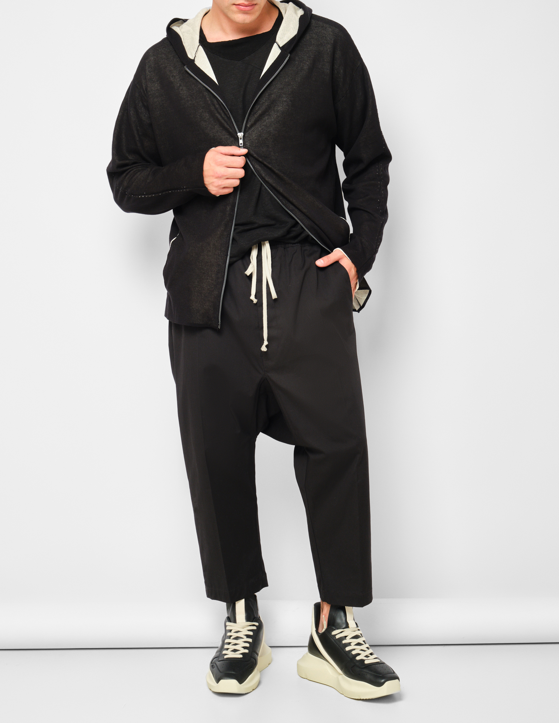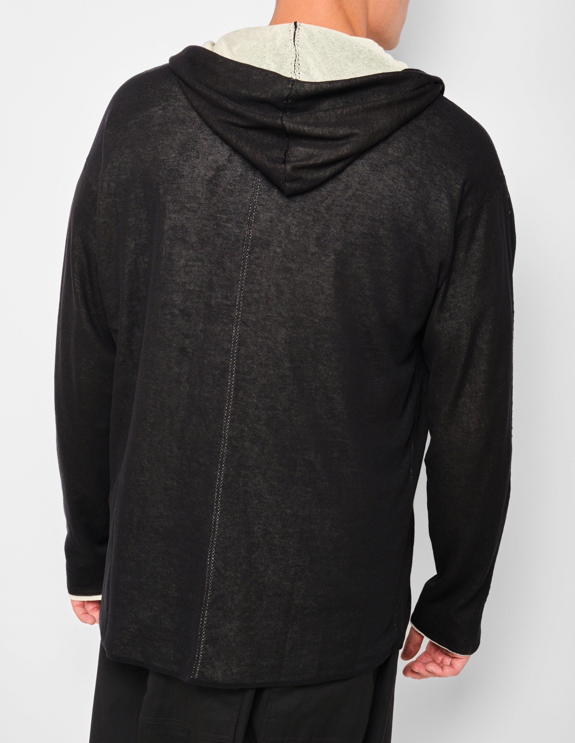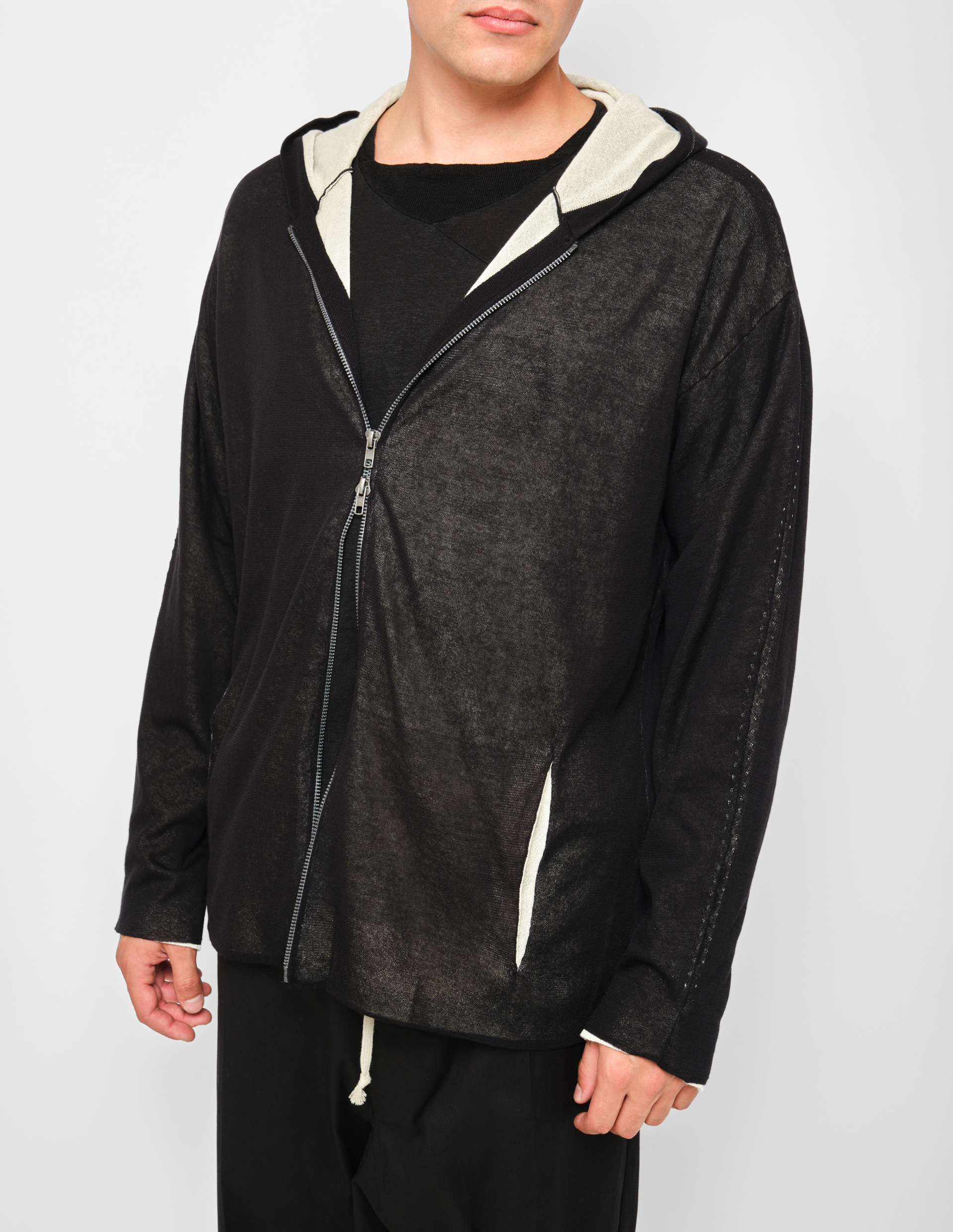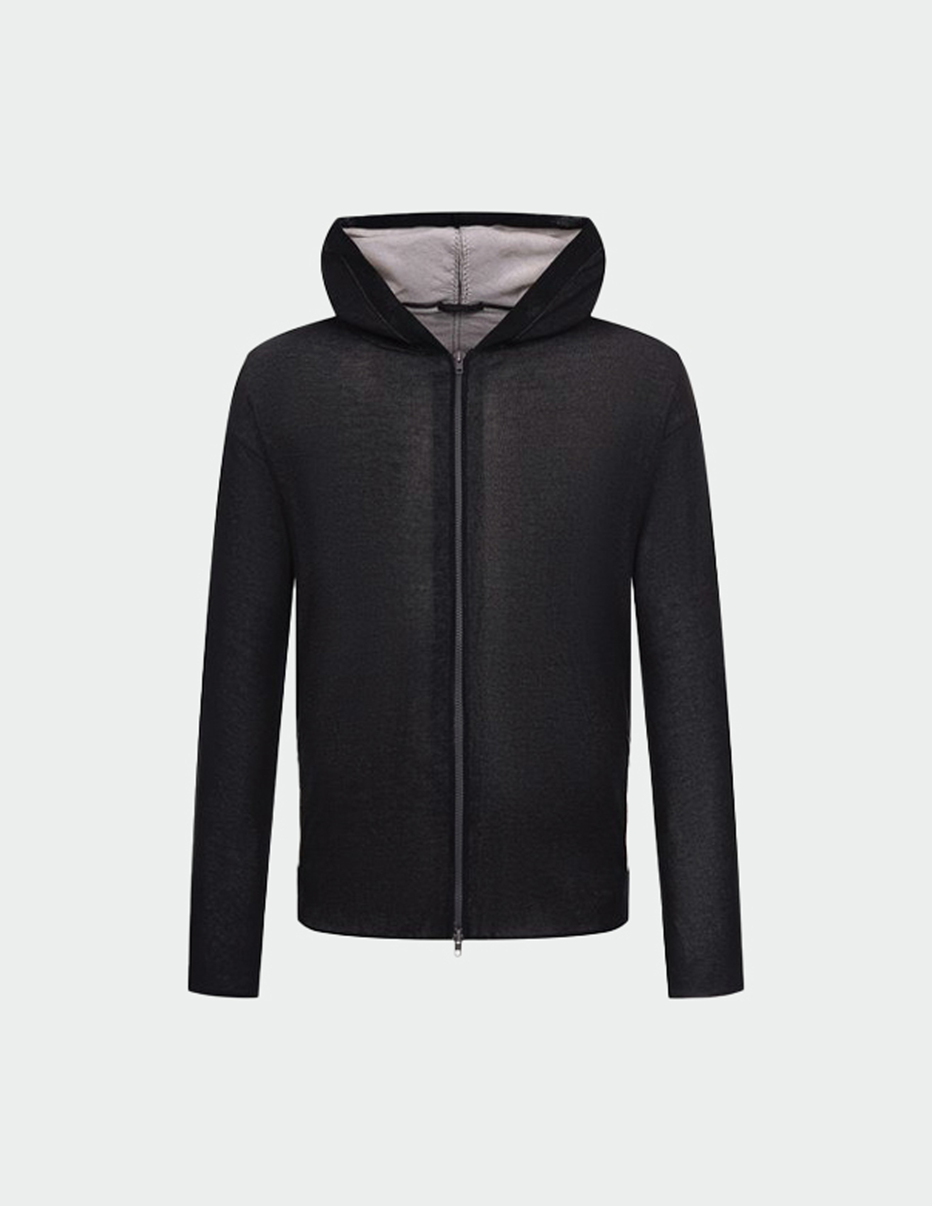 Худи Transit — эксперимент с оптическими иллюзиями и тактильными контрастами. Верхний слой из полупрозрачного хлопкового трикотажа, усиленного нейлоном, обнажает подкладку молочного оттенка, создавая эффект многослойности. Эта игра просвечивающих текстур — фирменный прием бренда, превращающий привычный крой в визуальную головоломку. Капюшон и центральный рельефный шов на спинке подчеркивают скульптурность силуэта, а встречная молния добавляет урбанистической резкости. Здесь каждый стежок напоминает об итальянских мастерах, которые превращают экспериментальные идеи в вещи для повседневных открытий.