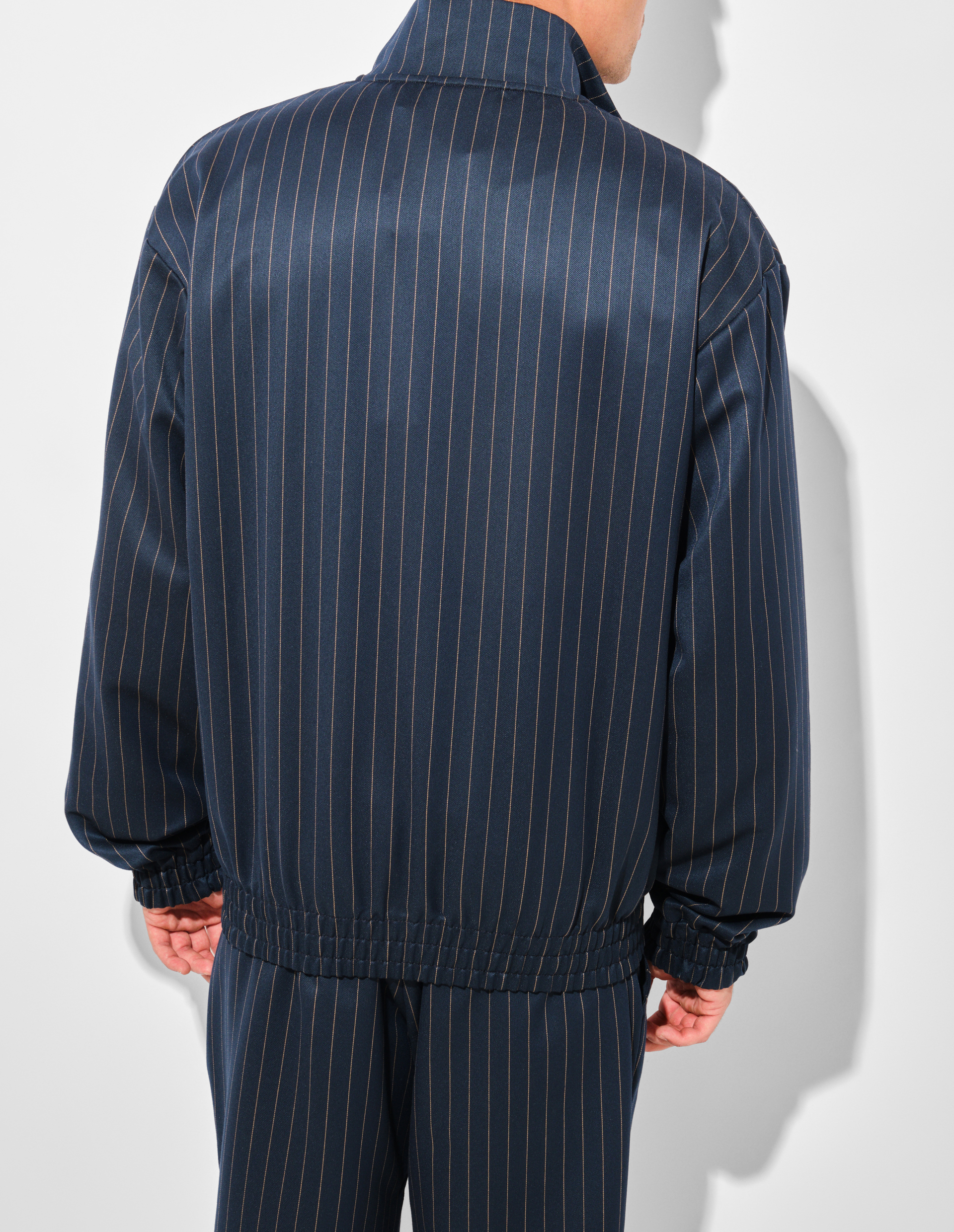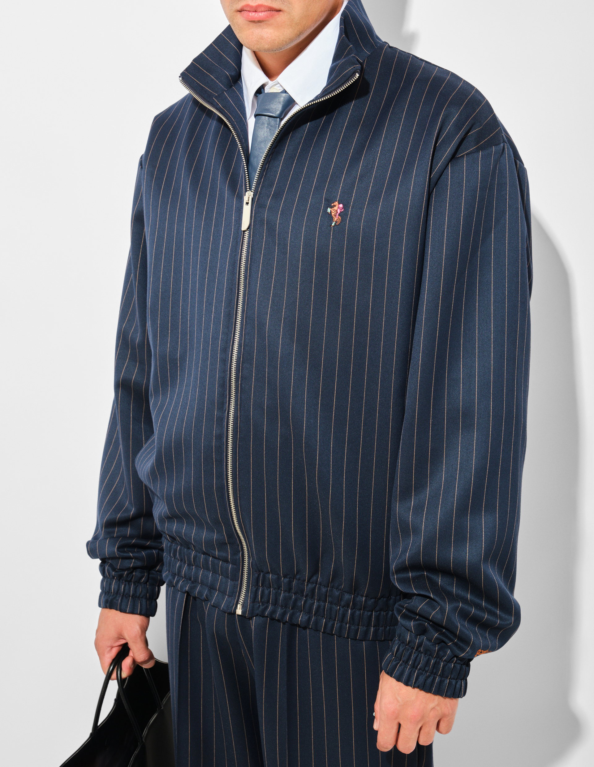 Синий в коричневую полоску джемпер может стать любимчиком для неспешных прогулок в холодный сезон. Его расслабленный стиль и состав из натурального органического хлопка дают уверенность и полный комфорт в движении. Высокий воротник на молнии под горло обеспечивает дополнительную защиту в непогоду, а также может стать стильной и цепляющей деталью в образе. Стилизуйте его с синими в коричневую полоску брюками бренда.