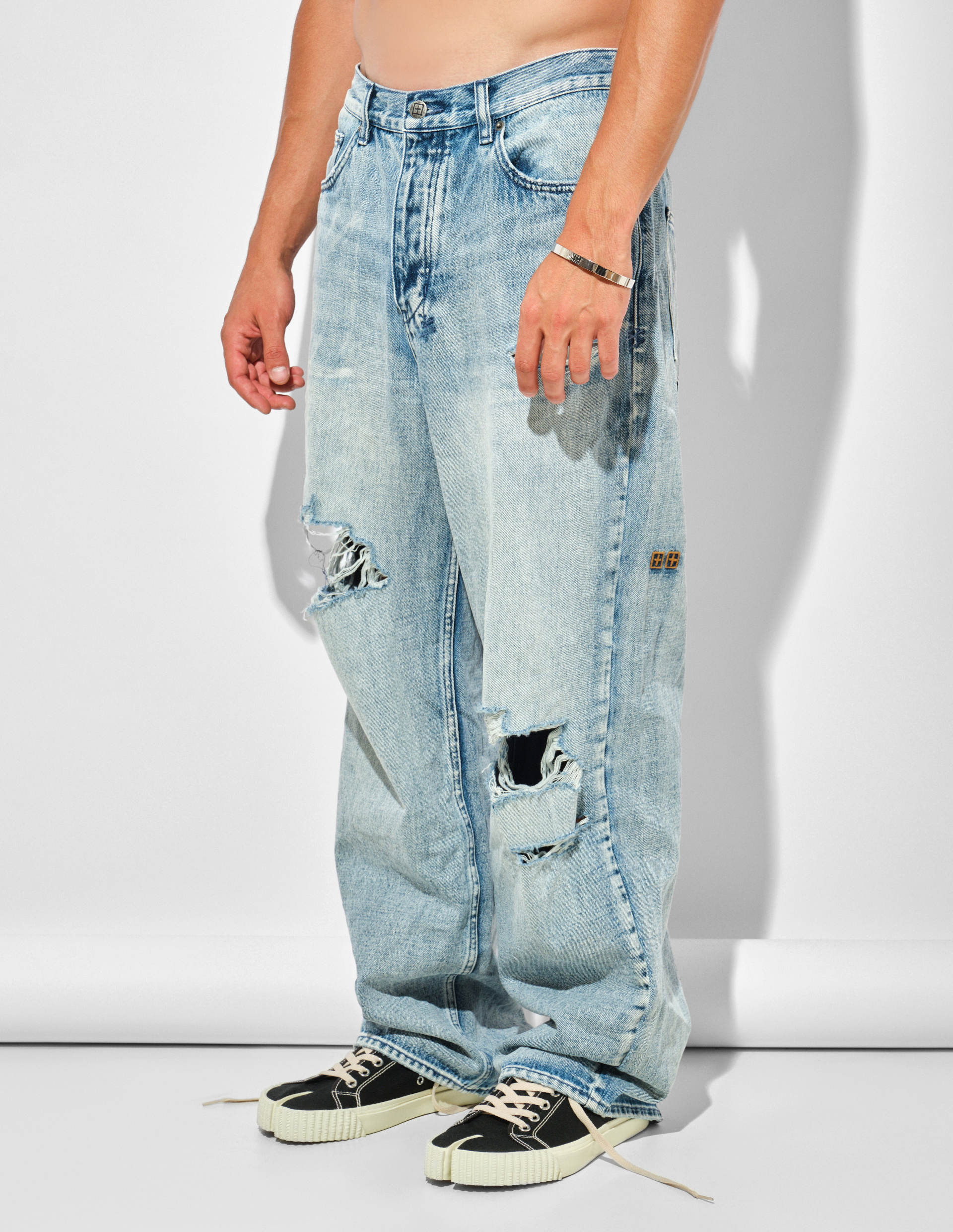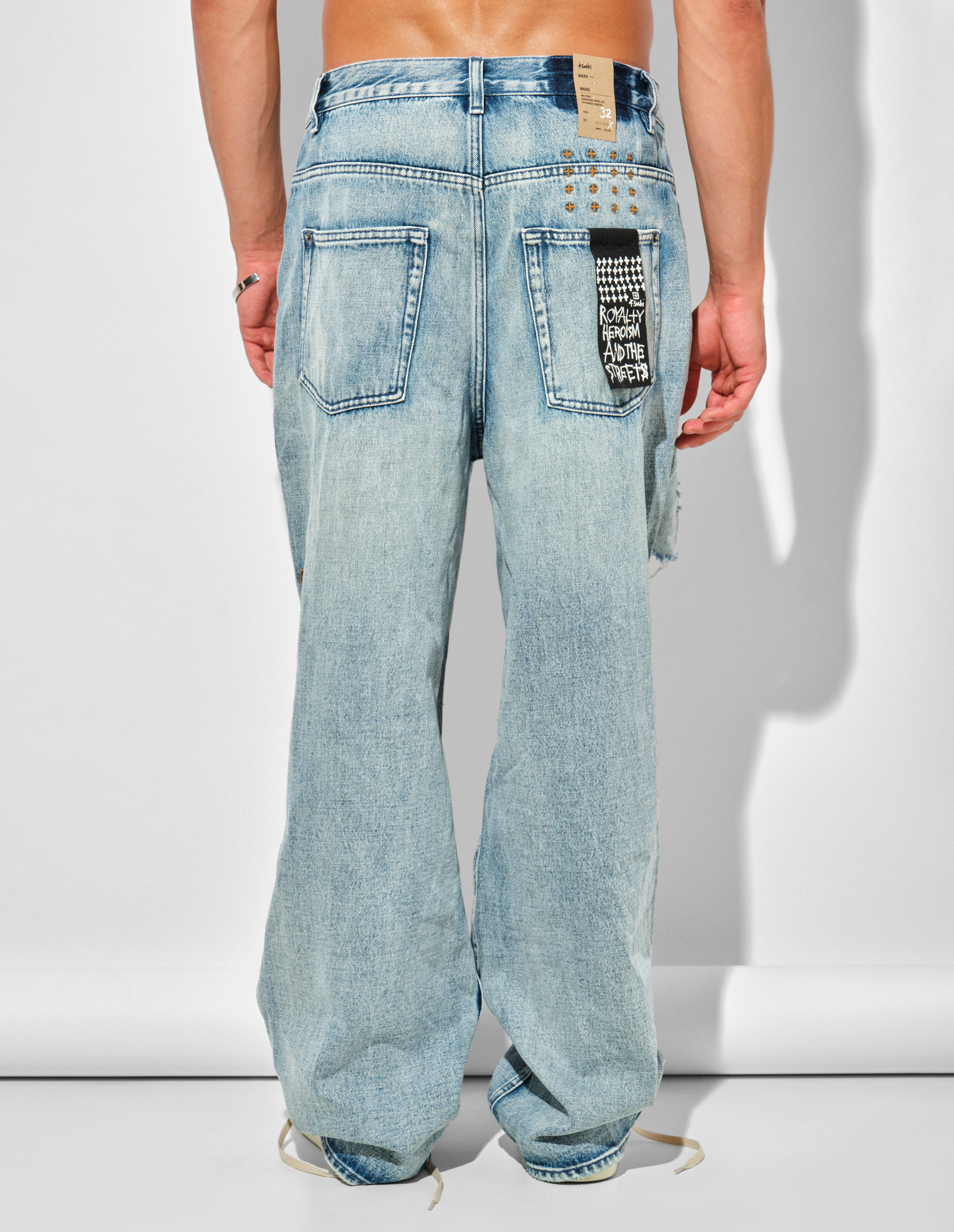 Это максимально деконструированные прямые джинсы вдохновлены эстетикой гранжа, вайбом разгулов и удовольствием быть бунтарем — все, что заложено в ДНК KSUBI. Данная модель относится к линейке Anti K с винтажной посадкой, силуэтом relaxed straight с прямыми мешковатыми штанинами и непринужденным, рваным внешним видом, словно вы их носите уже очень давно. Изготовлены из денима на основе плотного хлопка премиум-класса и завершены культовой t-box-вышивкой и съемной биркой-флагом на заднем кармане с надписью ‘Royalty, Heroism & The Streets’.