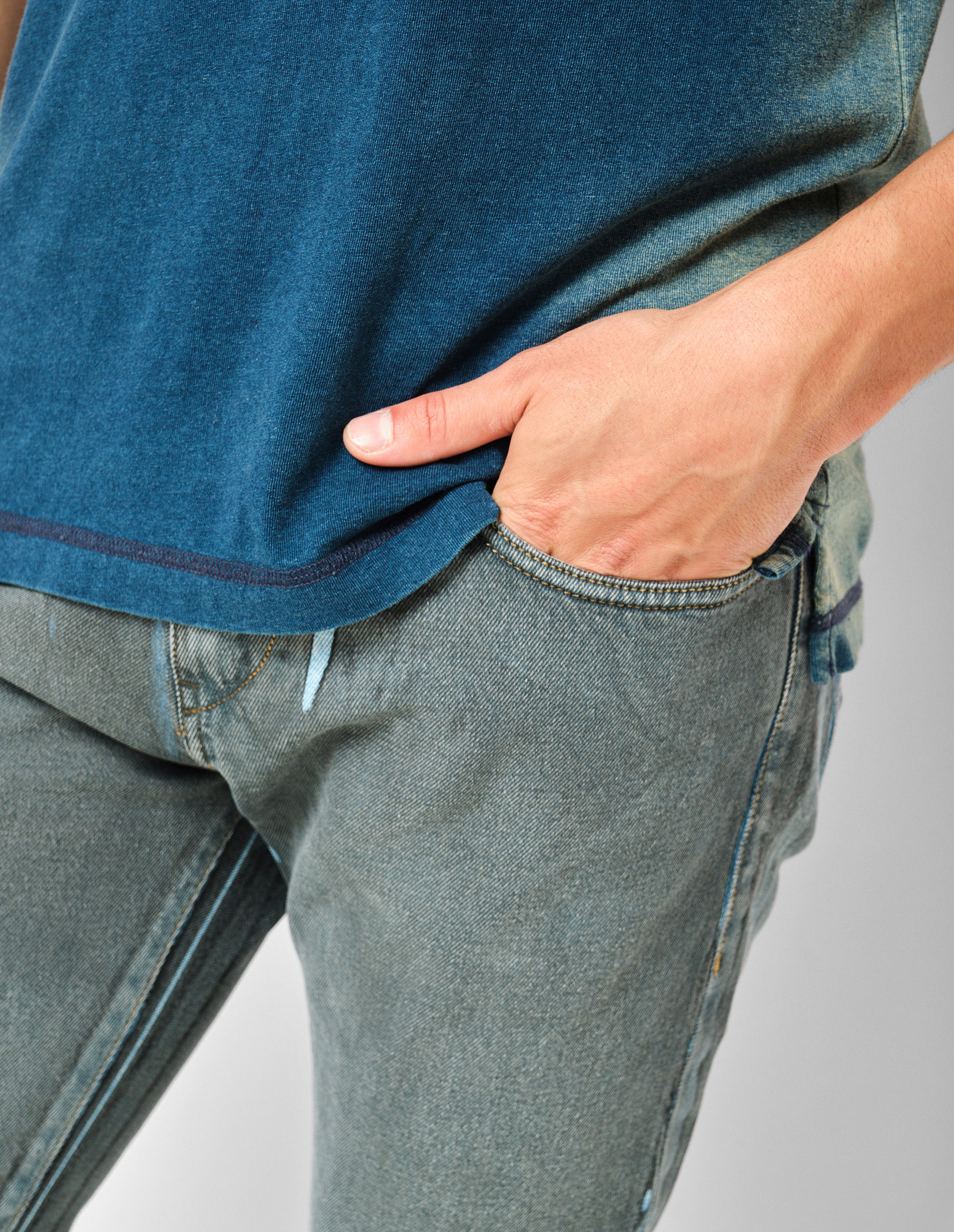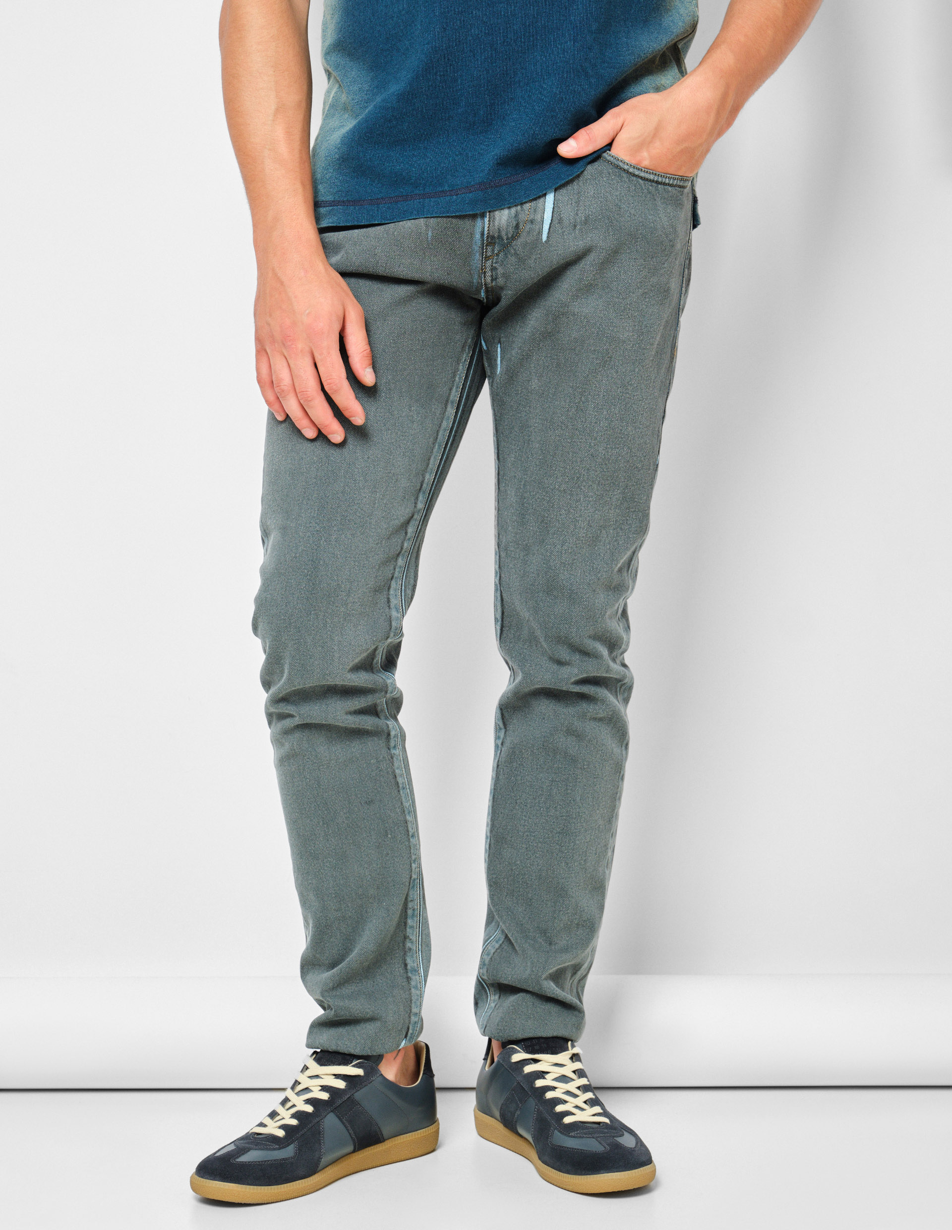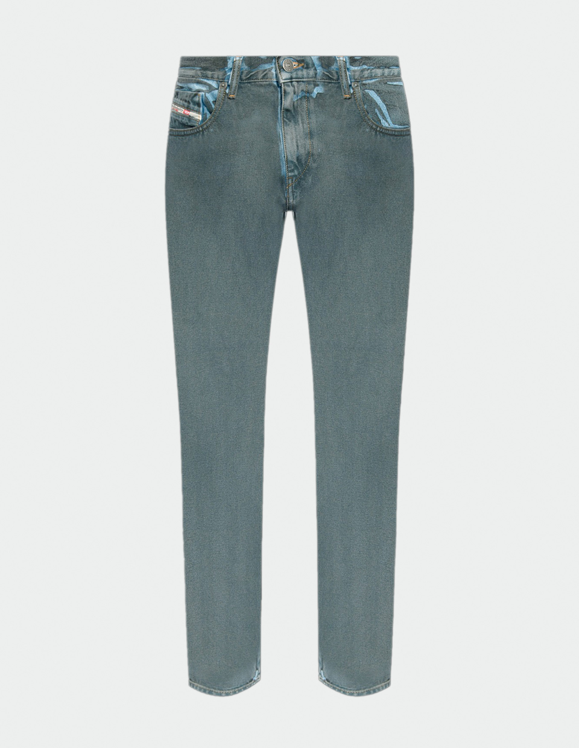 Уравновешенный стиль, лаконичная конструкция и практичные детали: эти базовые джинсы удобного силуэта станут универсалами в вашей коллекции брюк. Характеризуются слегка зауженным кроем, пятью карманами, ширинкой на молнии. Изготовлены из 100% премиального хлопка. Diesel славится своими принтами с элементами авангарда и смелыми цветовыми решениями, поэтому данная модель имеет необычную расцветку: серое покрытие с винтажным эффектом на синей основе. Этого достигли благодаря высокотехнологичному процессу, включающему ручную шлифовку ткани, что придает каждому изделию уникальный вид.