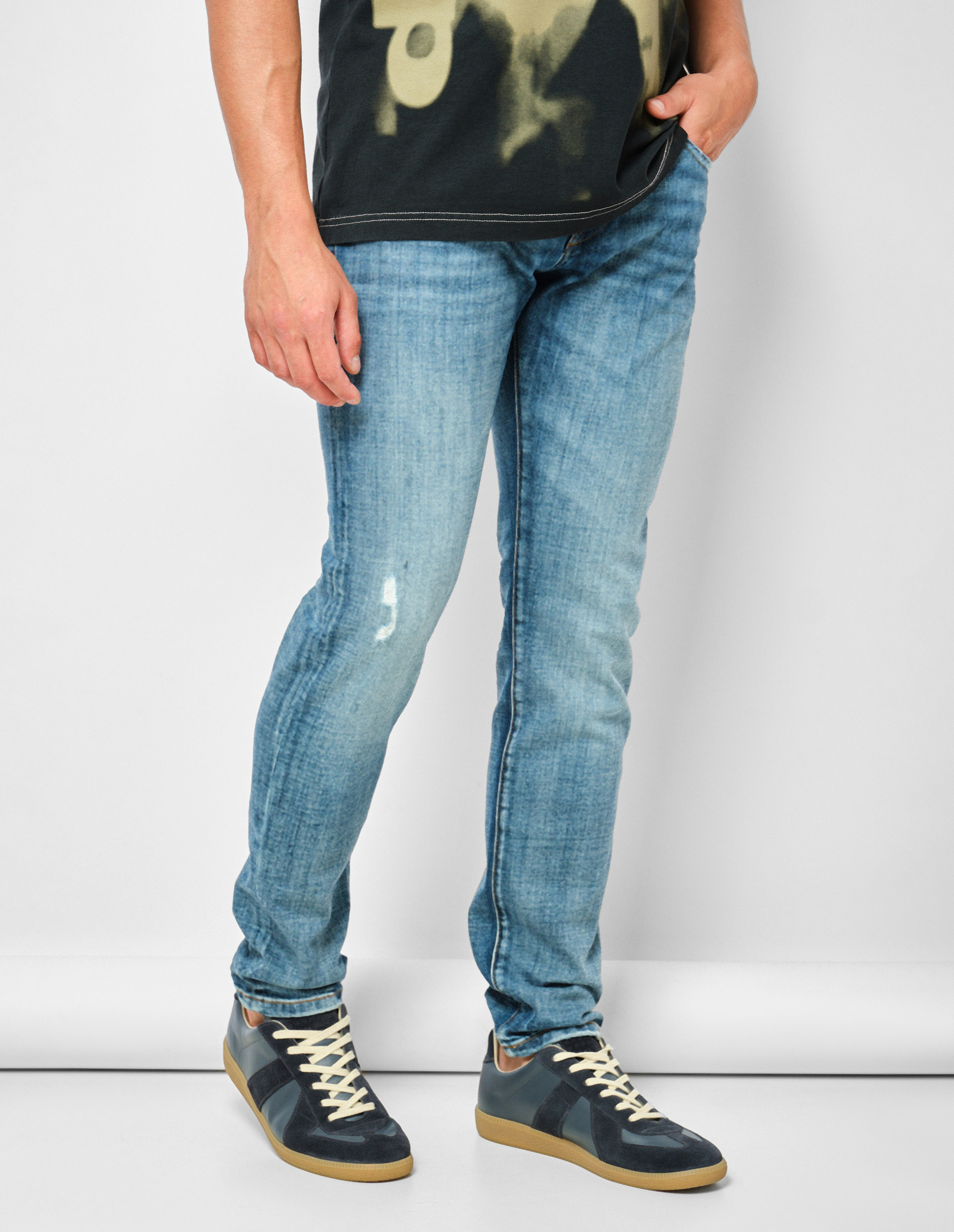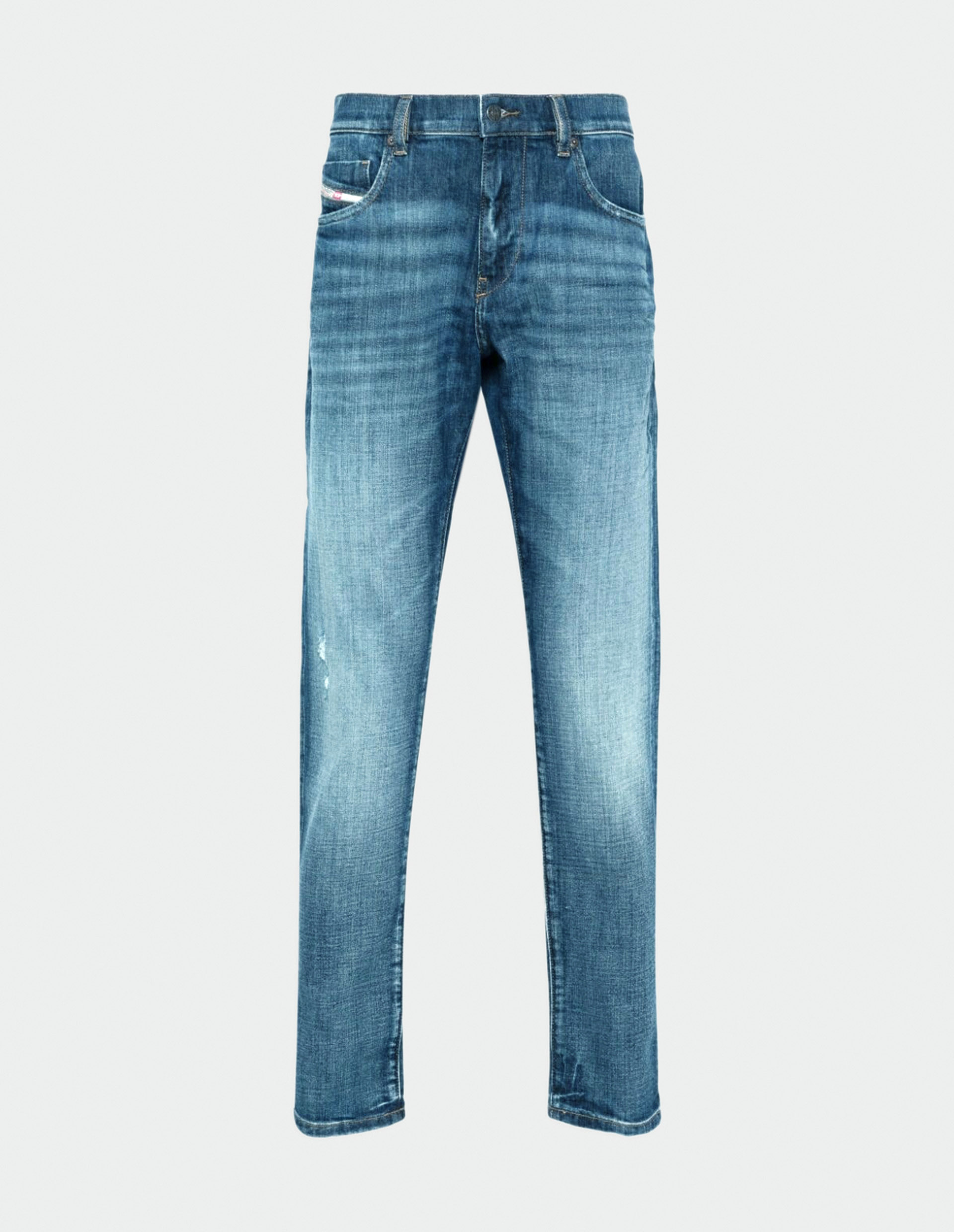 Уравновешенный стиль, лаконичная конструкция и практичные детали: эти базовые джинсы удобного силуэта станут универсалами в вашей коллекции брюк. Характеризуются слегка зауженным кроем, пятью карманами, ширинкой на молнии. Изготовлены из органического хлопка с добавлением небольшого процента эластана, отвечающего за безупречную посадку и комфортное ношение. Модель имеет средне-синий оттенок с потертостями, которые с годами приобретают все более естественный вид, что является частью ДНК Diesel, демонстрируя эстетику его наследия и современные детали.