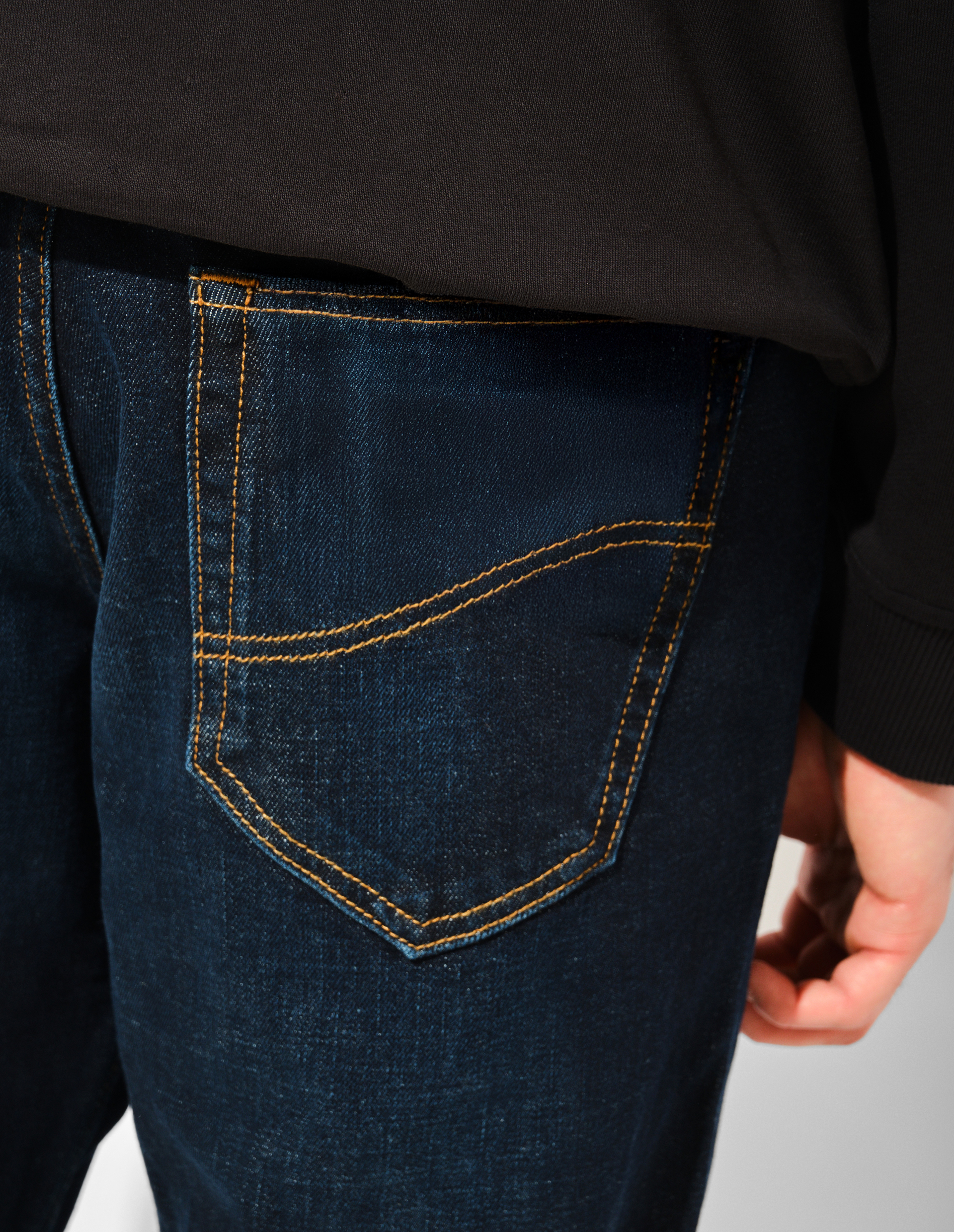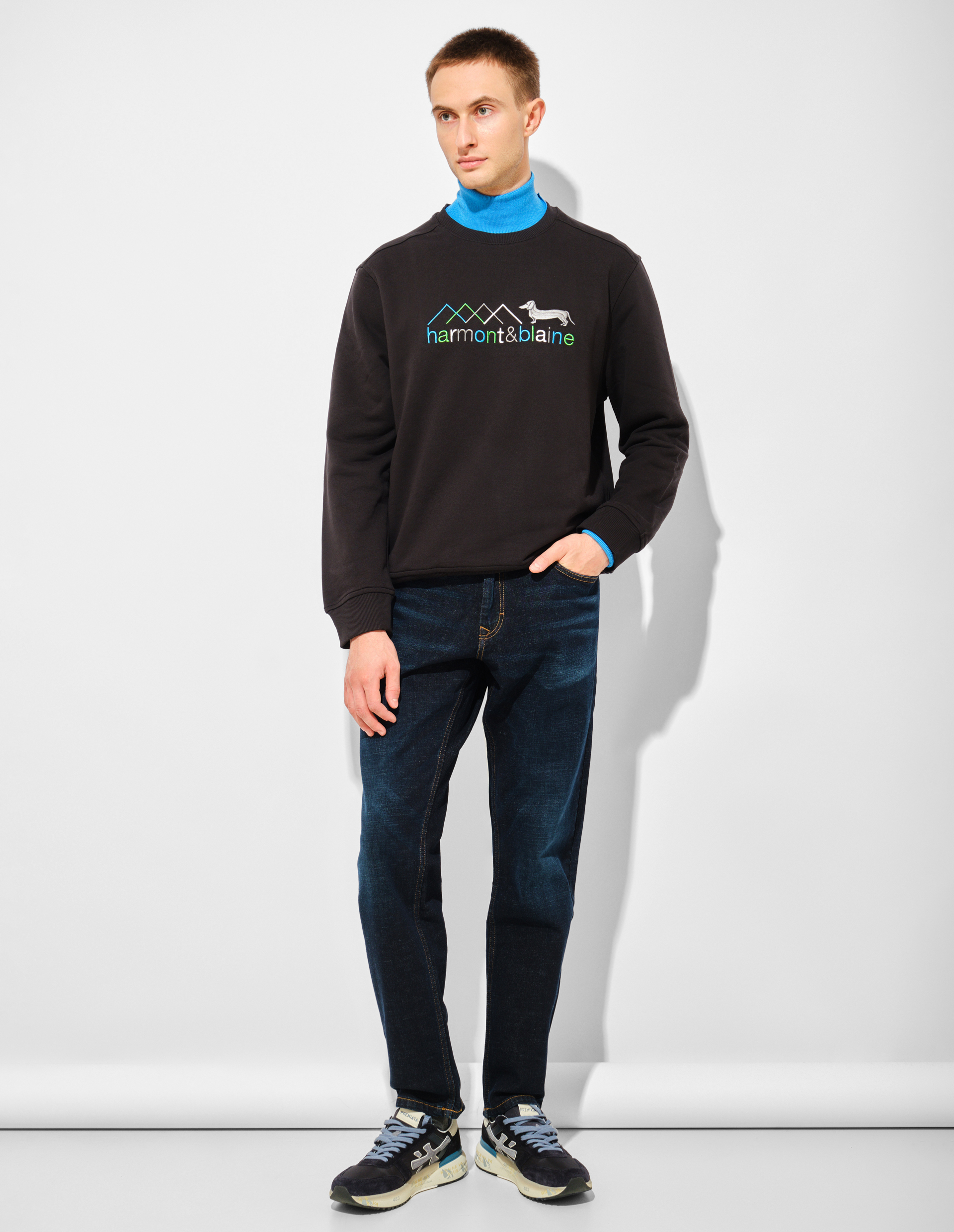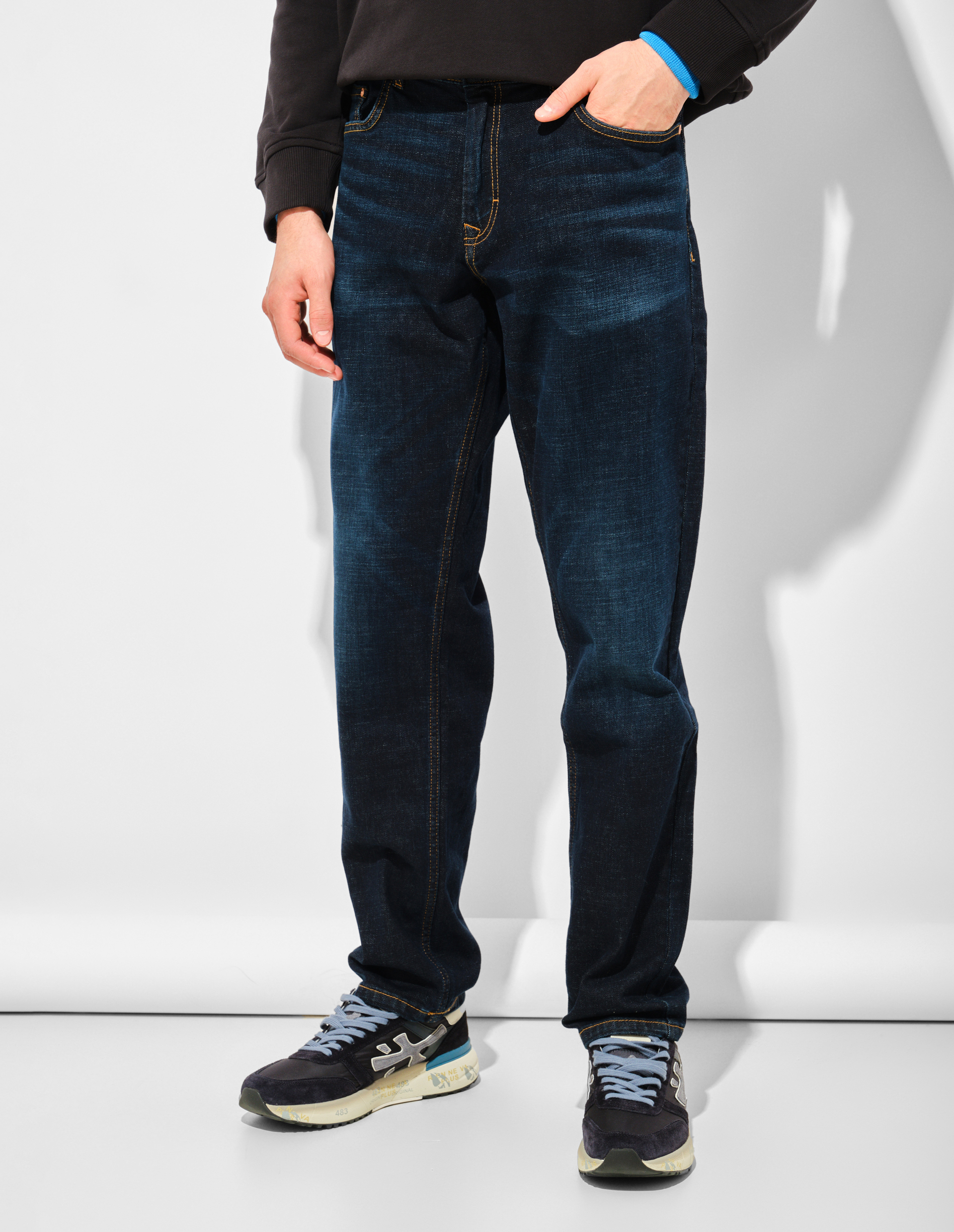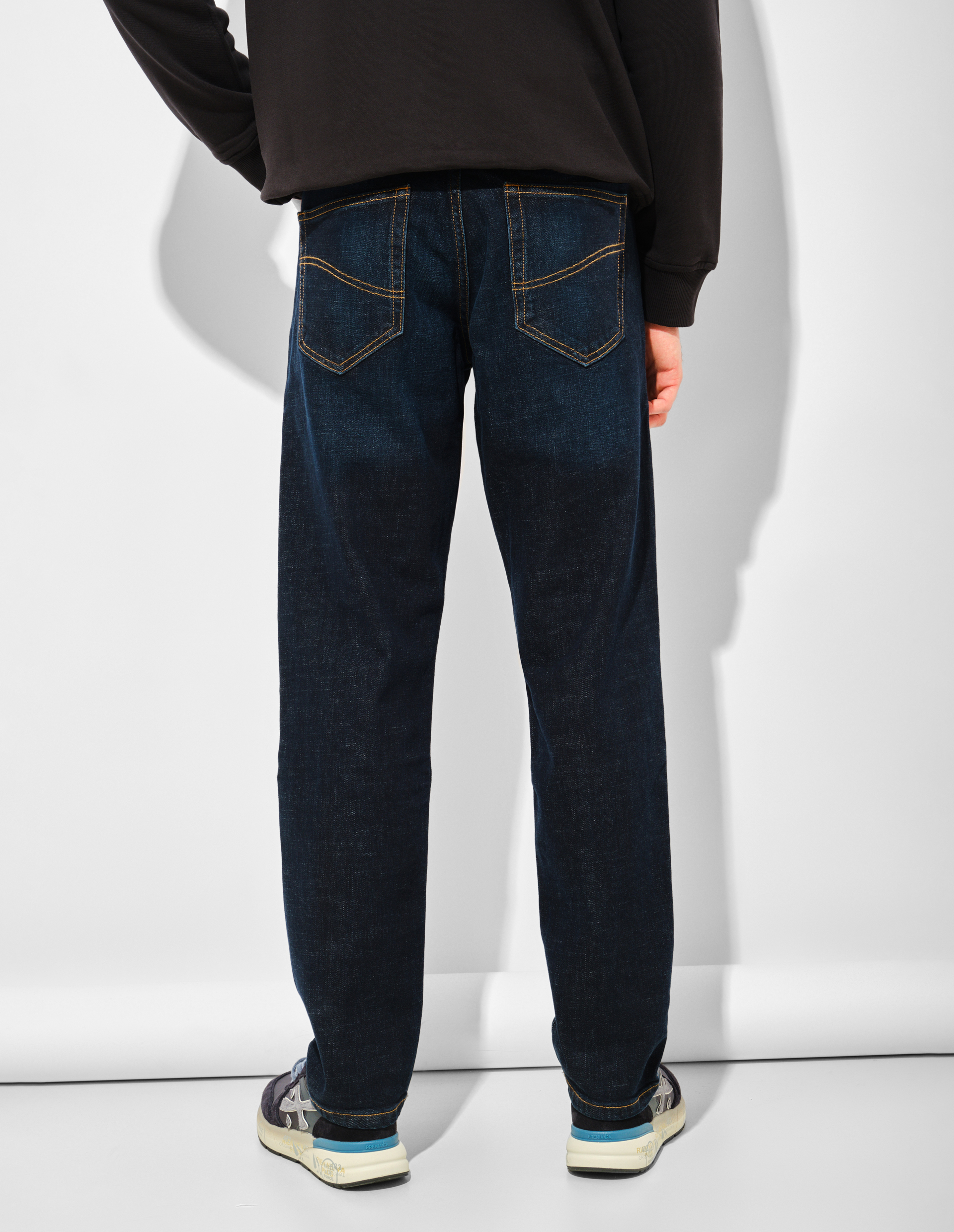Эти джинсы из эластичного денима с пятью карманами созданы для современного мужского гардероба. Модель, плавно сужающаяся к низу, обеспечивает элегантную посадку. Конструкция с застежкой-молнией и пуговицей дополнена шлёвками и контрастной коричневой строчкой, подчеркивающей внимание к деталям. Универсальный дизайн позволяет легко комбинировать модель с различными стилями — от повседневного до более собранного образа. Фирменная вышивка таксы над задним карманом служит узнаваемым акцентом, отражающим наследие Harmont & Blaine и приверженность бренда индивидуальному стилю.