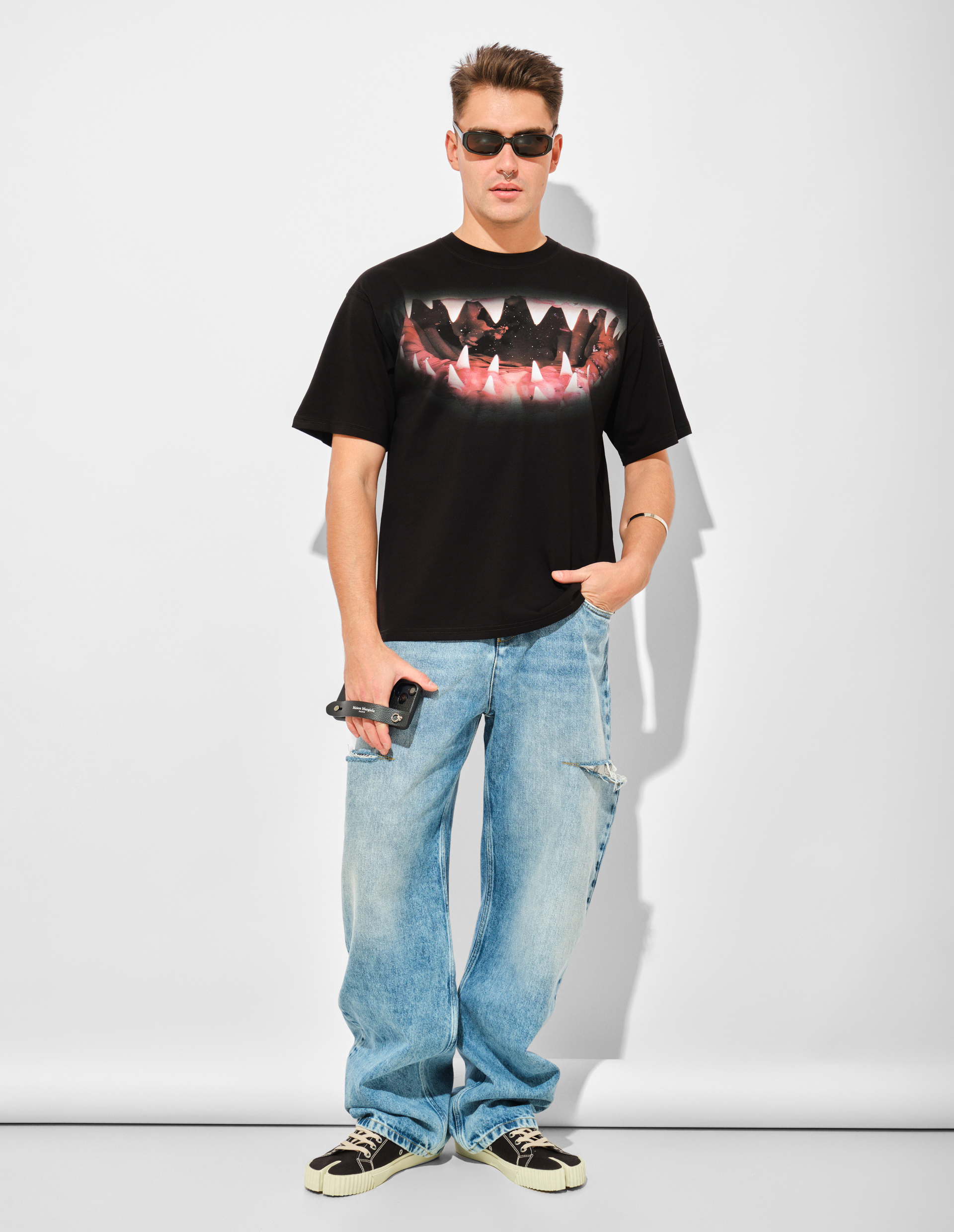 Футболка с акульим оскалом демонстрирует радикальный подход к повседневному гардеробу. Модель из органического хлопка со свободным силуэтом становится полотном для графичного изображения пасти хищника — символа безудержной энергии и природной интуиции. Логотип Oval D подчеркивает внимание к деталям, а производство из экологичного хлопка, выращенного с сохранением биоразнообразия, отражает философию бренда: настоящая сила не противоречит ответственности.