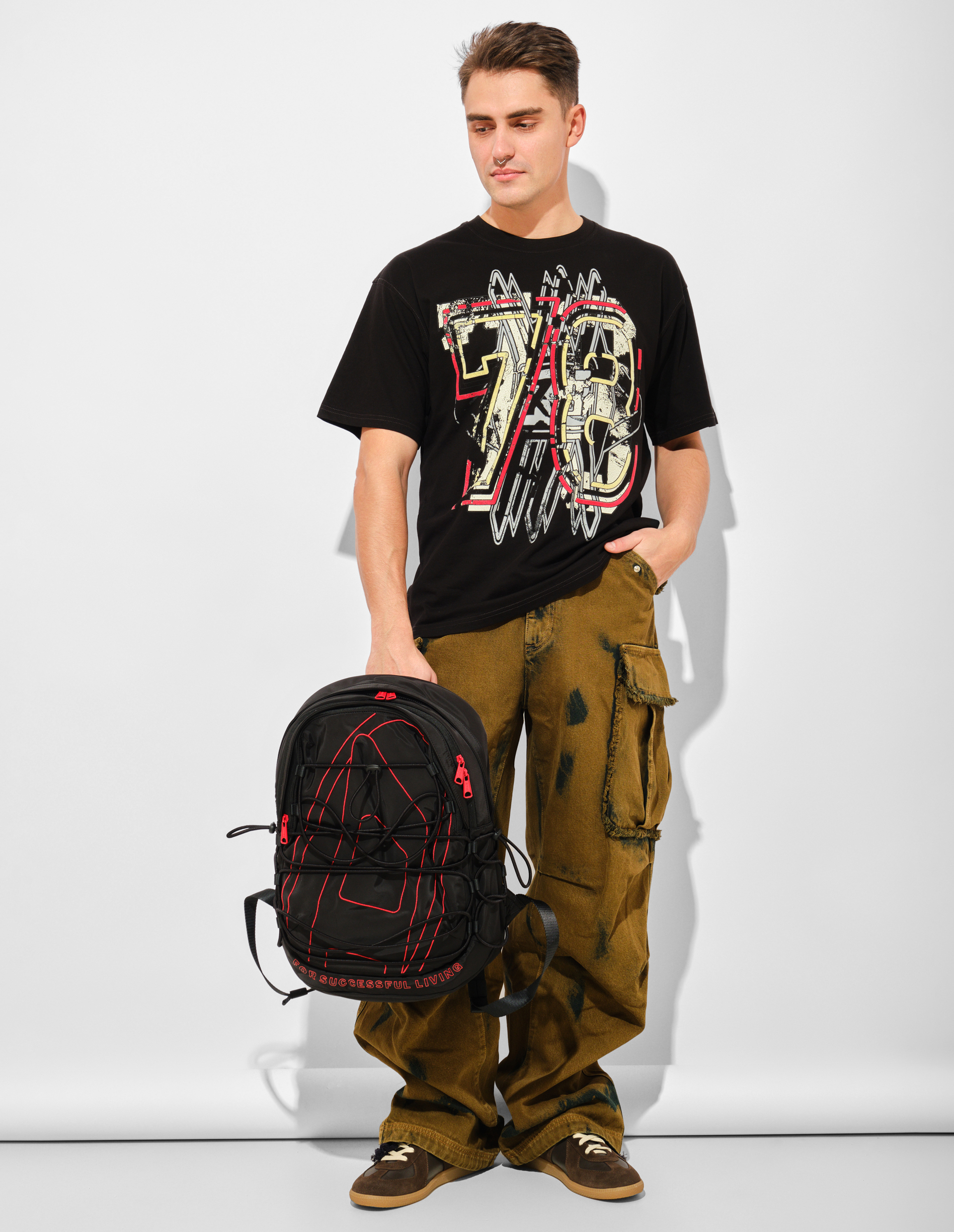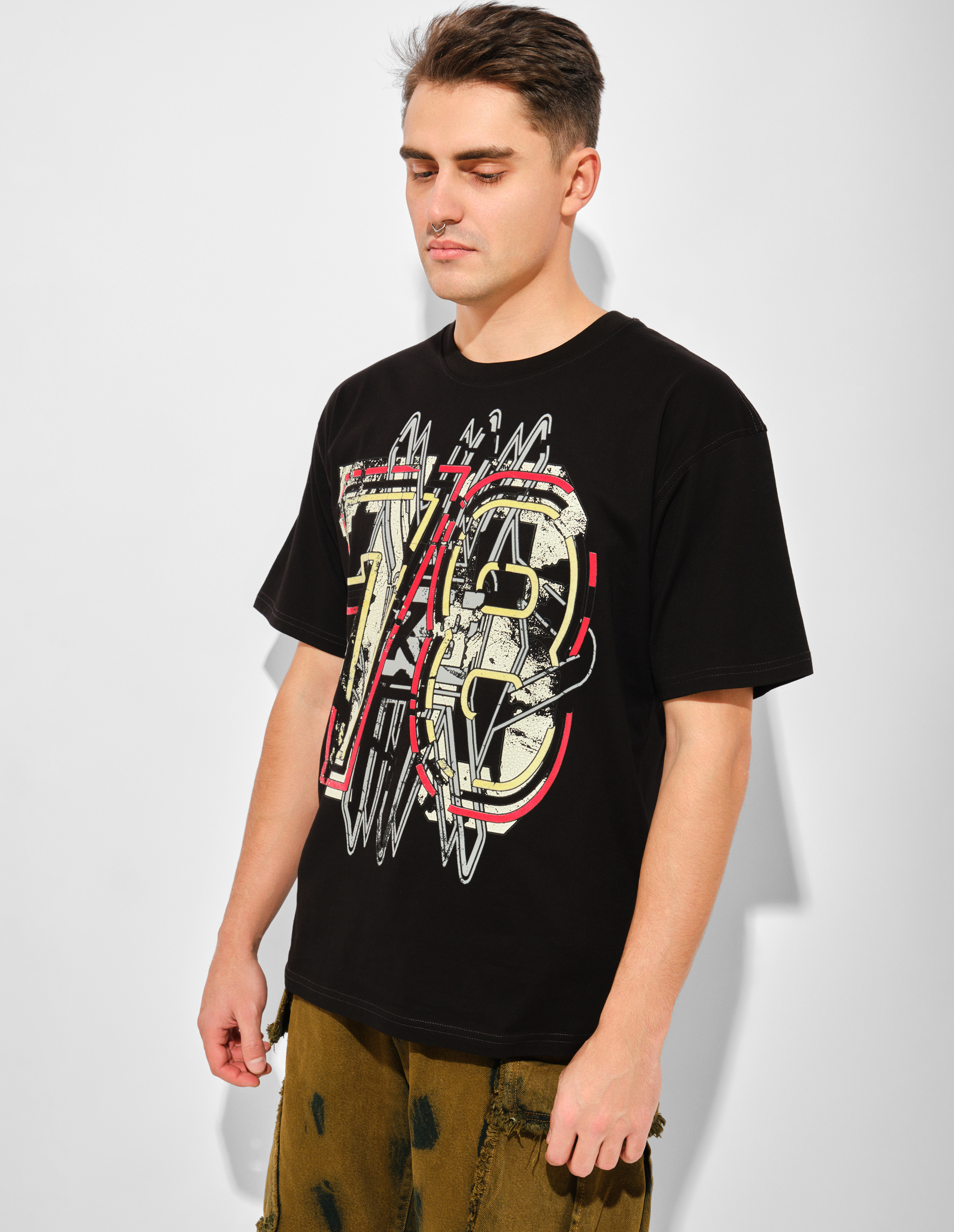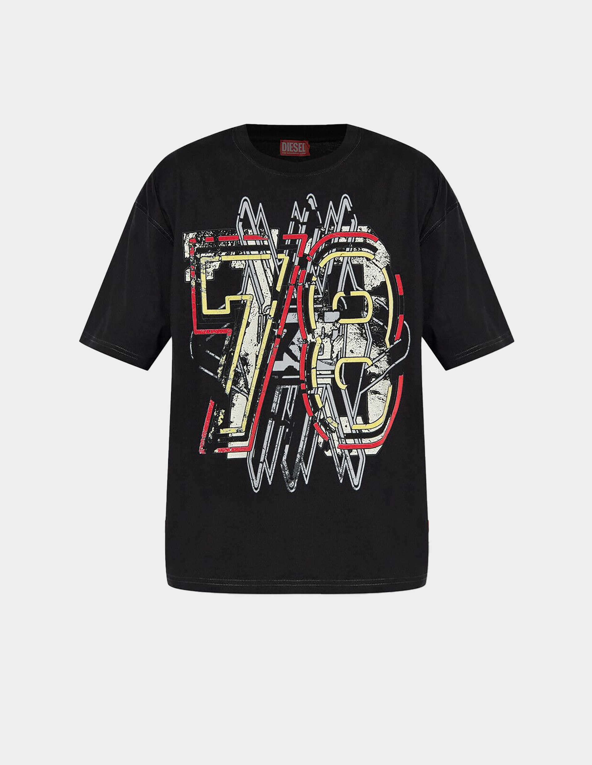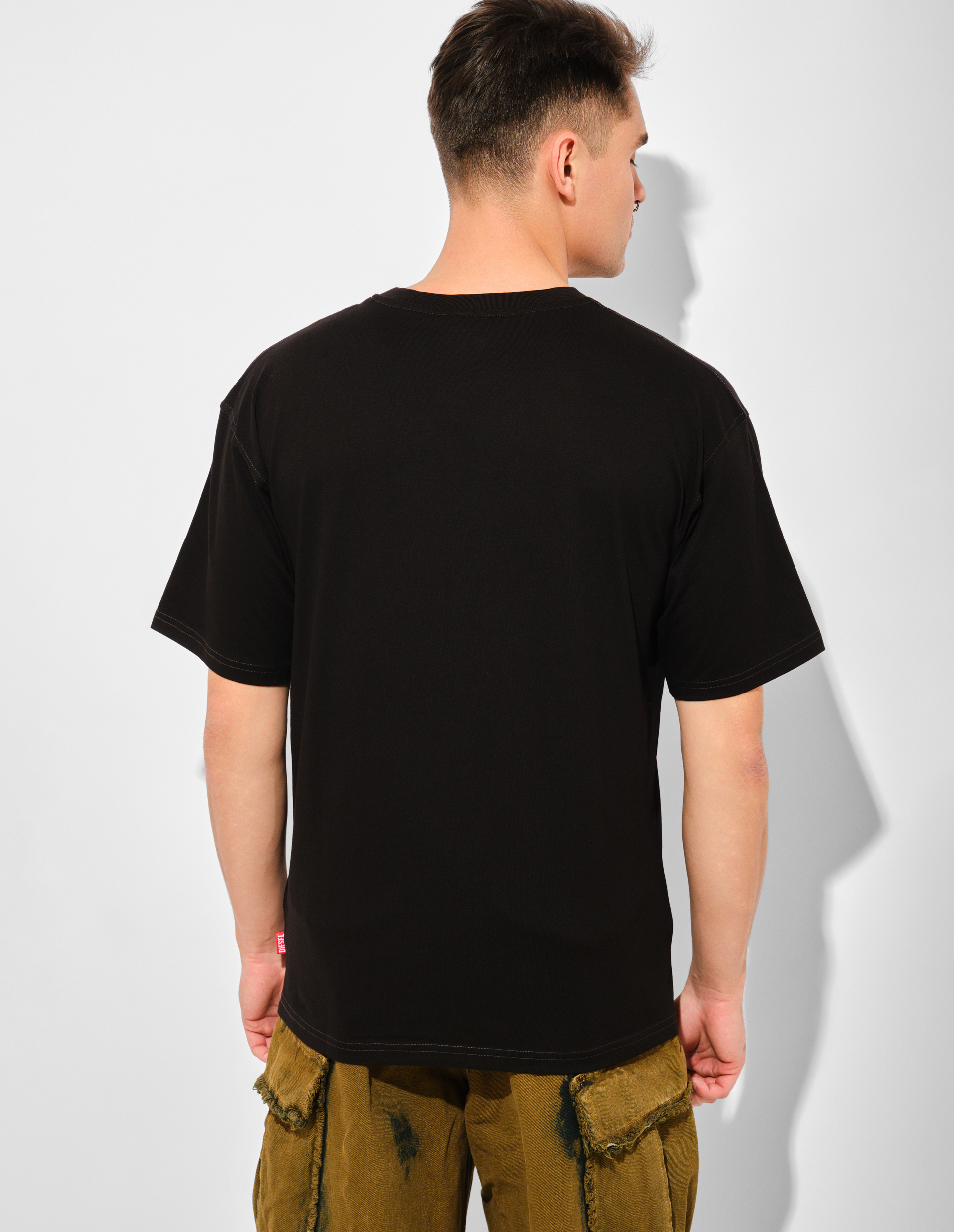 Футболка с глитч-эффектом — цифровая археология от Diesel. Классический логотип 78-го года подвергся цифровой деконструкции, его контуры растворяются в помехах, словно пиксели на старой видеокассете. Свободный крой из органического хлопкового джерси становится чистым экраном для этого визуального эксперимента. Ткань из 100% органического хлопка, выращенного с сохранением биоразнообразия, подчеркивает философию бренда: технологичное будущее невозможно без уважения к природным ресурсам. Носите как напоминание: даже самые культовые символы должны эволюционировать, чтобы оставаться актуальными.