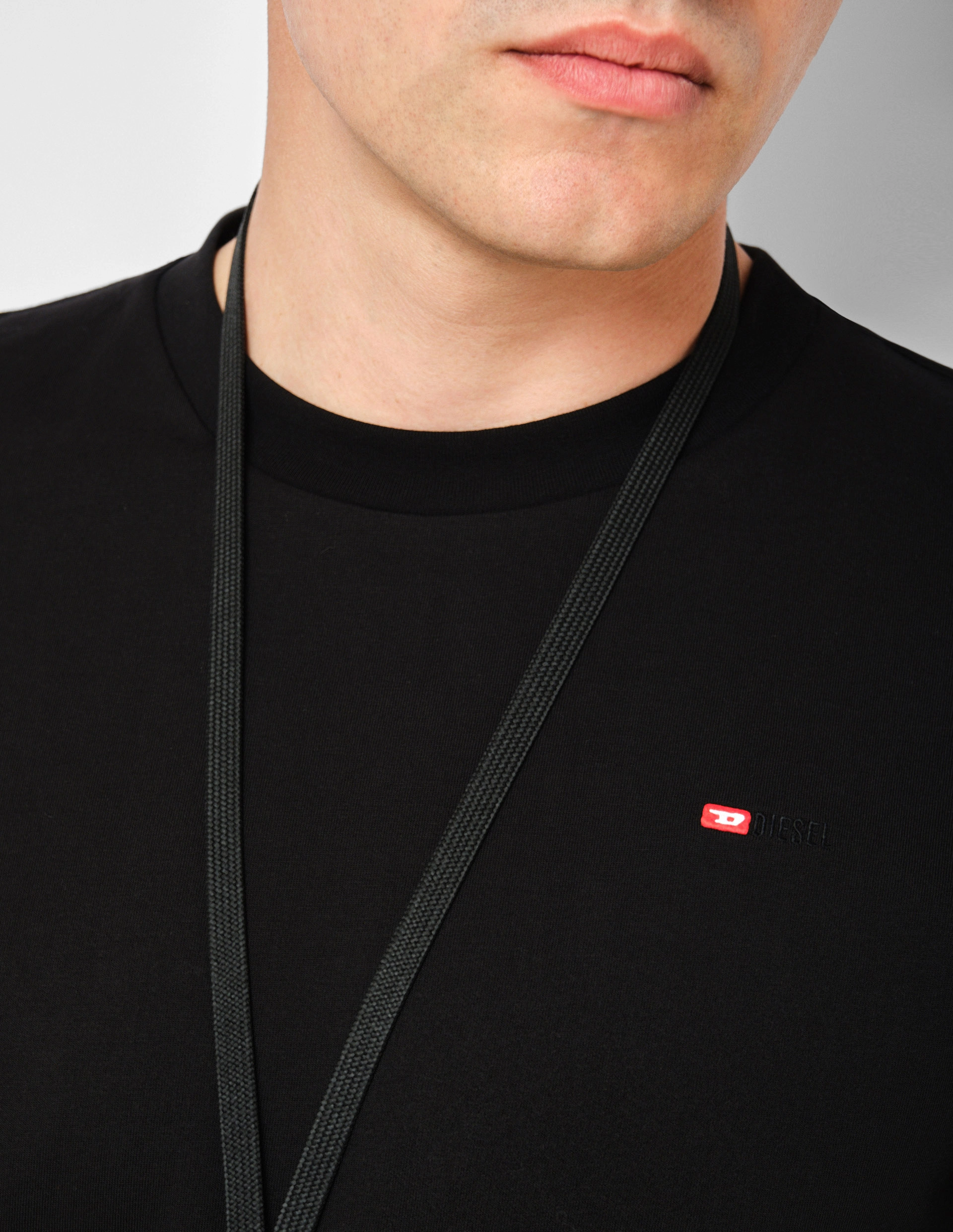 Базовую лаконичную футболку динамичный и прогрессивный бренд Diesel не мог не украсить небольшим, но знаковым контрастным красным логотипом из узнаваемой во всем мире буквы D. Для изготовления модели с короткими рукавами использовали дышащий трикотаж универсального черного оттенка. Материал создали из тонких волокон органического хлопка, выращенного без использования вредных химических веществ. Такой подход не только помогает снизить вредное воздействие на окружающую среду, но и сделать вещь особенно мягкой.