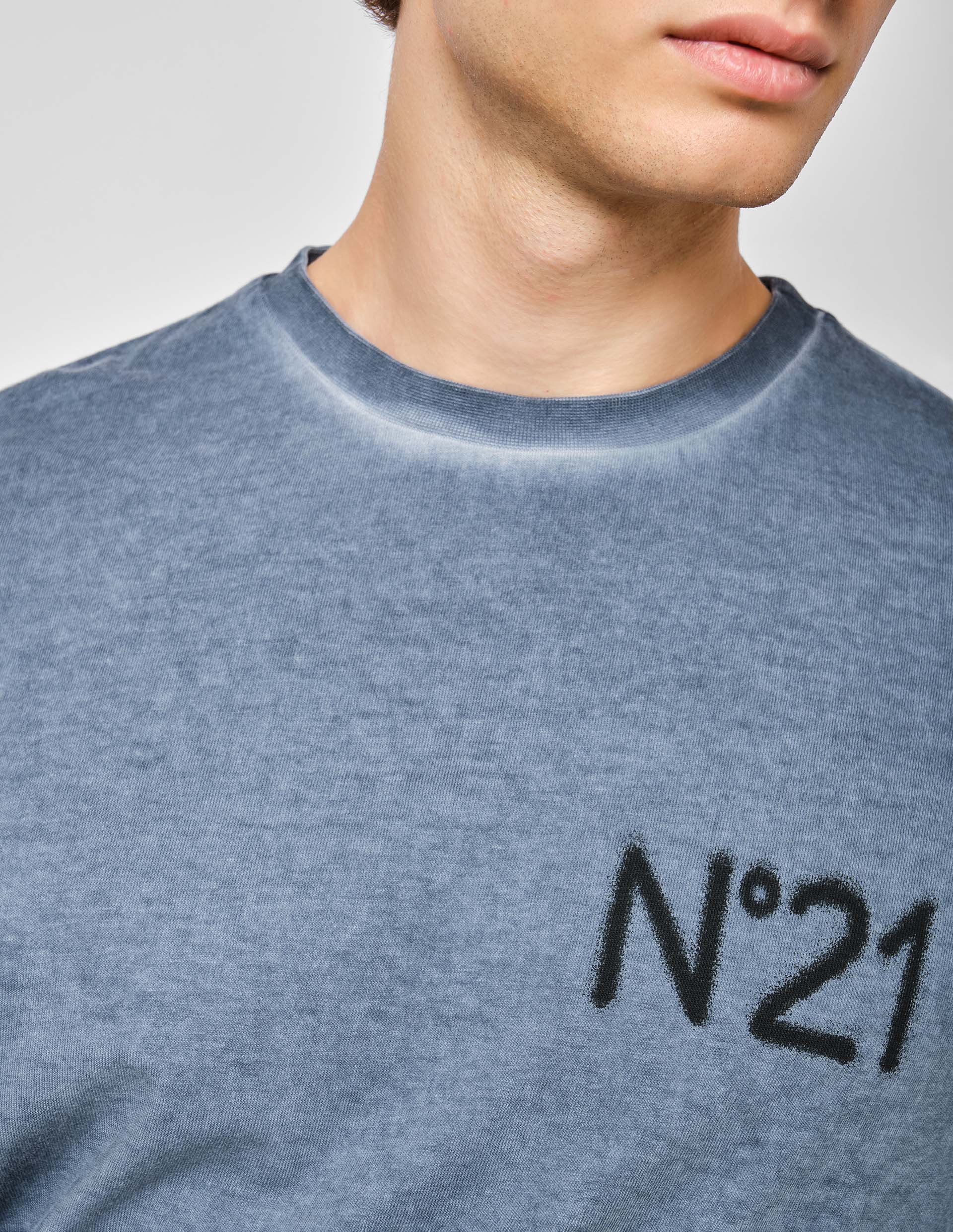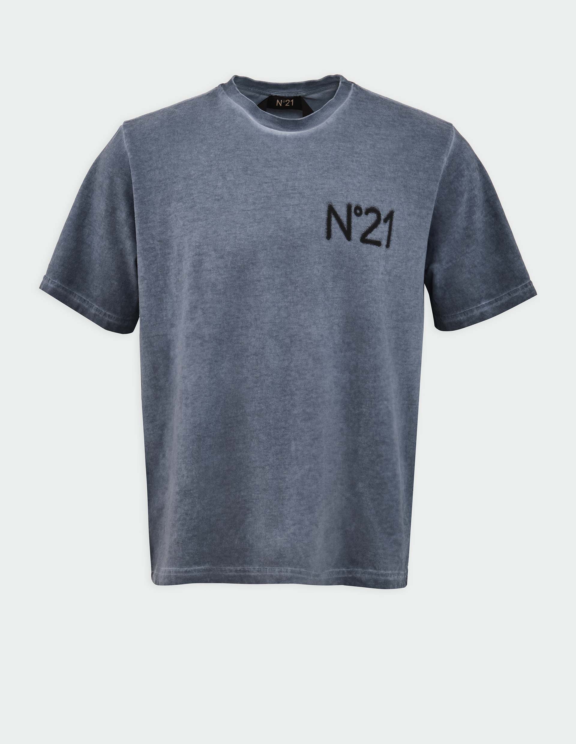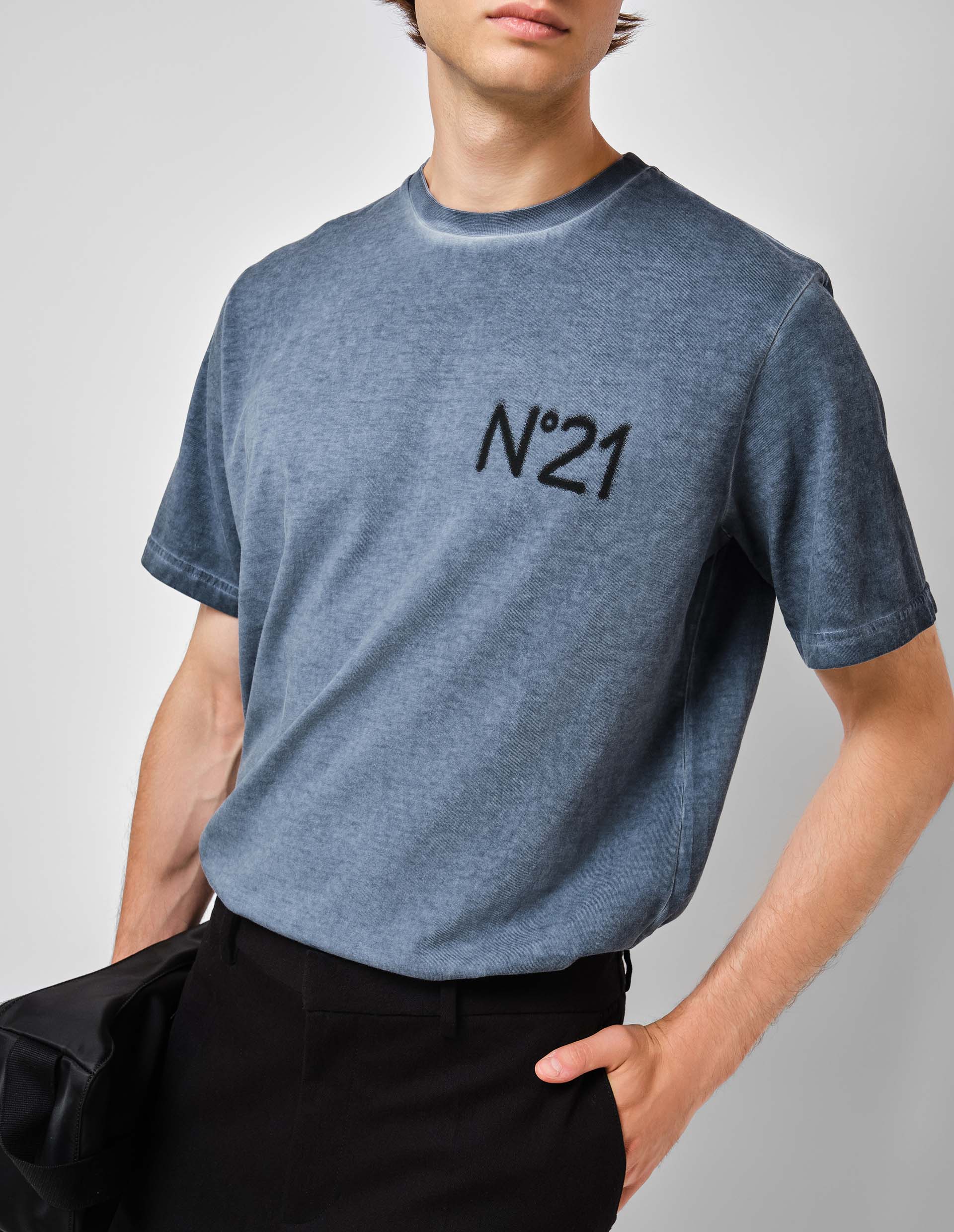 Футболка, ставшая одним из самых желанных fashion items благодаря трендовому свободному крою и узнаваемому логотипу бренда N°21. Дизайнеры поставили во главу угла не только стиль, но и комфорт, обеспеченный мягким хлопковым трикотажем, благодаря которому улучшается терморегуляция, сохраняется форма изделия. Для большей выразительности, игры цвета футболку окрасили в готовом виде, придав частично эффект выгоревшей на солнце ткани, а лого сделали слегка размытым, добавив нотки бунта в классический мужской гардероб.