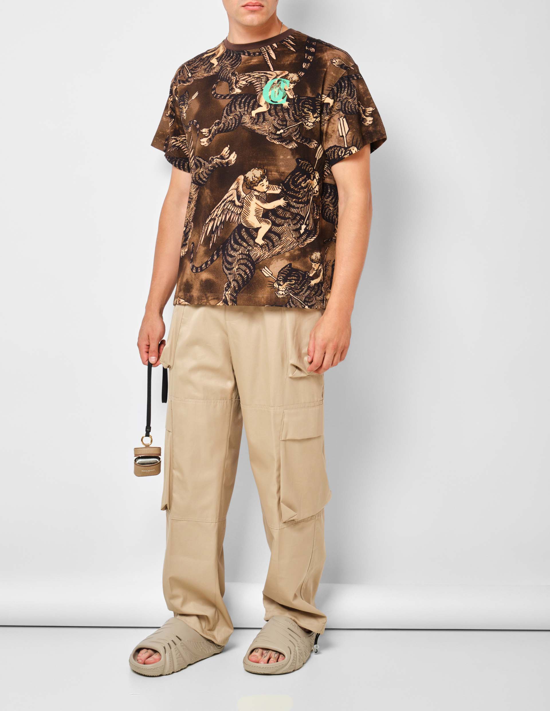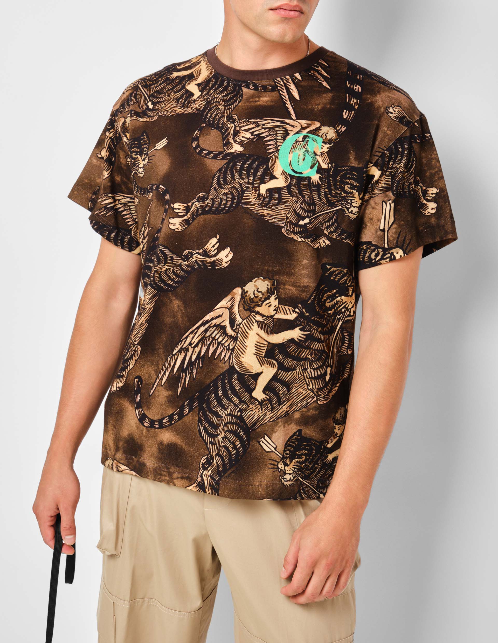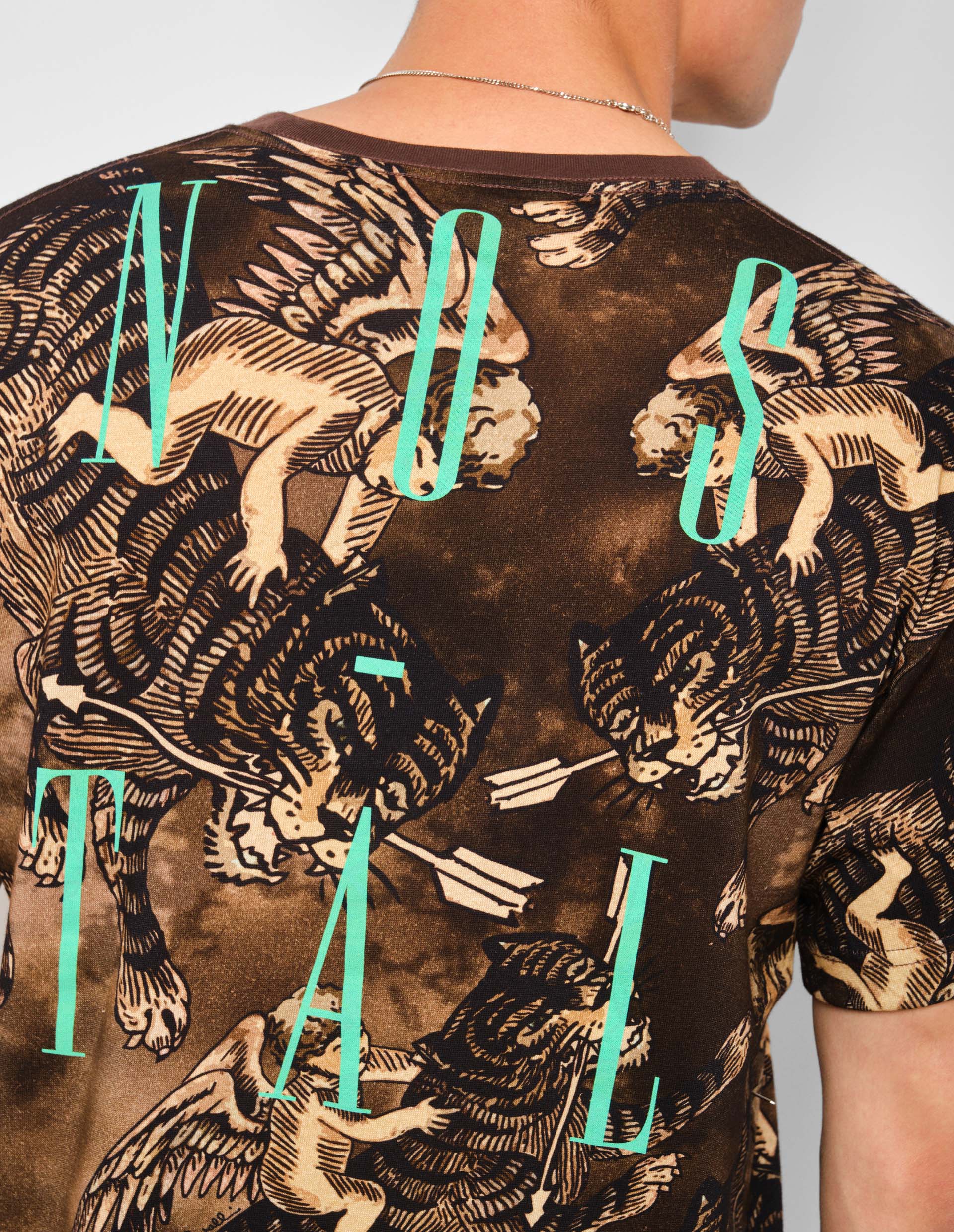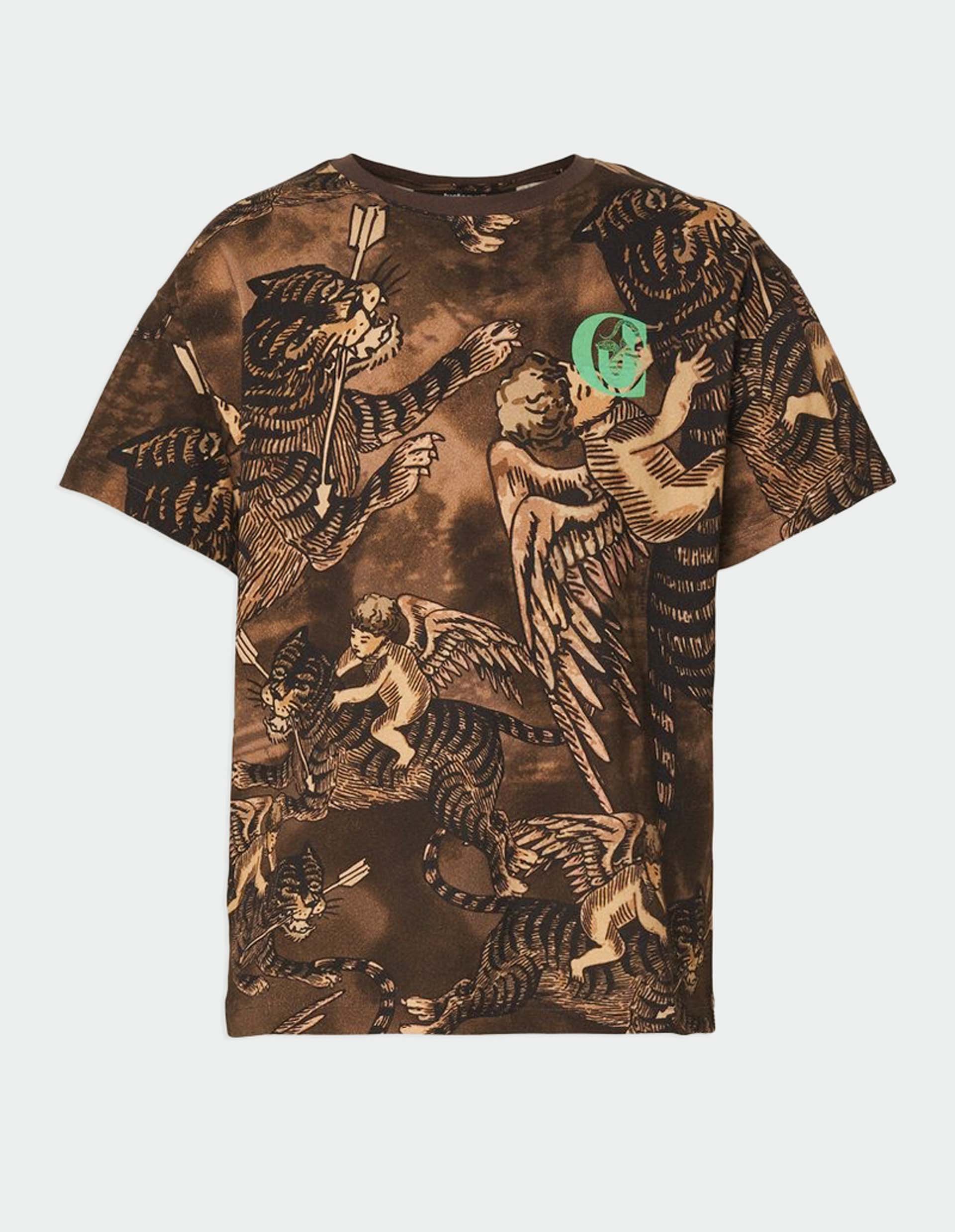 Коричневая футболка с принтом в виде ангелов и тигров