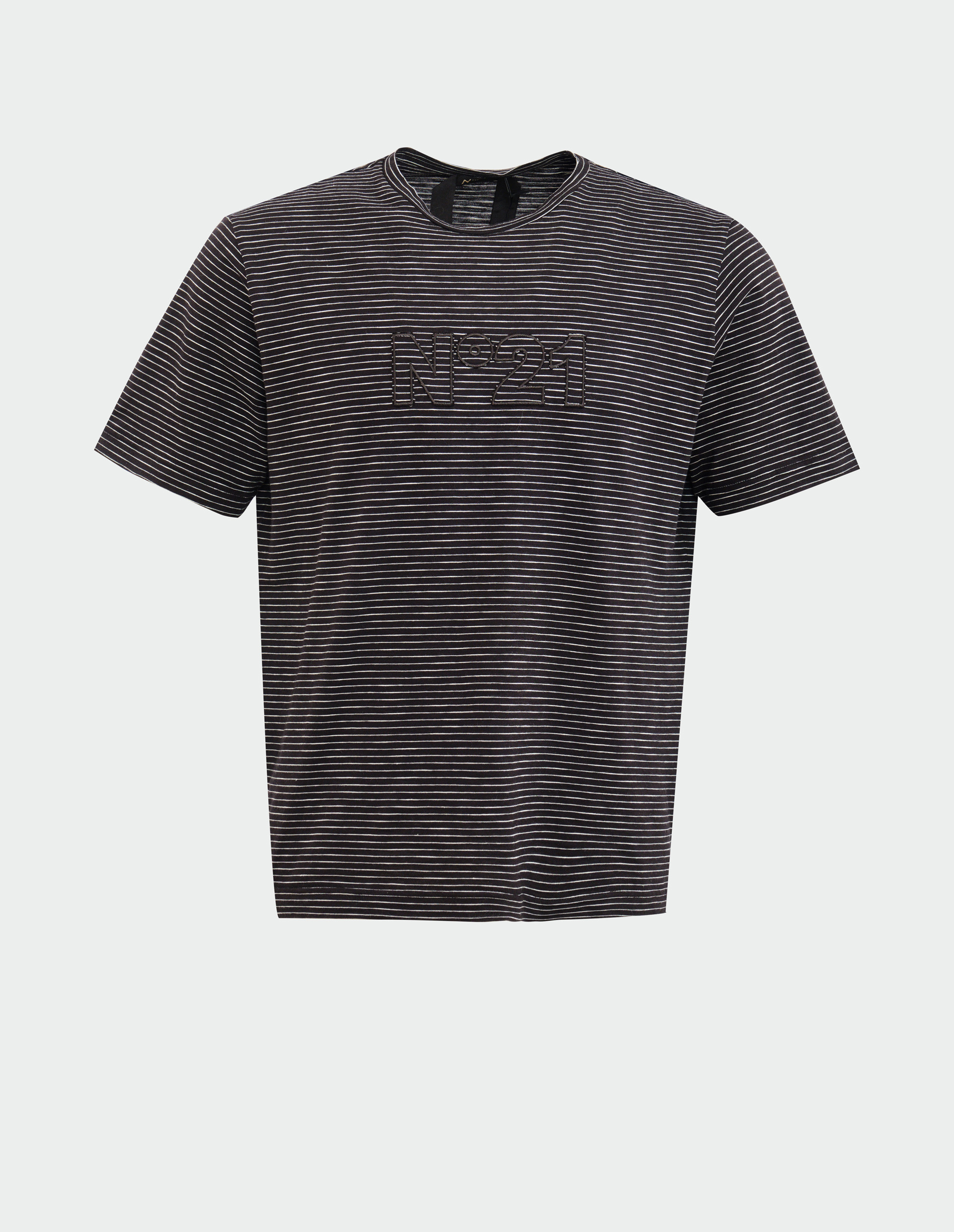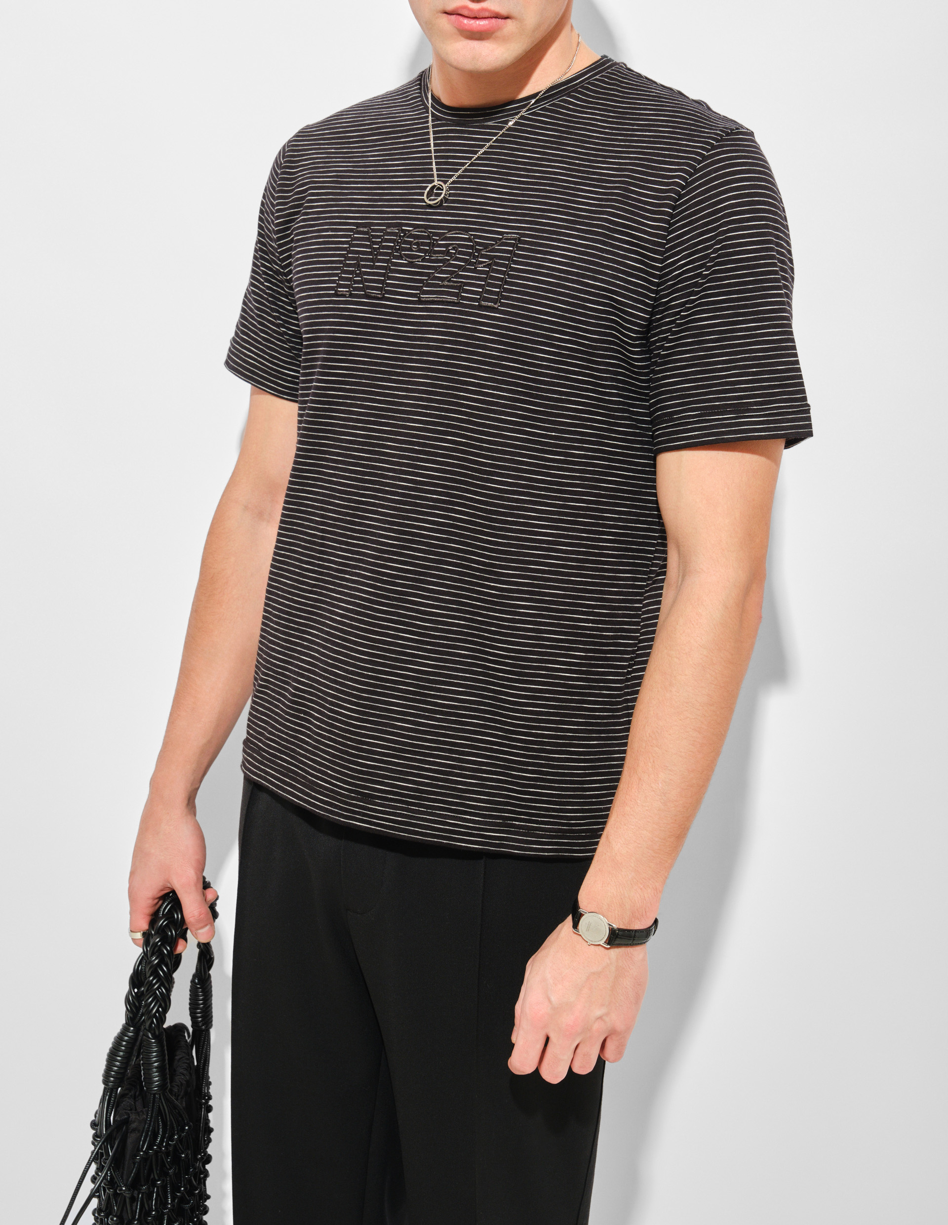 Стильная футболка с эксклюзивным дизайном и премиальным качеством Made in Italy. О нем говорит мягкое джерси из премиального органического хлопка. Модель свободного силуэта обеспечит комфортное ношение и идеальную посадку, а универсальный принт в полоску позволит создавать удачные сочетания с однотонными брюками либо шортами-бермудами. Узнаваемый контурный логотип на груди свидетельствует о принадлежности изделия к модному бренду №21.
