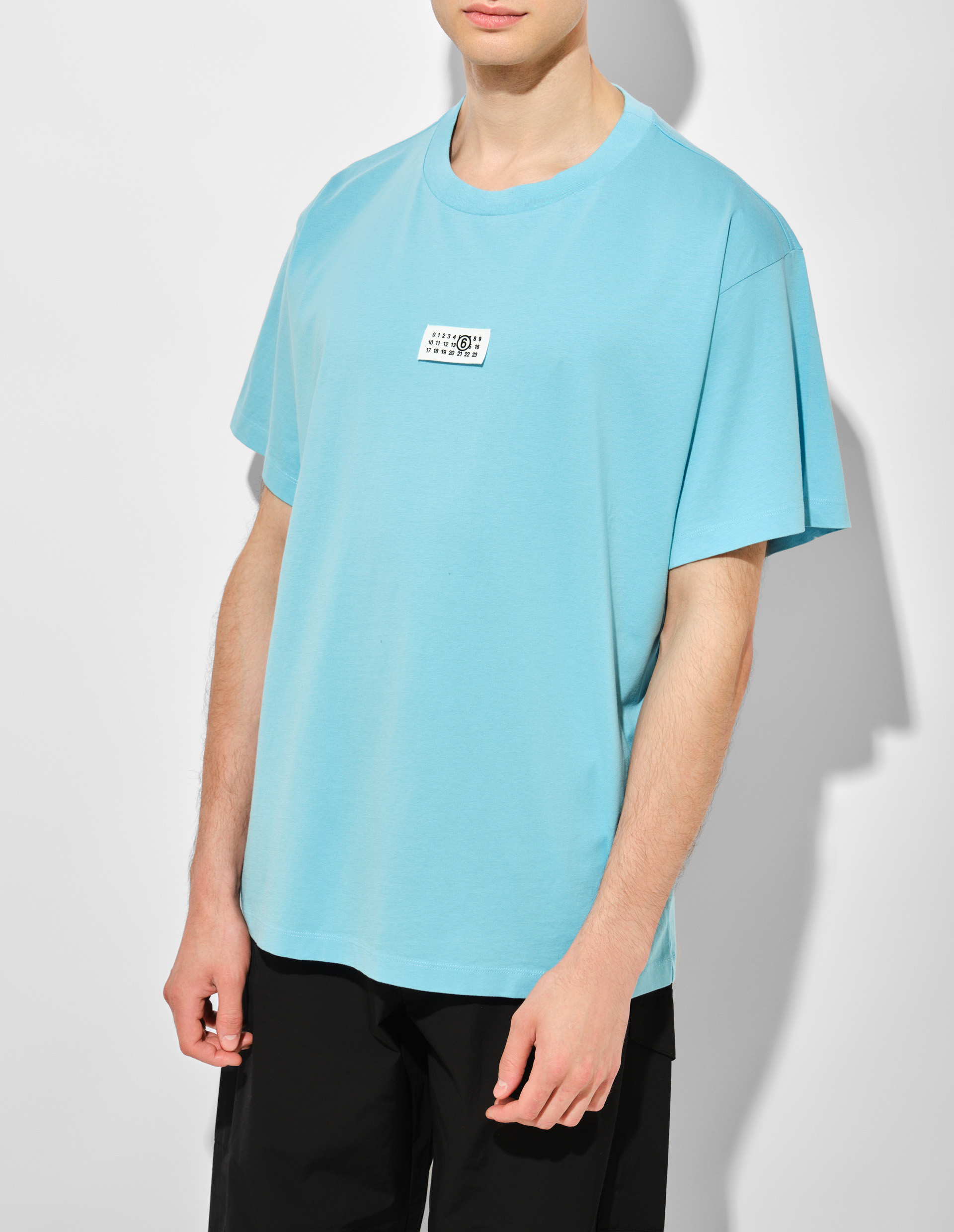 Футболка MM6 в оттенке Blue Wave — идеальная база для современного гардероба, изготовленная из мягкого хлопкового джерси для максимального комфорта. Классический круглый вырез и лаконичный крой делают эту модель универсальной основой для любых образов. Особенность дизайна — патч Numeric Signature на груди - цифровая подпись бренда, подчеркивающая современный подход MM6 к классическим формам. Сдержанная, но узнаваемая деталь — горизонтальная белая строчка на спине — добавляет характерный минималистичный акцент.