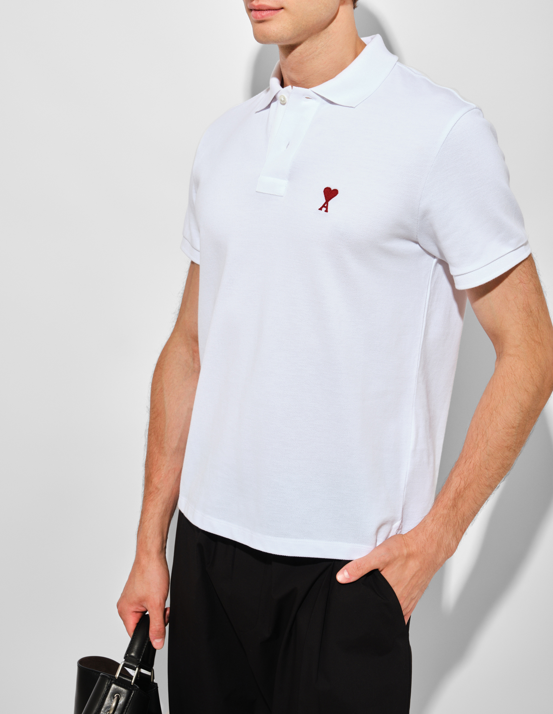 Белая футболка-поло с красным вышитым лого WHITE COTTON AMI DE COEUR POLO SHIRT