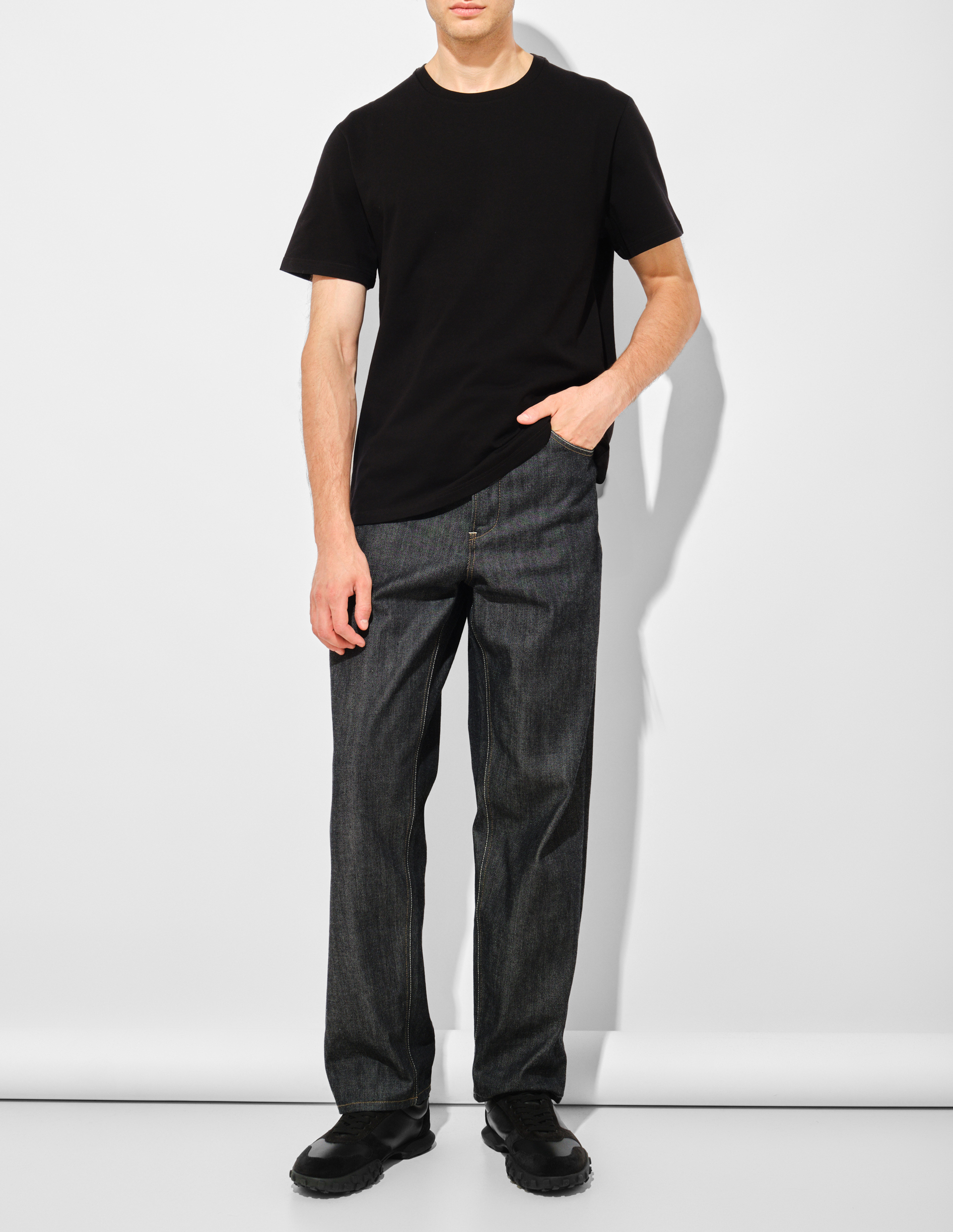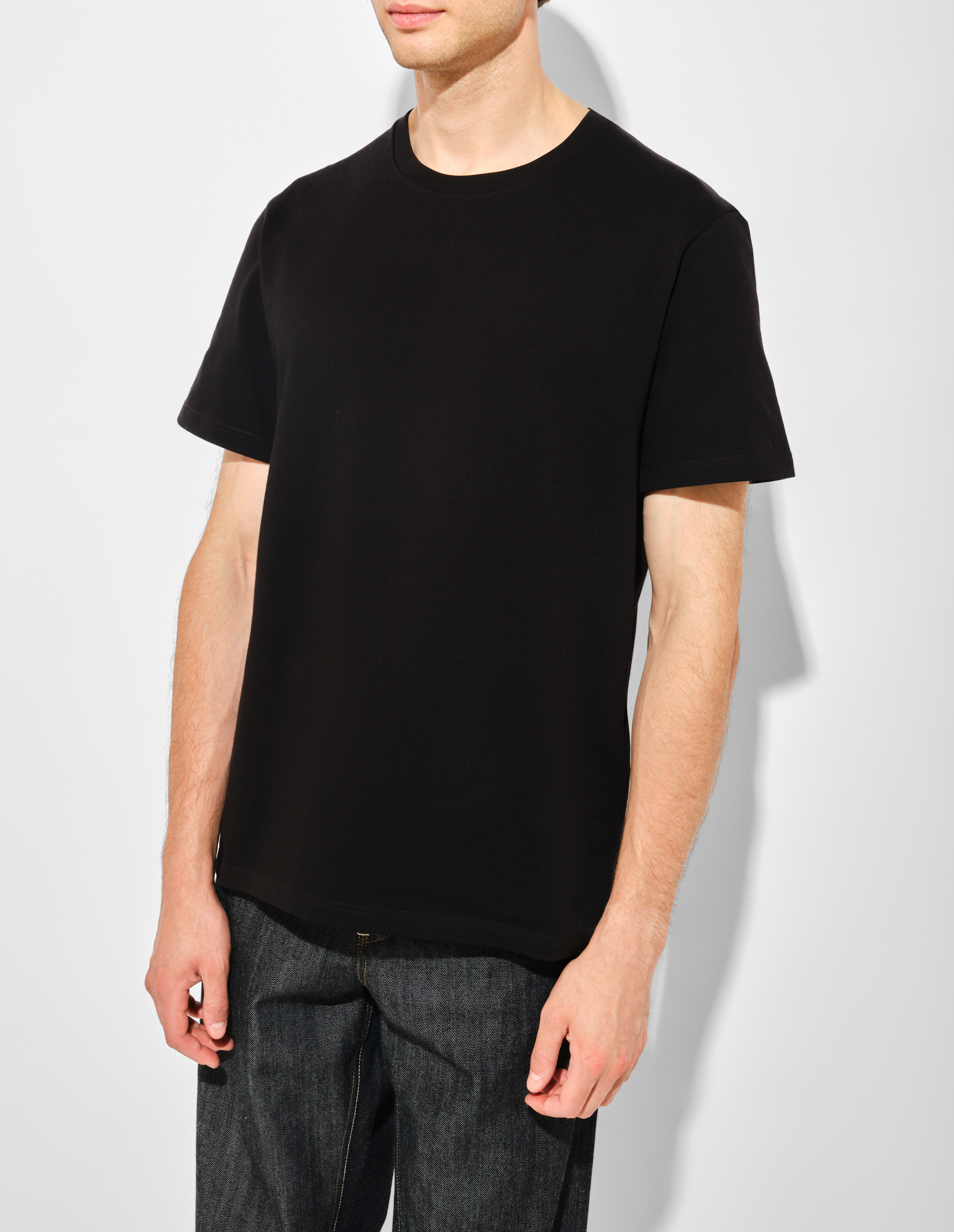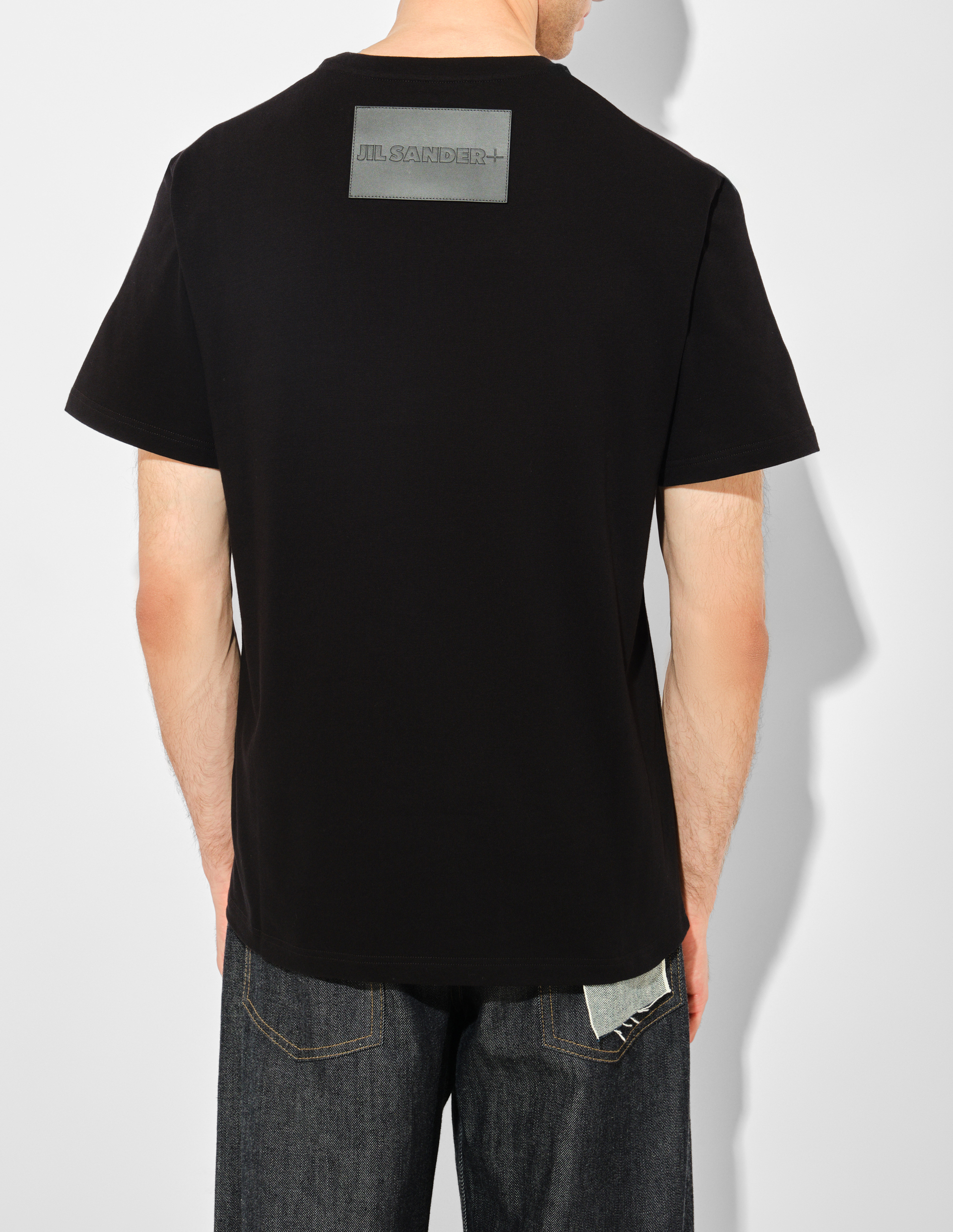 Отражением ДНК Jil Sander, с ее сдержанной элегантностью и безупречным минимализмом, стала эта черная футболка из плотного джерси. Мужская модель с короткими рукавами и классическим кроем демонстрирует универсальность, а итальянский хлопок особого плетения гарантирует безупречную посадку и износостойкость, сохраняя форму после множества стирок. Кожаная нашивка с тиснёным логотипом Jil Sander+ на спине указывает на принадлежность к особой линейке бренда, созданной для динамичного образа жизни, где функциональность встречается со сдержанной роскошью, безупречным качеством материалов и чистотой линий.