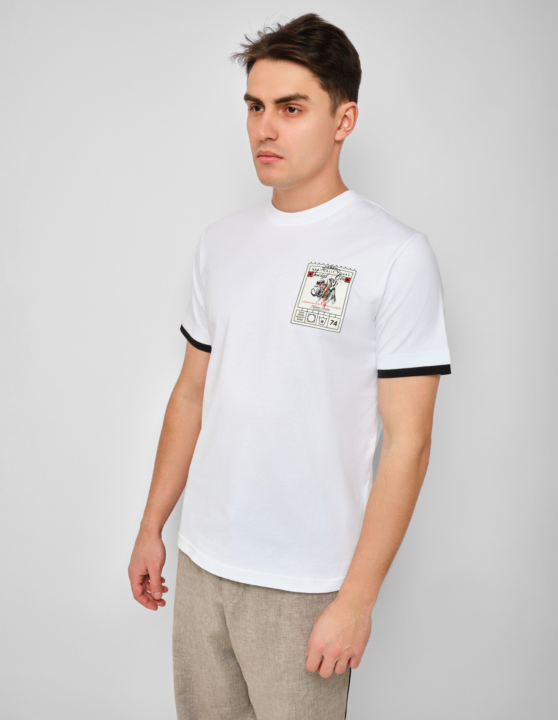 Сдержанная дерзость в чистом виде. Эта футболка от ICEBERG балансирует между безупречной базой и графичным акцентом. Чисто-белый органический хлопок выступает идеальным холстом для принта Social Club Animals — узнаваемый бульдог расположился ровно в зоне сердца, словно талисман, добавляя образу характера без лишней крикливости. Но главная деталь, которая превращает обычную футболку в дизайнерскую вещь, — черная окантовка рукавов. Этот графичный контраст задает ритм, визуально структурирует силуэт и перекликается с фирменной эстетикой бренда, где люкс всегда соседствует с хулиганством. Модель выполнена из сертифицированного органического хлопкового джерси — мягкого, дышащего и невероятно приятного к телу. Крой Regular fit обеспечивает идеальную посадку и свободу движений, не добавляя лишнего объема. Сегодня мода на осознанное потребление и вещи с историей выходит на первый план: эта футболка создана с уважением к природе и к вашему чувству стиля. Носите её с классическим пиджаком из шерсти и брюками, чтобы черная окантовка поддержала строгость костюма, или с джинсами и кроссовками для идеального уикенд-лука. Польза этой вещи — в её универсальности и долговечности: она легко впишется в любой гардероб и будет актуальна сезон за сезоном. Важный нюанс: органический хлопок GOTS сертифицирован и подходит даже для самой чувствительной кожи, не вызывая раздражения. Черная окантовка выполнена из того же качественного материала и не деформируется после стирки. Принт нанесен стойкими красителями, которые сохранят яркость и четкость линий надолго.