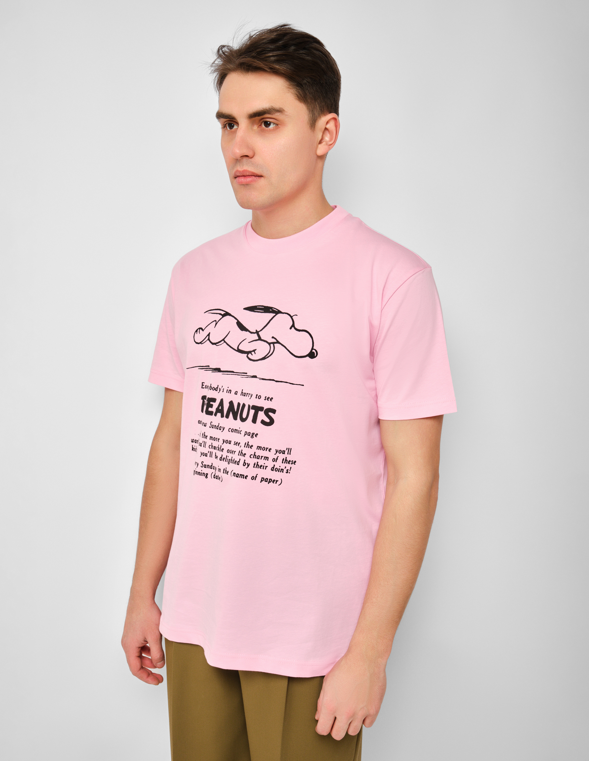 Розовая футболка из органического хлопка с принтом Snoopy на груди и лого на спине