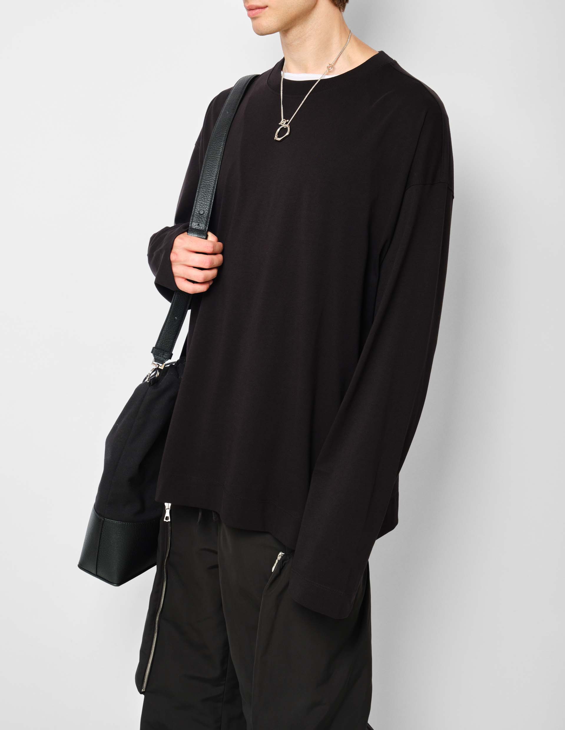 Изготовленный из 100% хлопка высочайшего качества, лонг обеспечит непревзойденный комфорт и свежесть в течение всего дня. Черный цвет добавляет изысканную универсальность, делая его идеальным как для повседневных, так и для более официальных образов. Модель имеет длинные рукава с заниженной линией плеча и круглый вырез, что соответствует его классическому мотиву. Отсутствие принтов — идеальный выбор для мужчин, которые ценят минимализм и вечную элегантность.