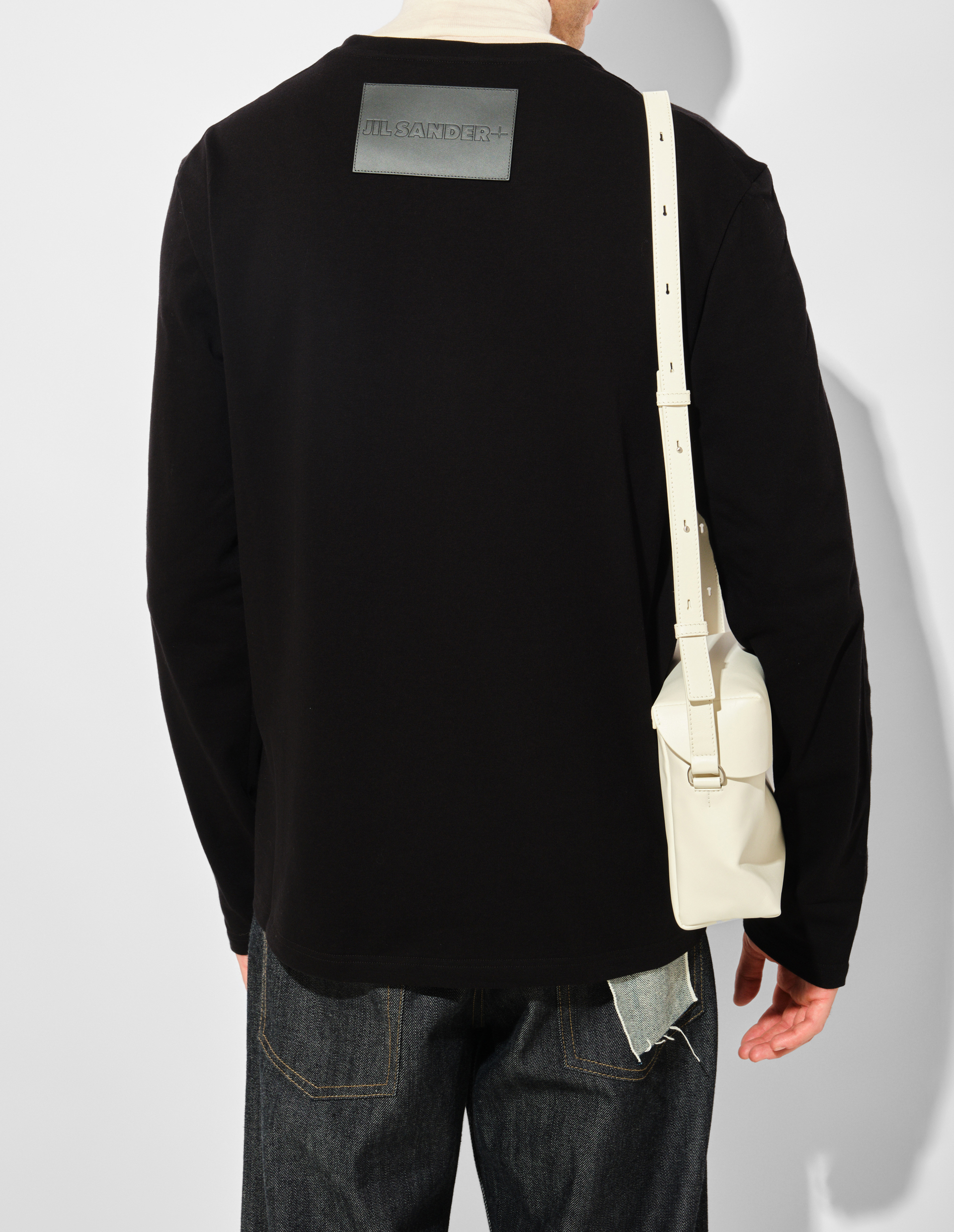 Черный лонгслив с кожаным брендированным патчем Jil Sander+